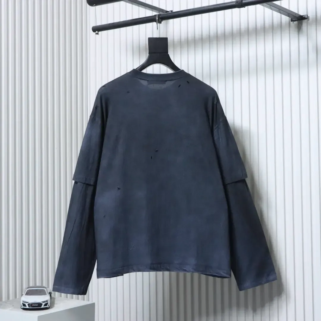 Acne Studios Distressed Sandblasted Washed Faux Two-Piece Long-Sleeve T-Shirt
