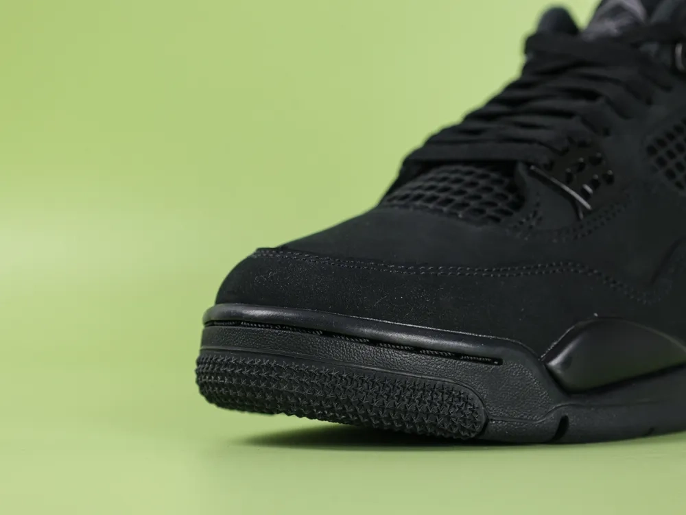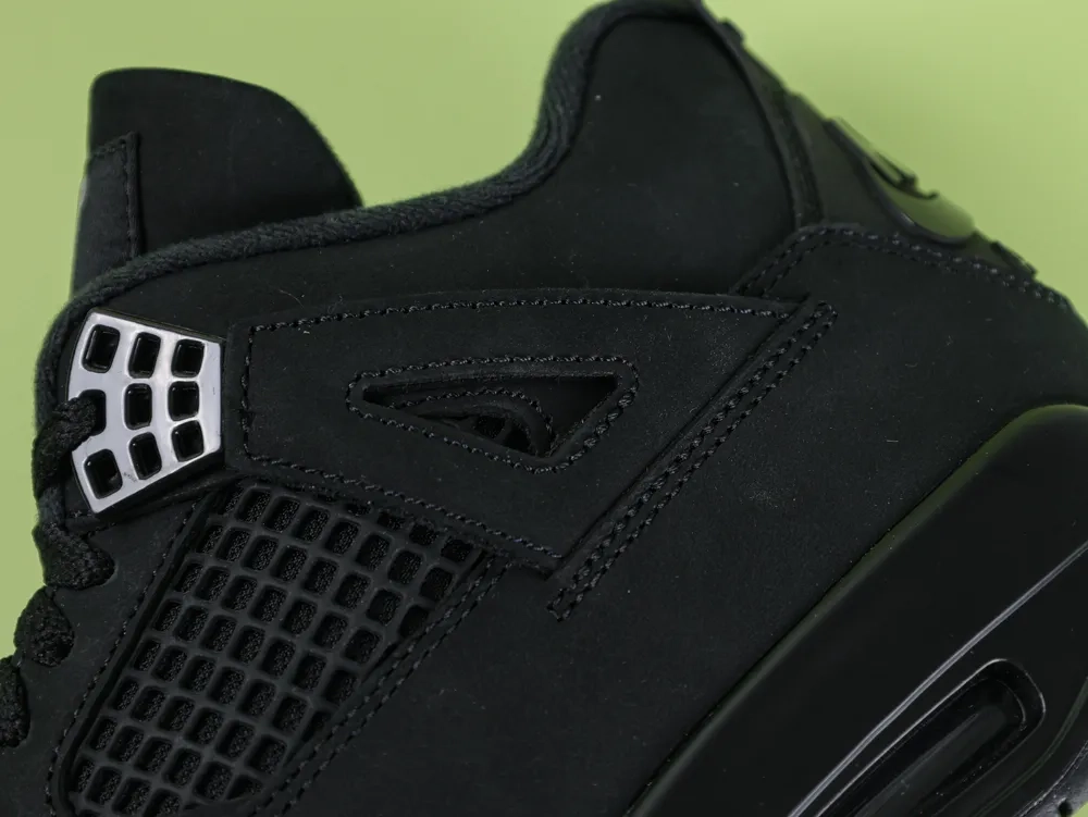 The Air Jordan 4 Retro “Black Cat” 2025 version returns with an all-black color scheme that interprets a cool attitude, faithfully recreates the OG charm, and continues the name inspiration of “Black Cat.” The entire shoe is finished in deep black, with a contrast between matte and glossy materials, creating a sophisticated, mysterious, and calm visual impression.
