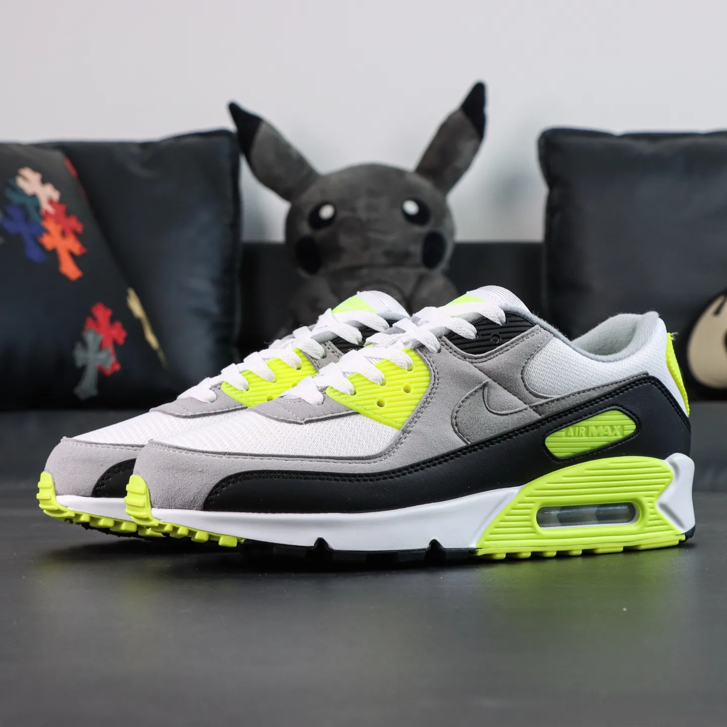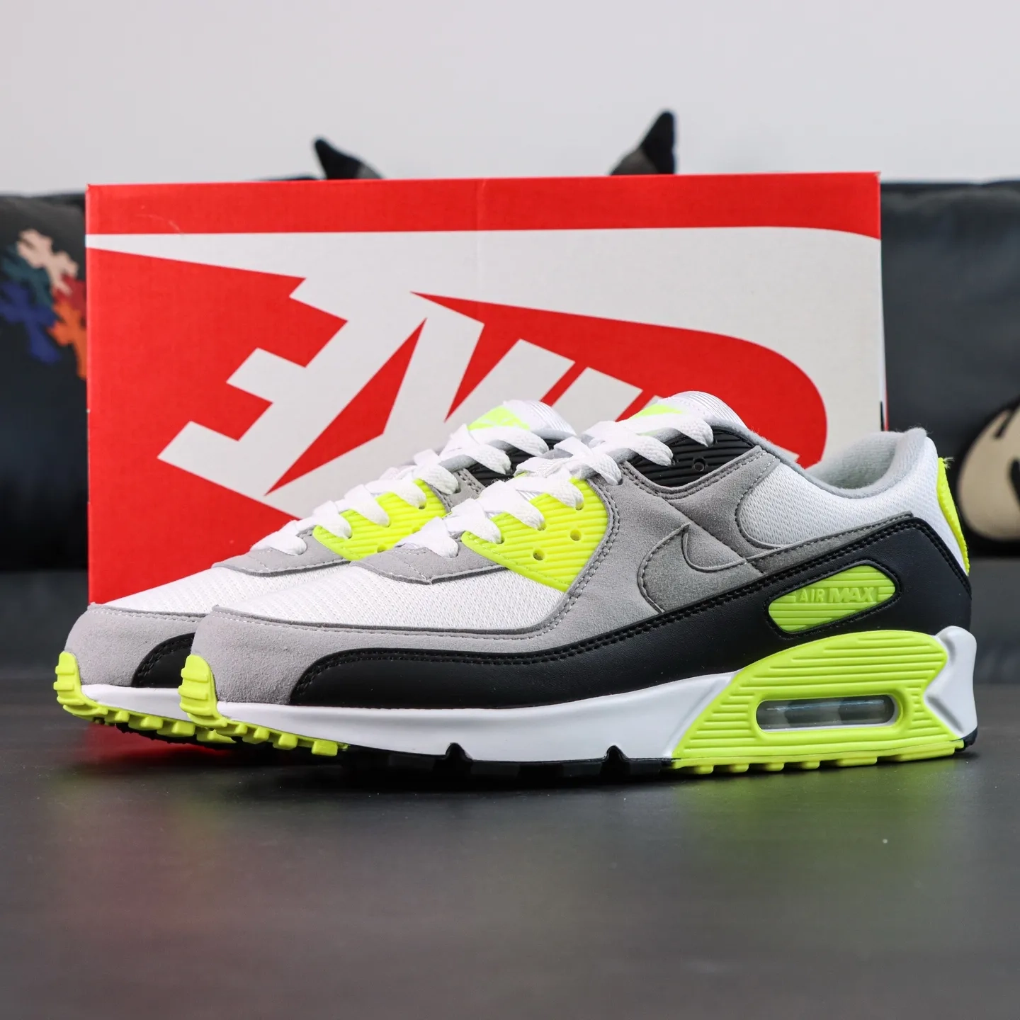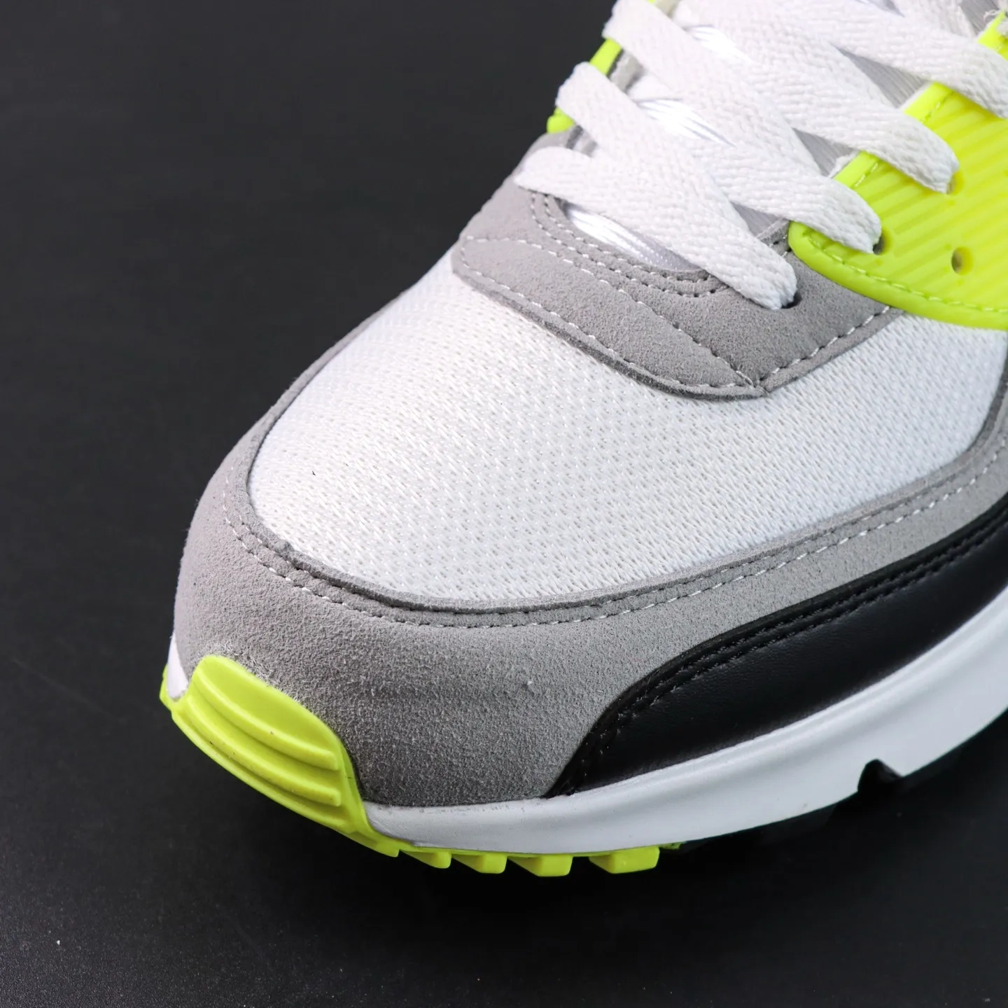 The Air Max 90 “Volt & Particle Grey” combines classic 90s style with modern elements, offering a fashionable yet comfortable feel. Its unique color combination – a vibrant “Volt” yellow interwoven with a subtle “Particle Grey” – perfectly captures the streetwear look.