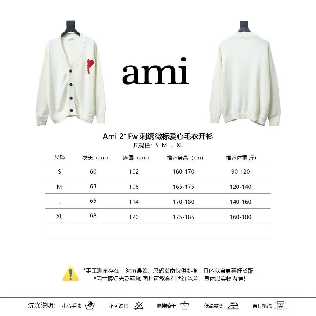 Ami 21Fw Cardigan With Heart Embroidery And Micro Logo Ami 21Fw Cardigan With Heart Embroidery And Micro Logo