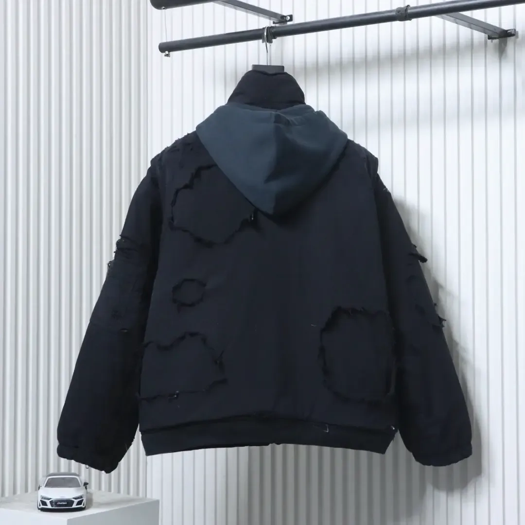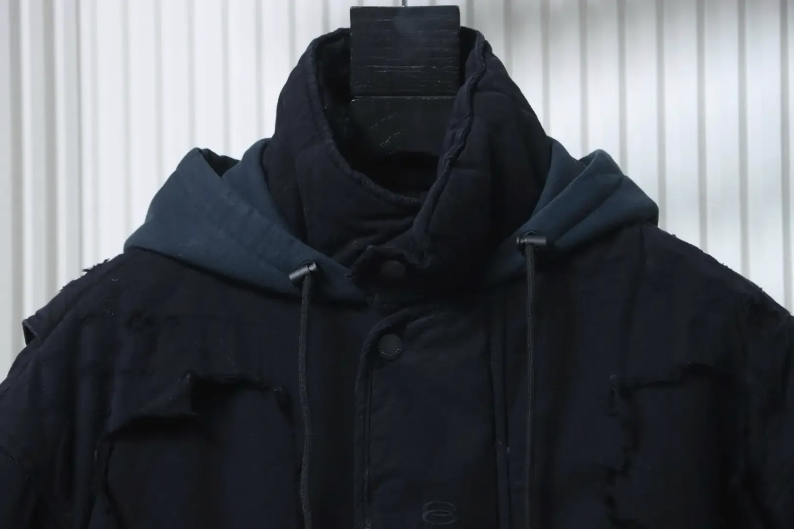 Balenciaga 22Fw Paris Heavy Industry Jacket In Padded Cotton Fabric With Distressed Design Balenciaga 22Fw Paris Heavy Industry Jacket In Padded Cotton Fabric With Distressed Design