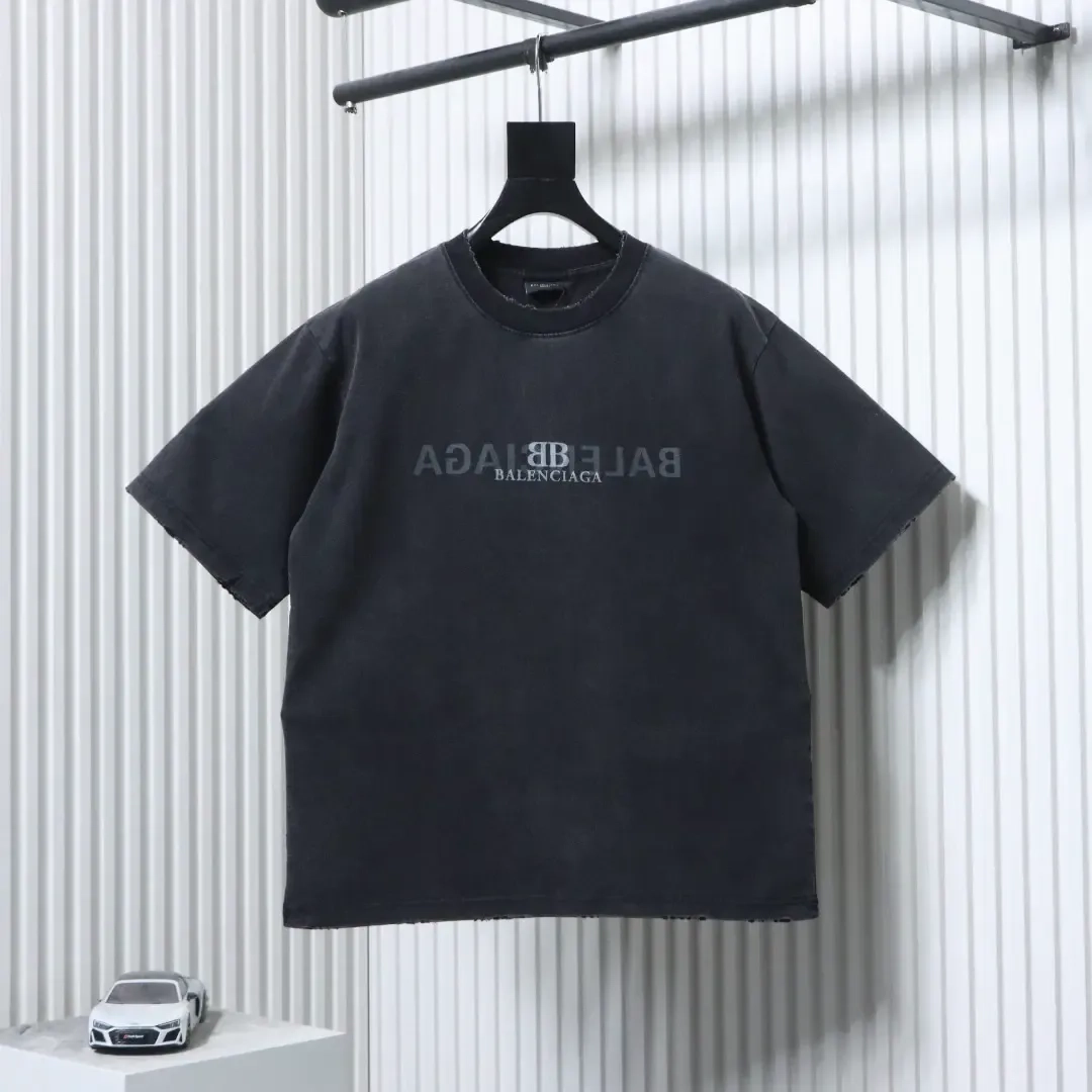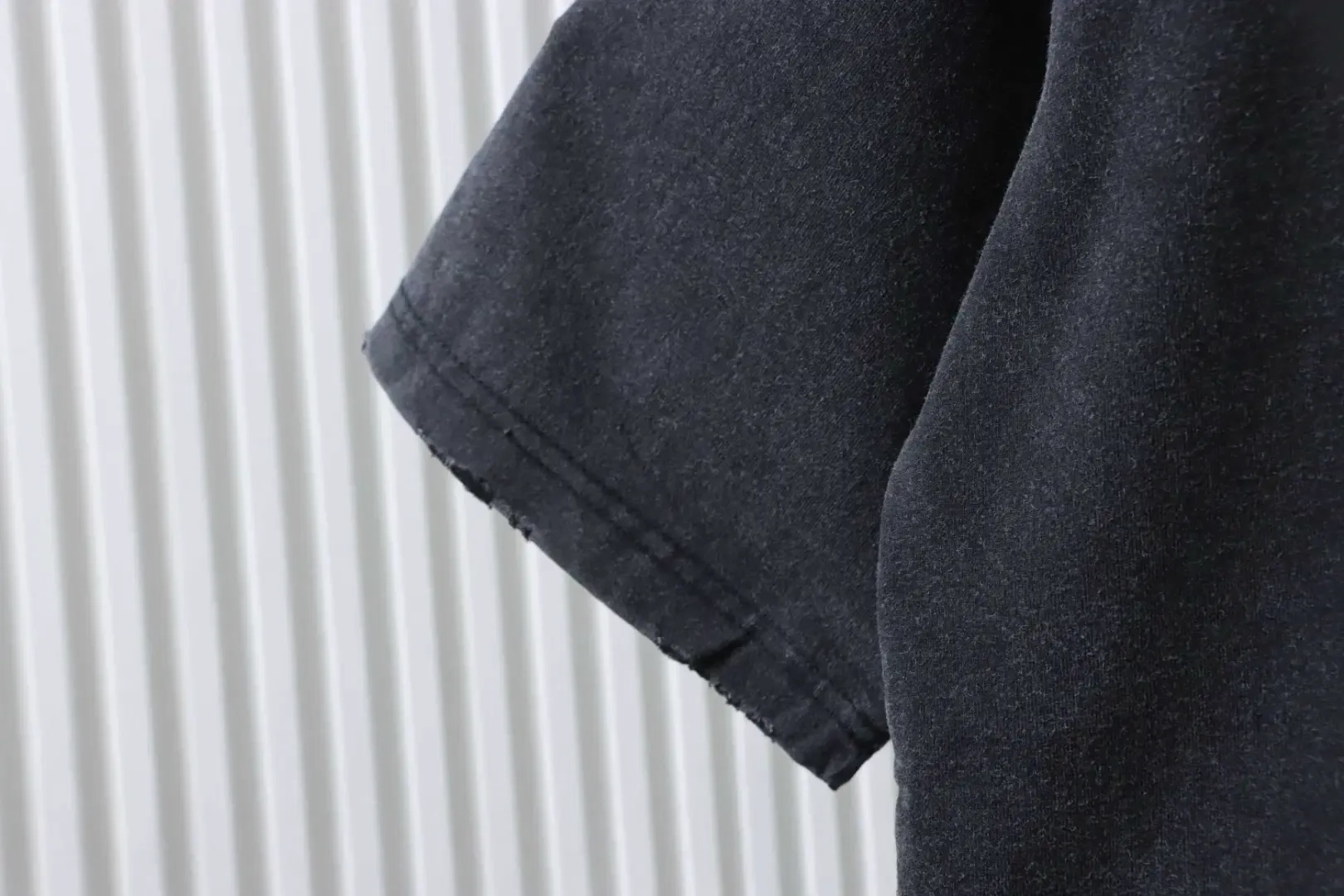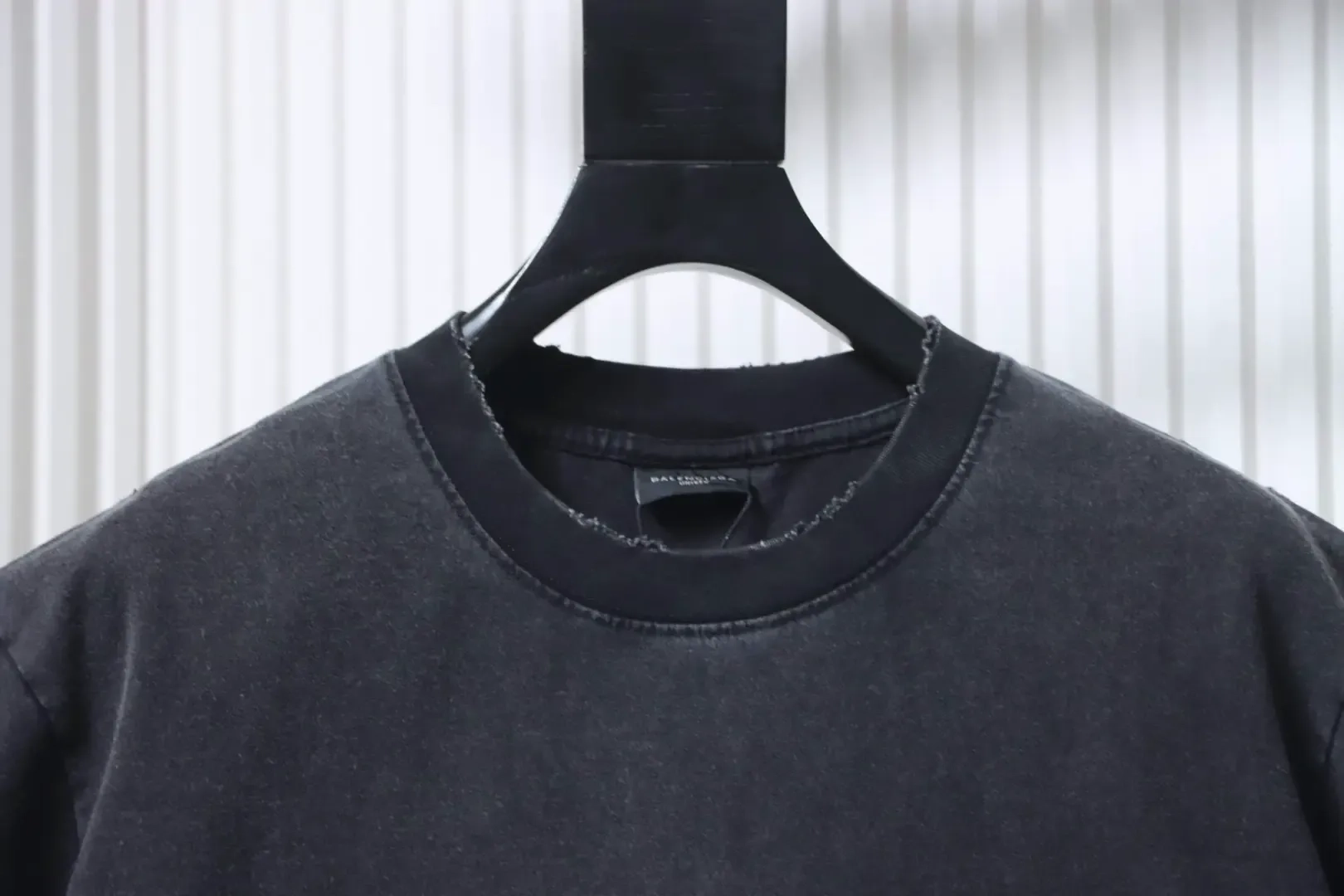 Balenciaga 25ss Reverse Letter Double B Print Washed Ripped Short Sleeve T-Shirt