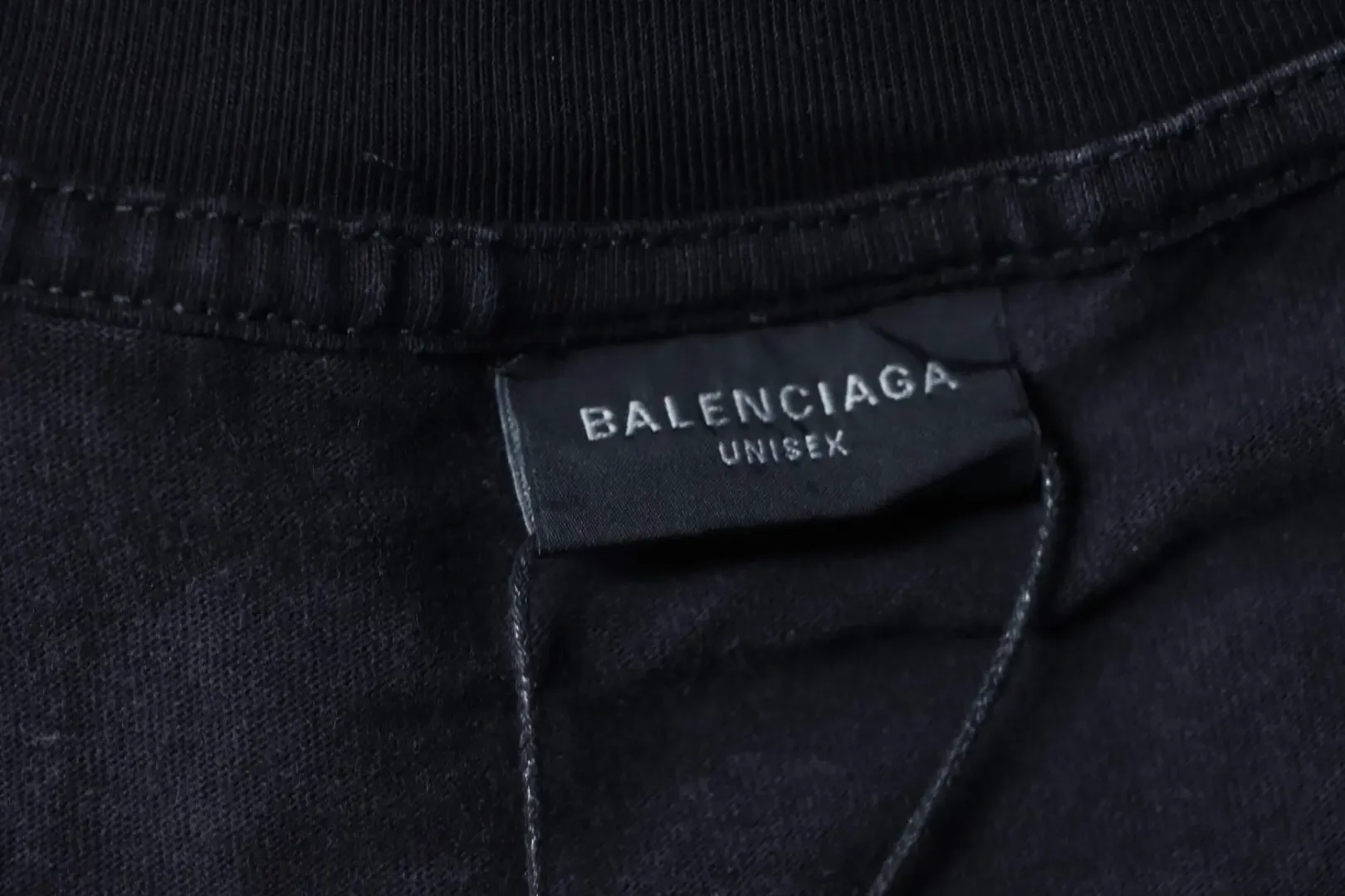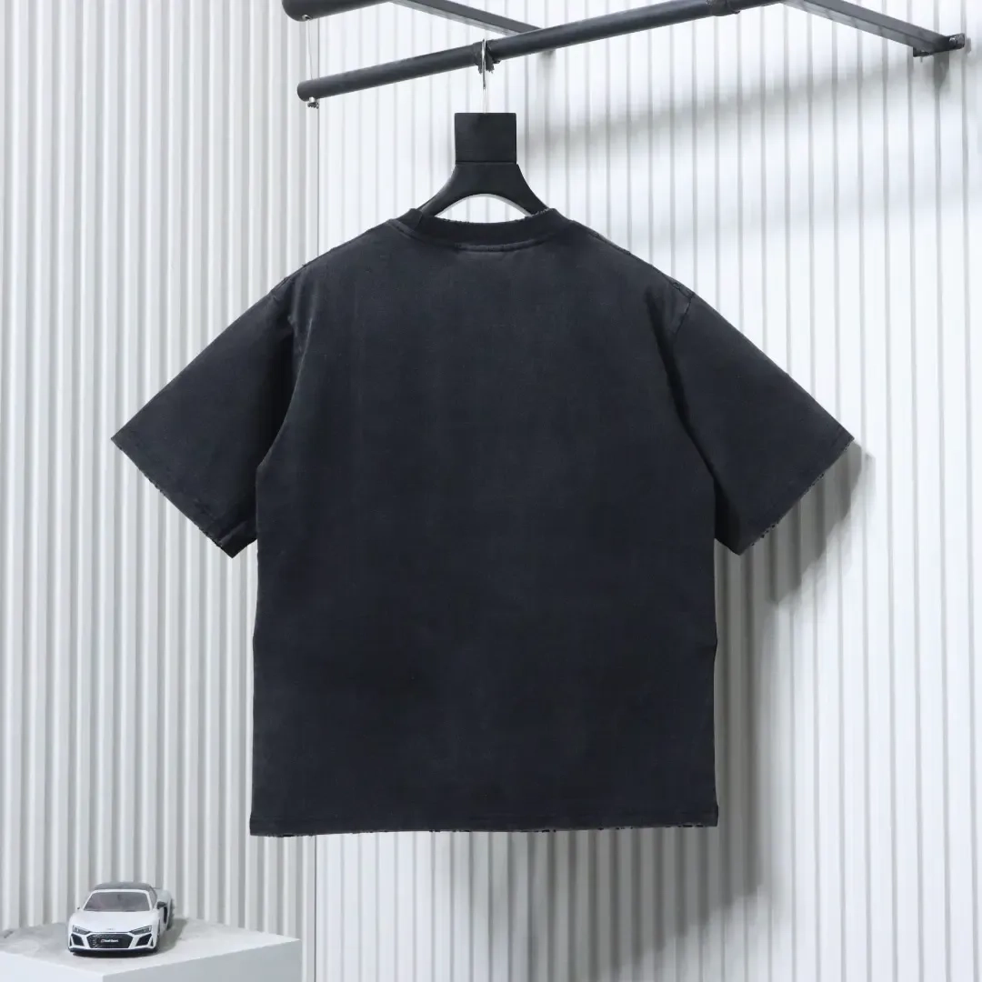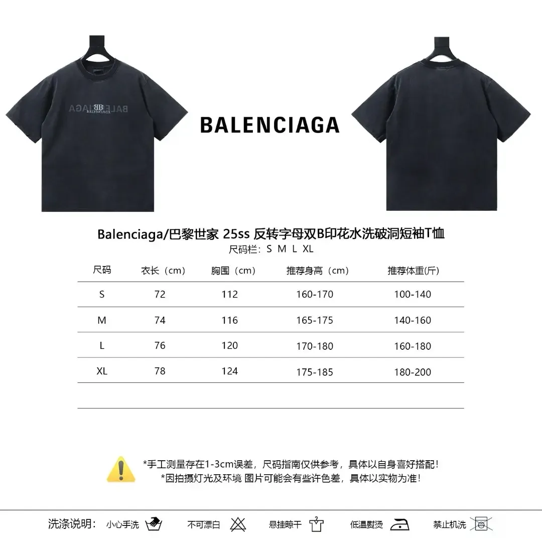 Balenciaga 25ss Reverse Letter Double B Print Washed Ripped Short Sleeve T-Shirt