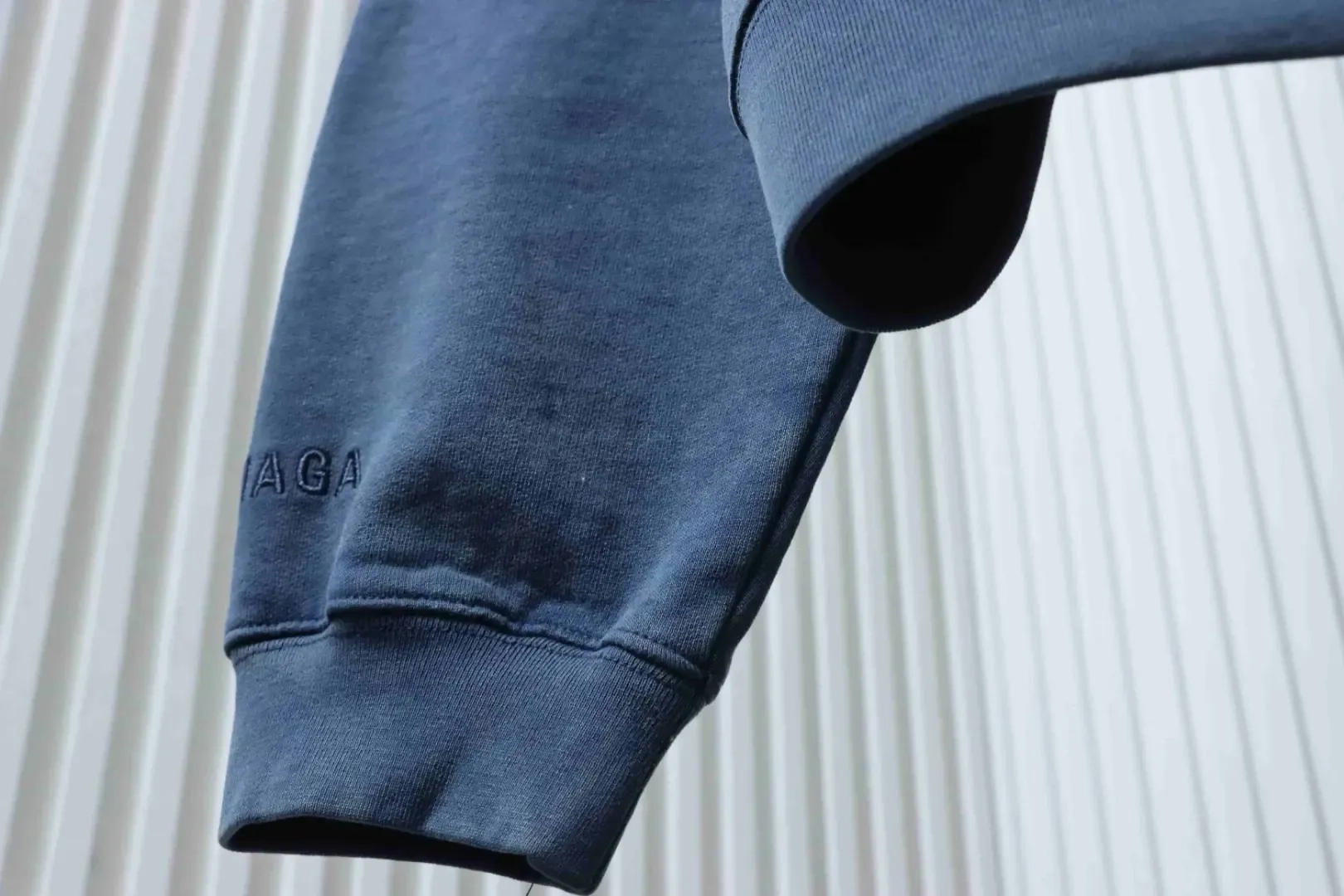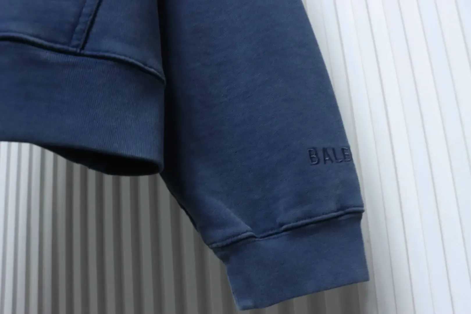 -41%- The fabric is made of 380 g/m² double-layered, combed cotton fleece with a terry backing. It undergoes a special enzyme washing process that gives it a subtle, vintage blue hue and a soft, brushed feel. Unlike conventional sweatshirts, it won’t stretch out of shape even after repeated washing.