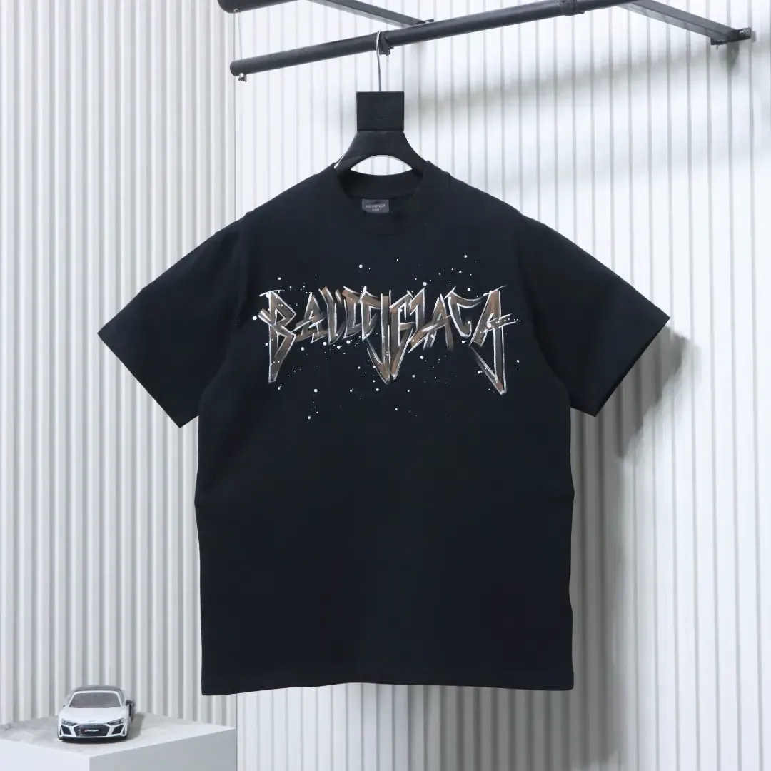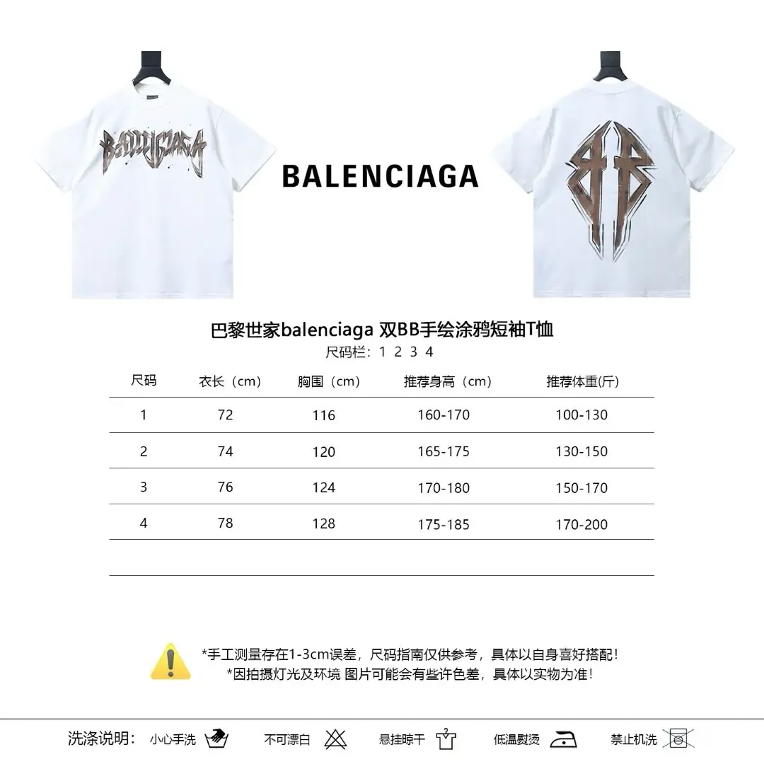 Balenciaga Double B Hand-painted Graffiti Short-Sleeve T-Shirt Balenciaga Double B Hand-painted Graffiti Short-Sleeve T-Shirt