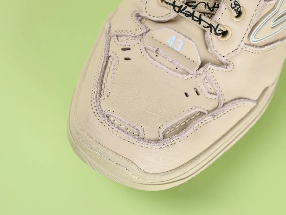 The Balenciaga Hamptons Worn-Out Sneaker is a fusion of art and subversion. In the world of Balenciaga, “worn” is an aesthetic. The Hamptons Worn-Out Sneaker is handcrafted to replicate the natural marks of years of wear. It features every scratch, discoloration, and even crack, carefully crafted by the designer.