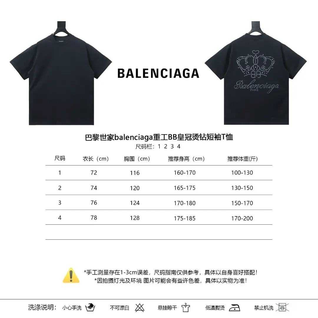 Balenciaga Heavy Industries BB Crown Rhinestone Short Sleeve T-Shirt