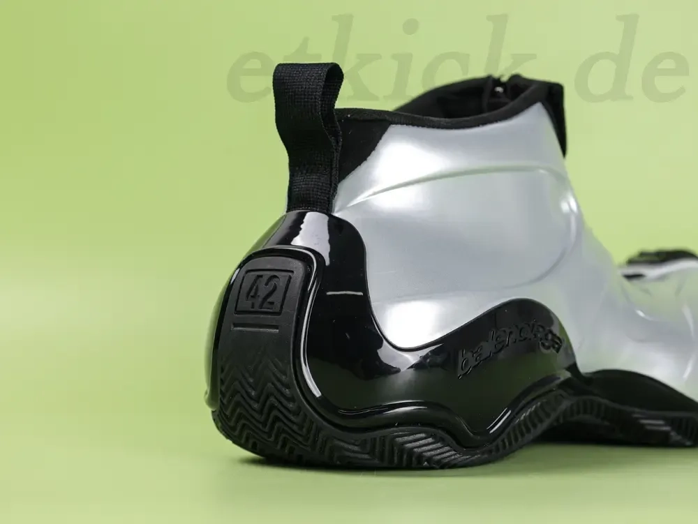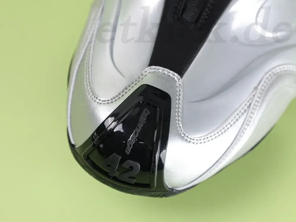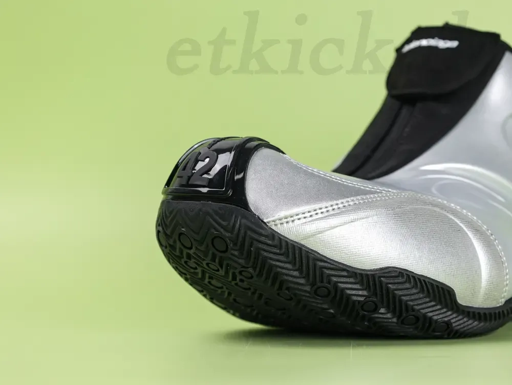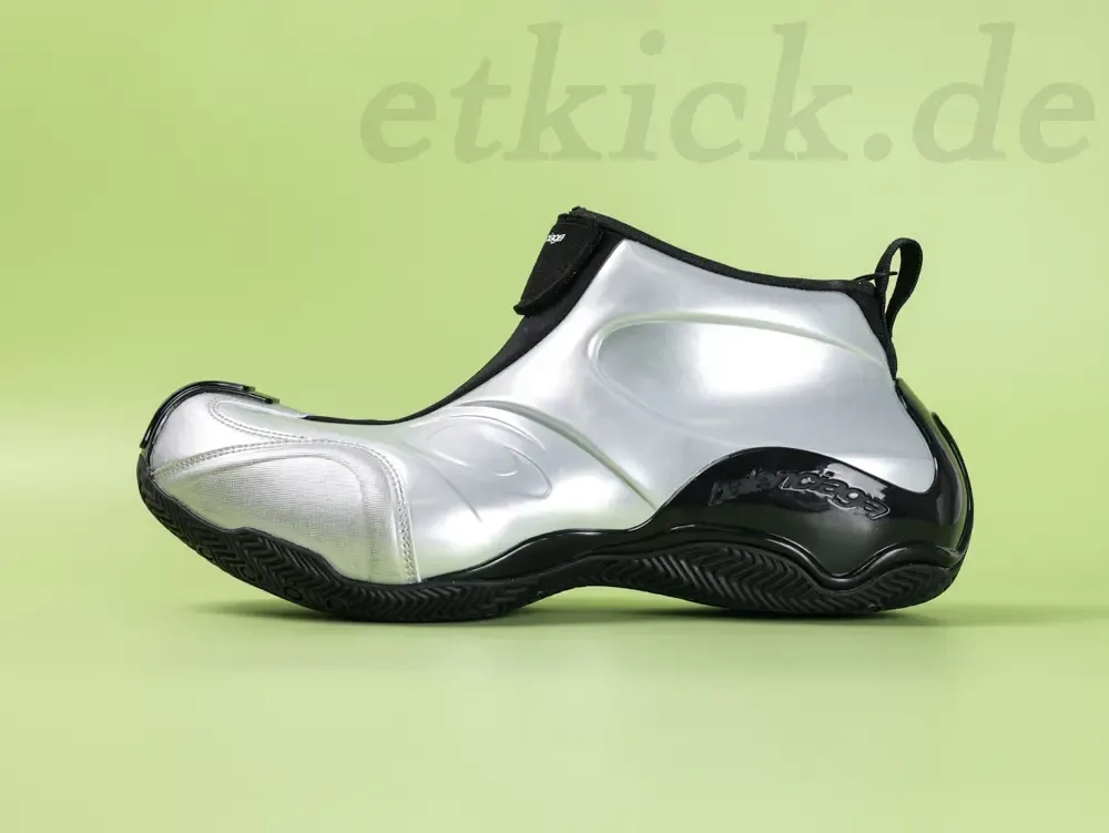 Balenciaga presents a new men’s basketball shoe in a futuristic color combination of metallic silver and black. The striking design combines luxury and athletic DNA, underscoring the brand’s avant-garde aesthetic.