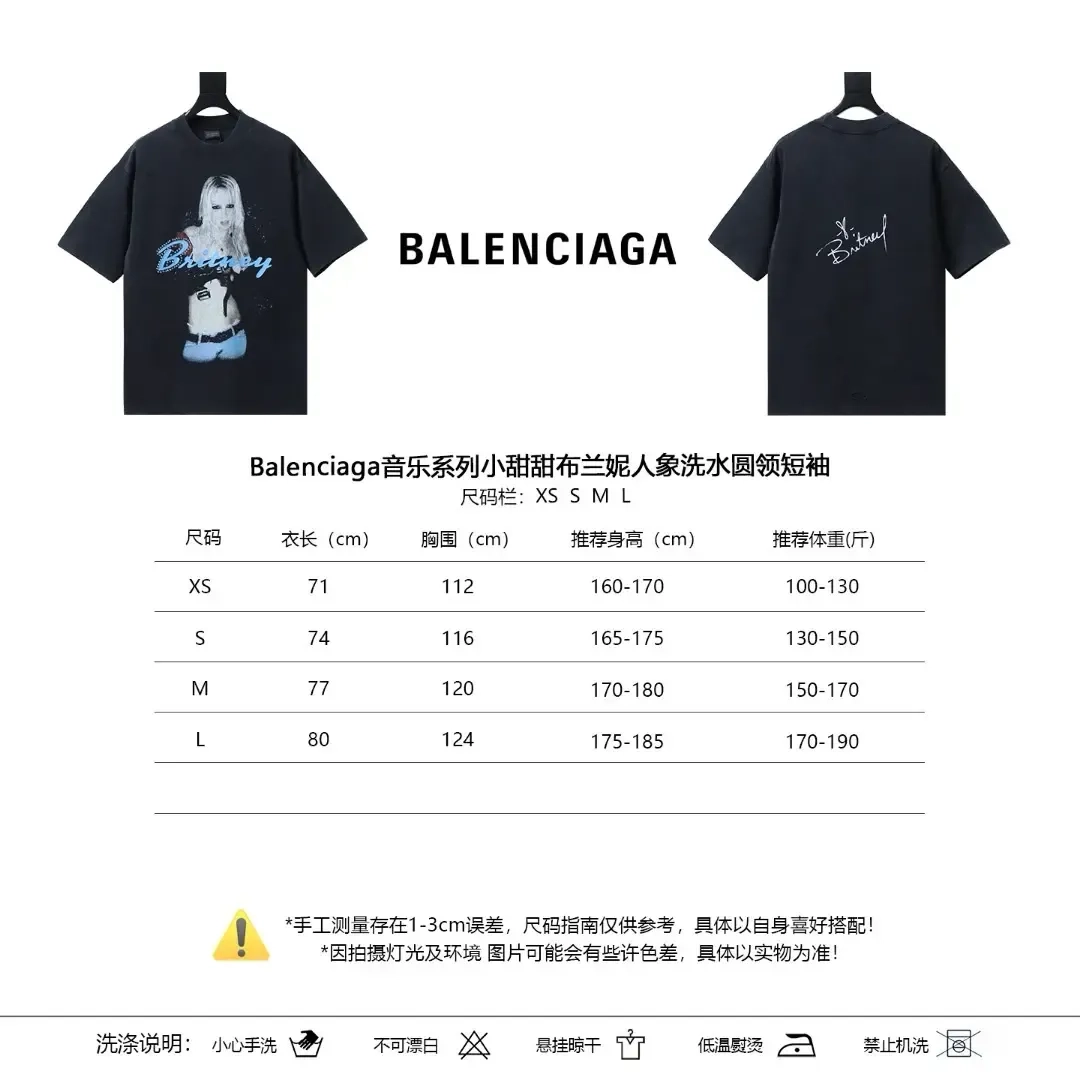 Balenciaga Music Collection Britney Spears Portrait Washed Crew Neck Short Sleeve