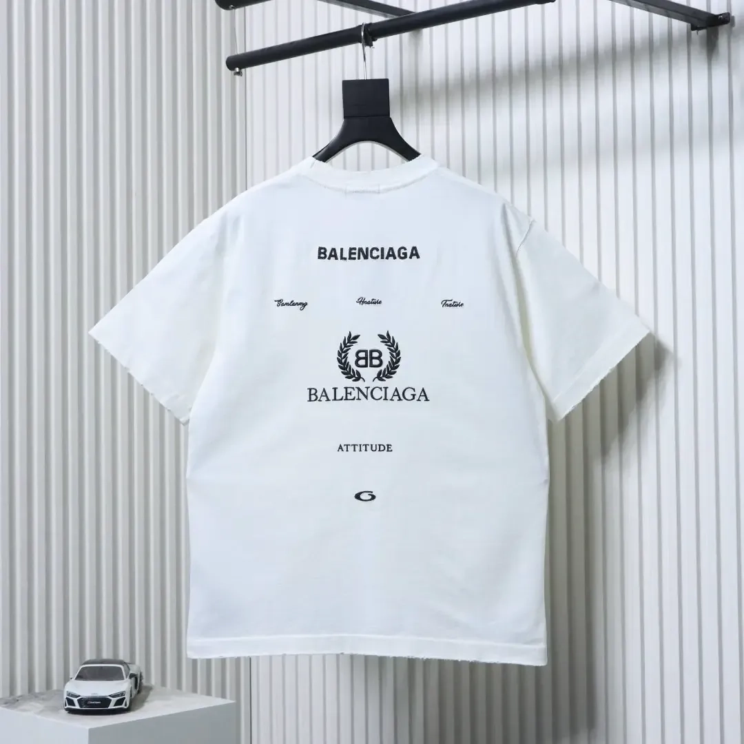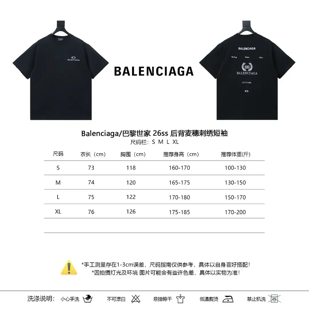 Balenciaga short-sleeved shirt with wheat embroidery on the back