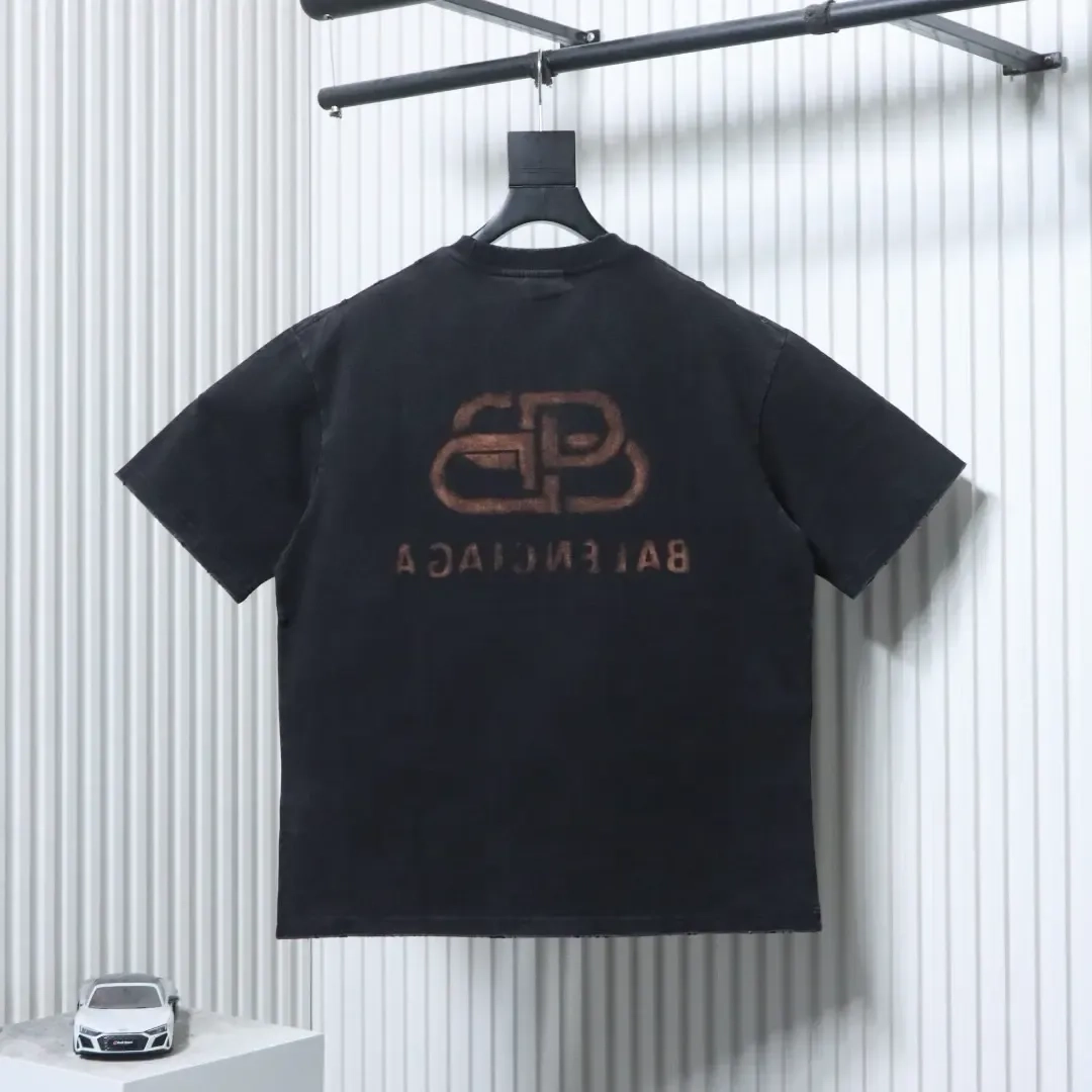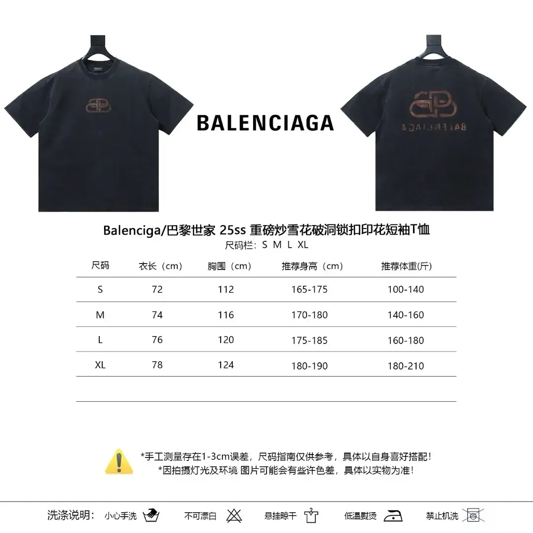 Balenciaga short-sleeved T-shirt with snowflake pattern, rips and castle print in heavy material
