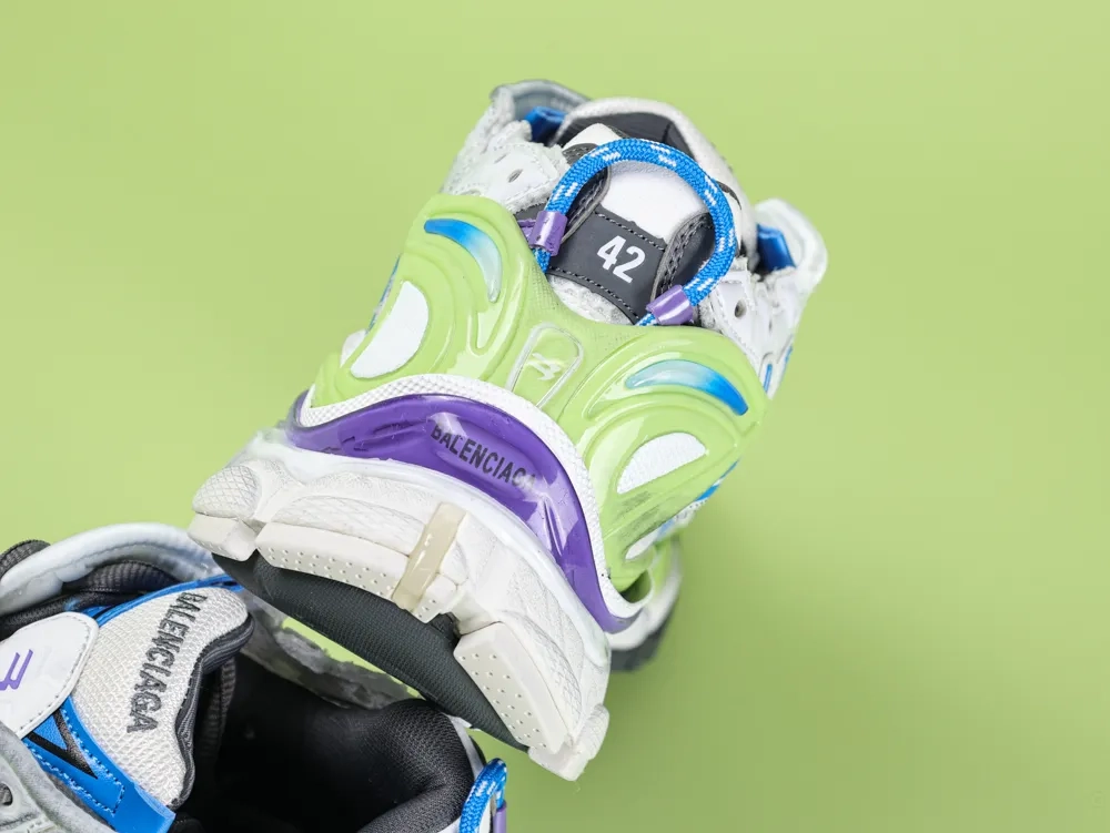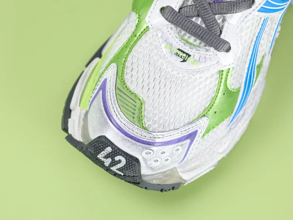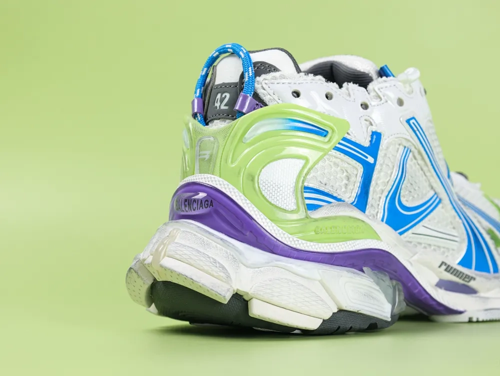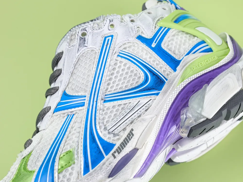 Balenciaga White Runner Sneaker in White Yellow and Blue