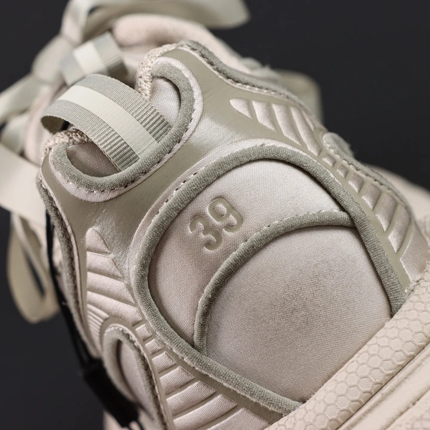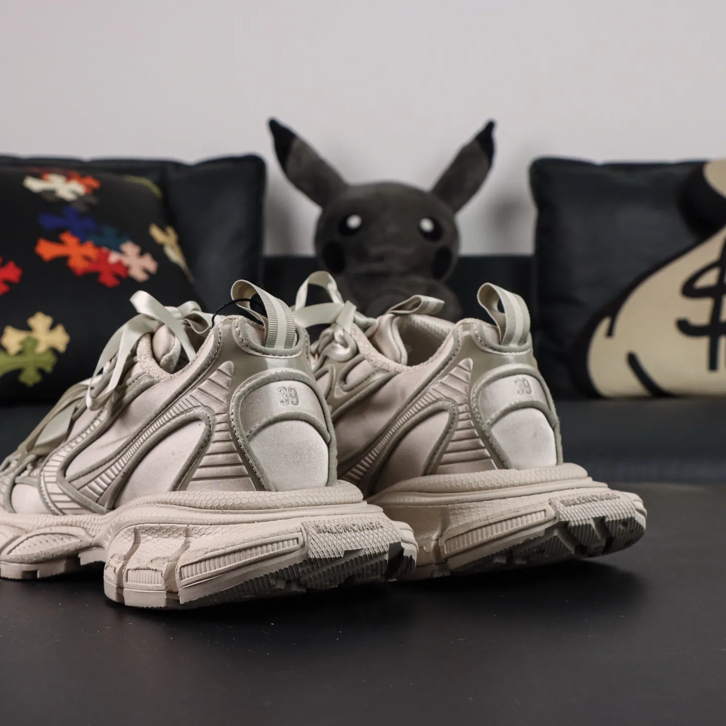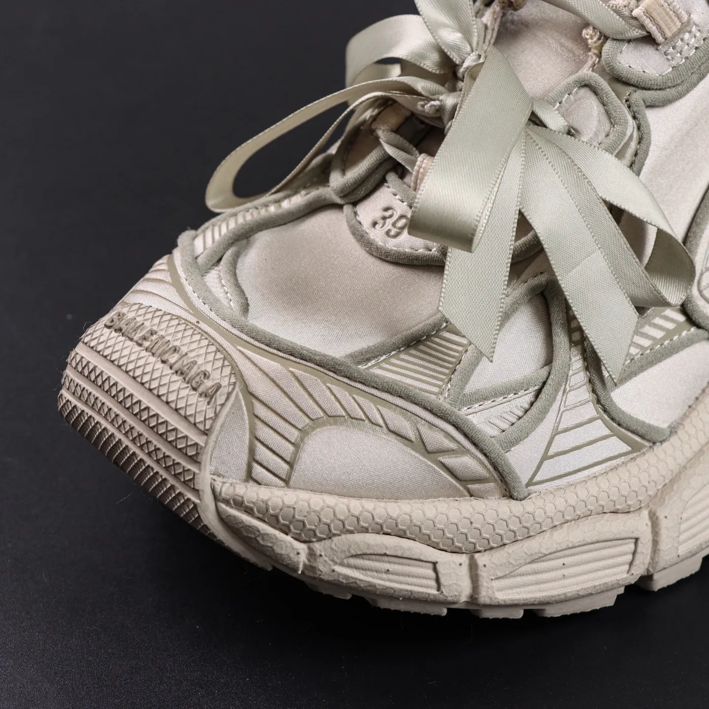 • Unter Beibehaltung der Silhouette und der komplexen Kunststoff-Oberkonstruktion des Balenciaga Runner wurde eine breitere, stärker konvexe Außensohle hinzugefügt.
