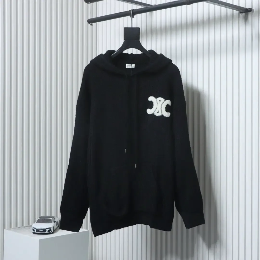 Celine Terrycloth Hoodie With Arc De Triomphe And Back Applique With Embroidery