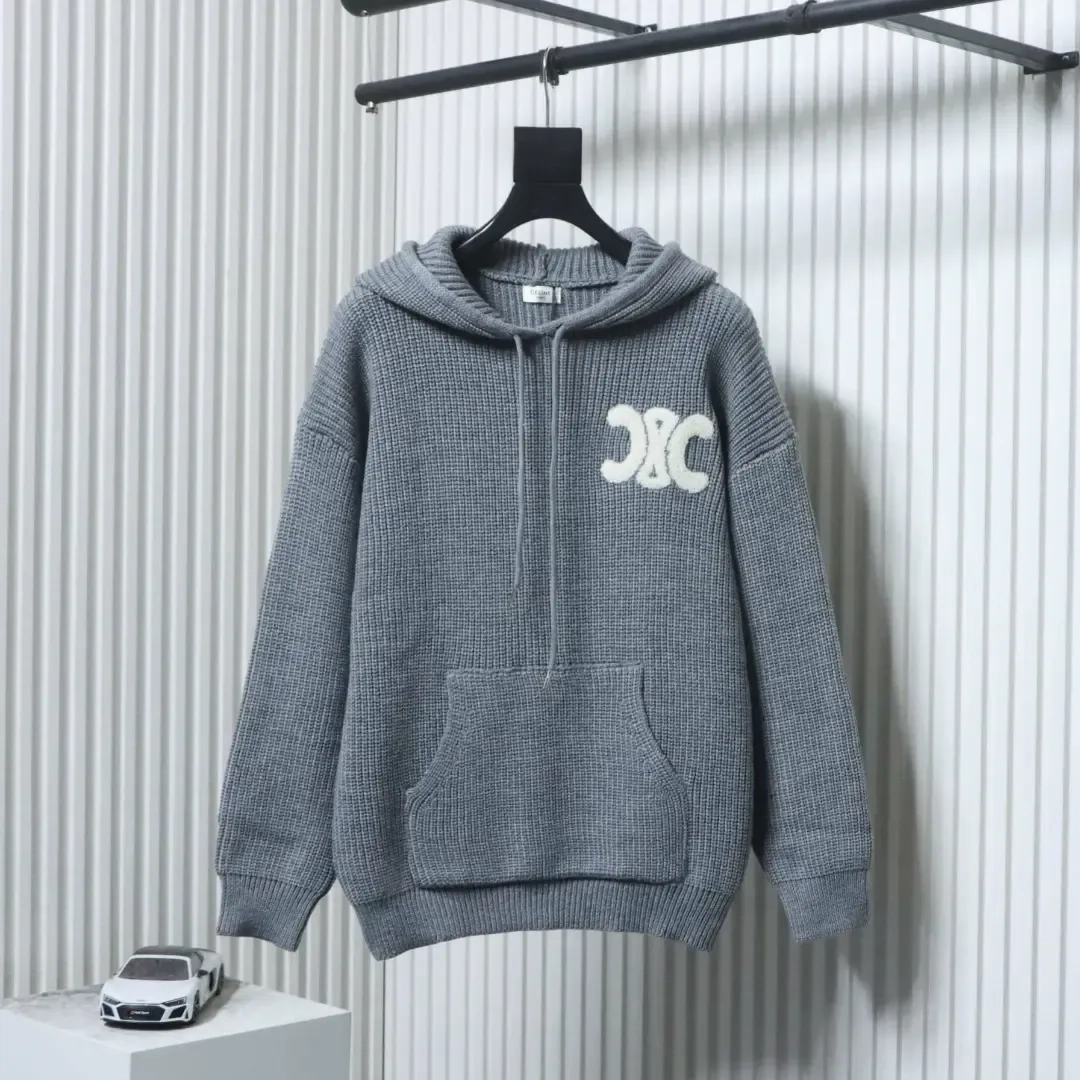 Celine Terrycloth Hoodie With Arc De Triomphe And Back Applique With Embroidery Celine Terrycloth Hoodie With Arc De Triomphe And Back Applique With Embroidery