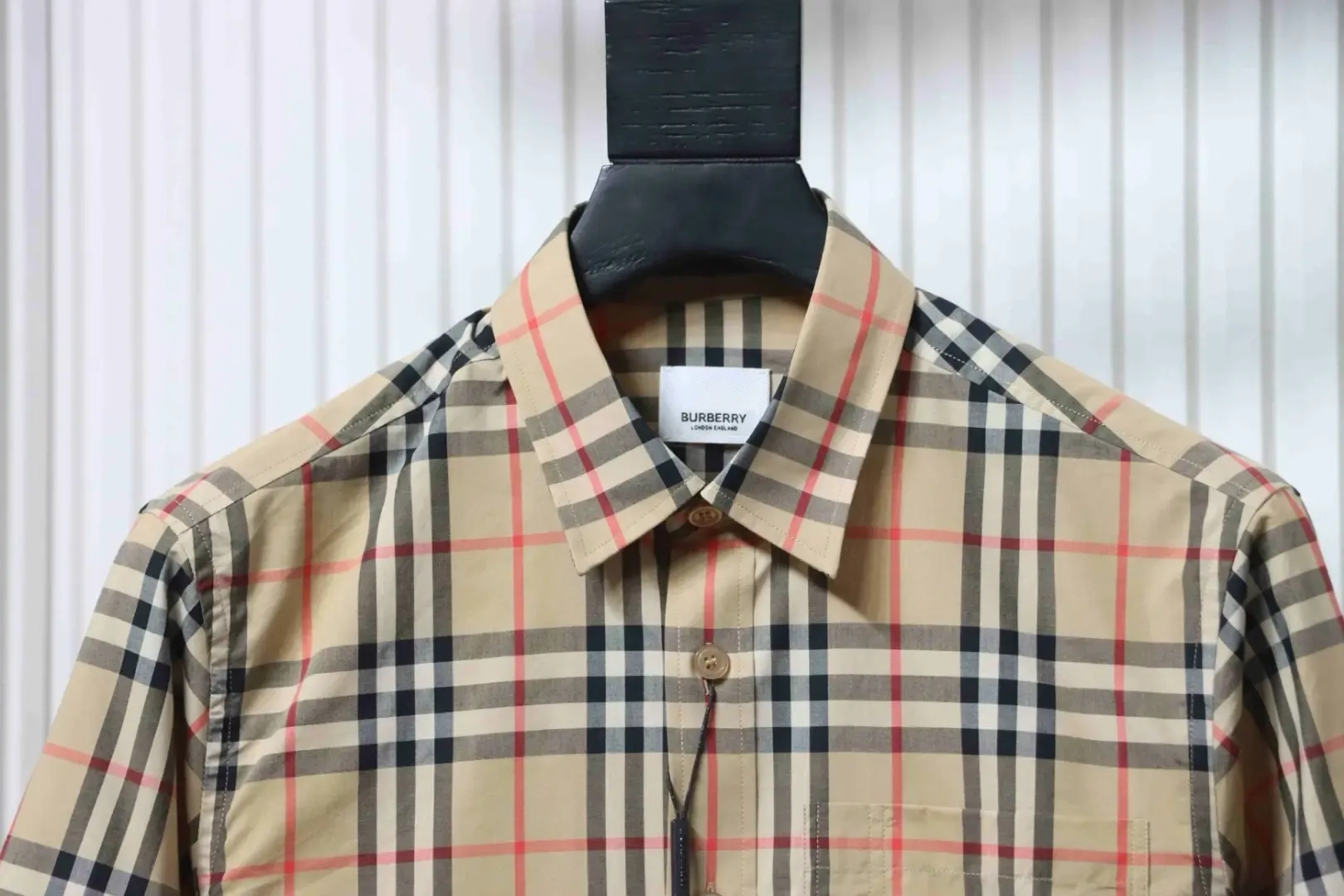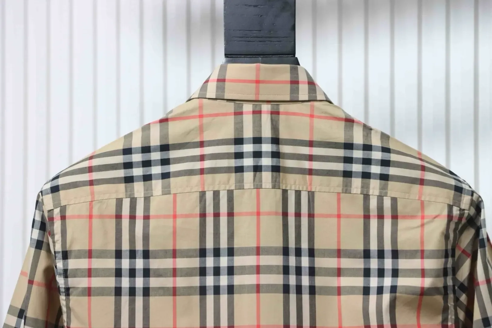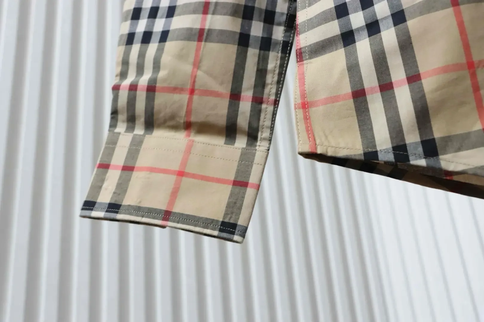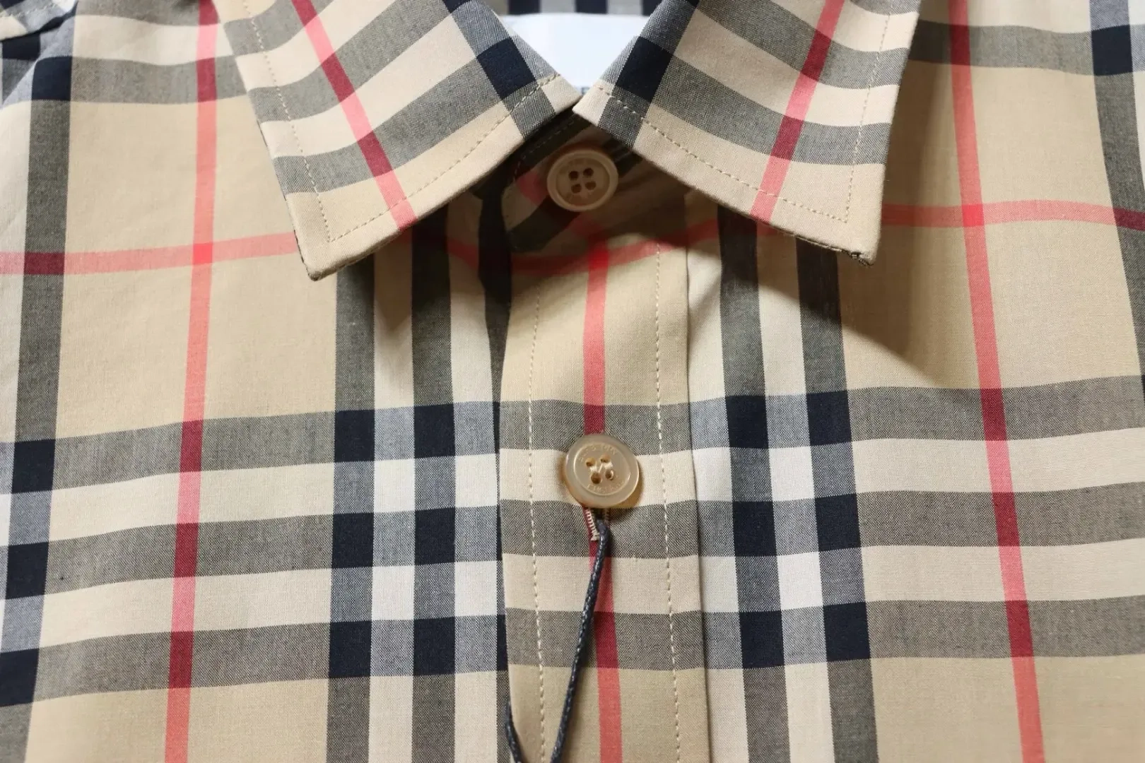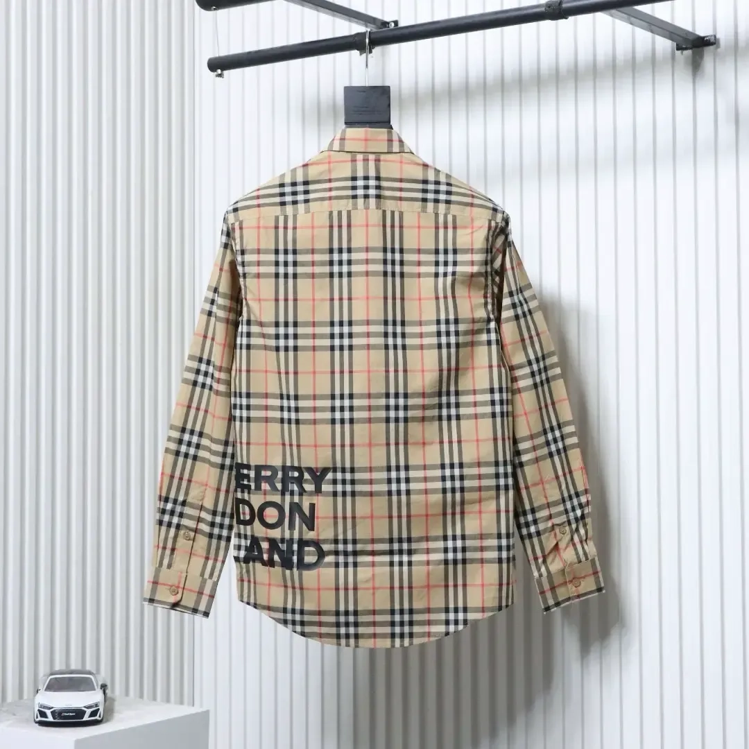 Checkered cotton long-sleeved shirt with printed letter at the hem Checkered cotton long-sleeved shirt with printed letter at the hem