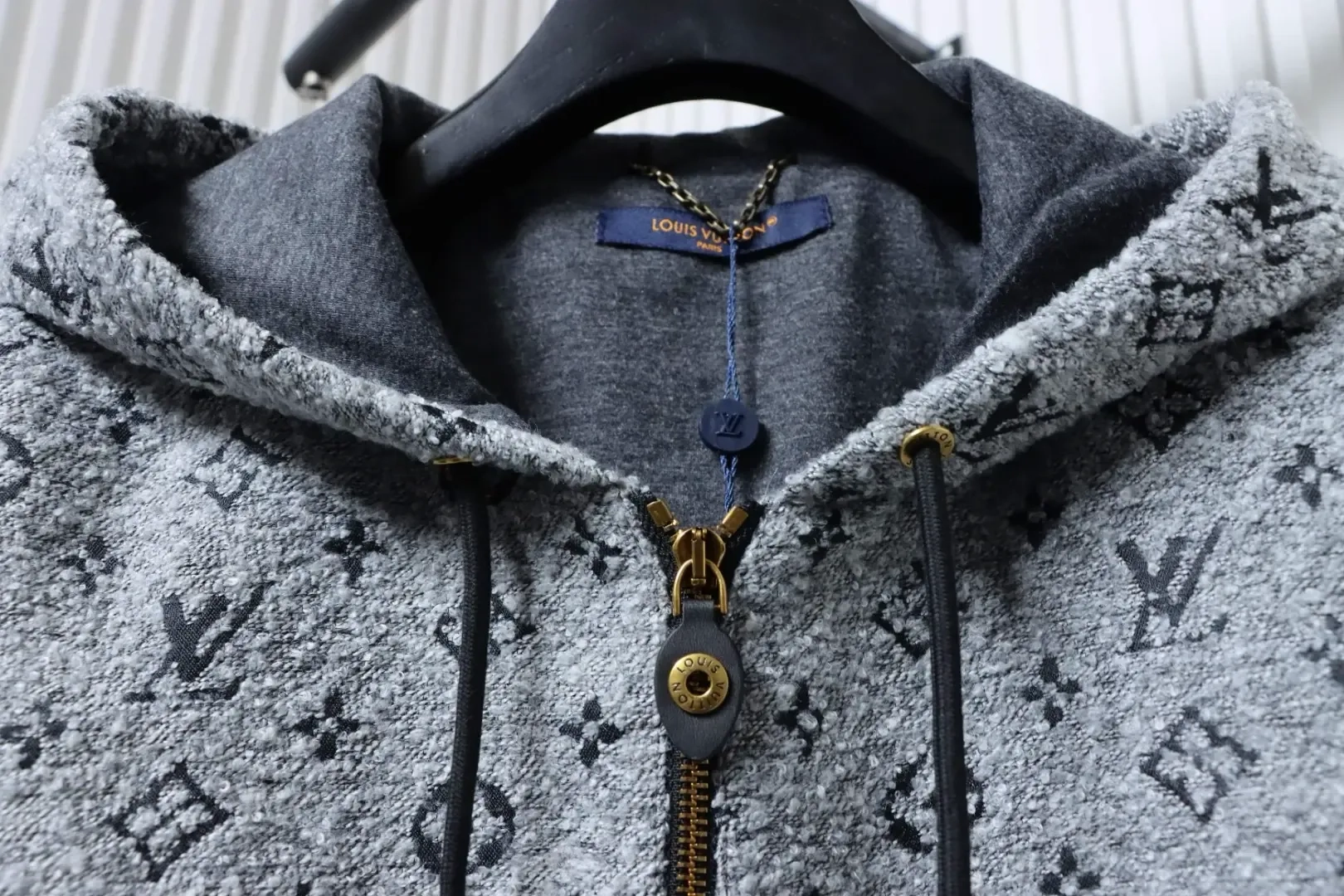 - The drawstring hood allows for versatile styling. The metal zipper is both robust and decorative. The zipper pull features the brand’s signature metal detail, adding extra elegance to the garment.