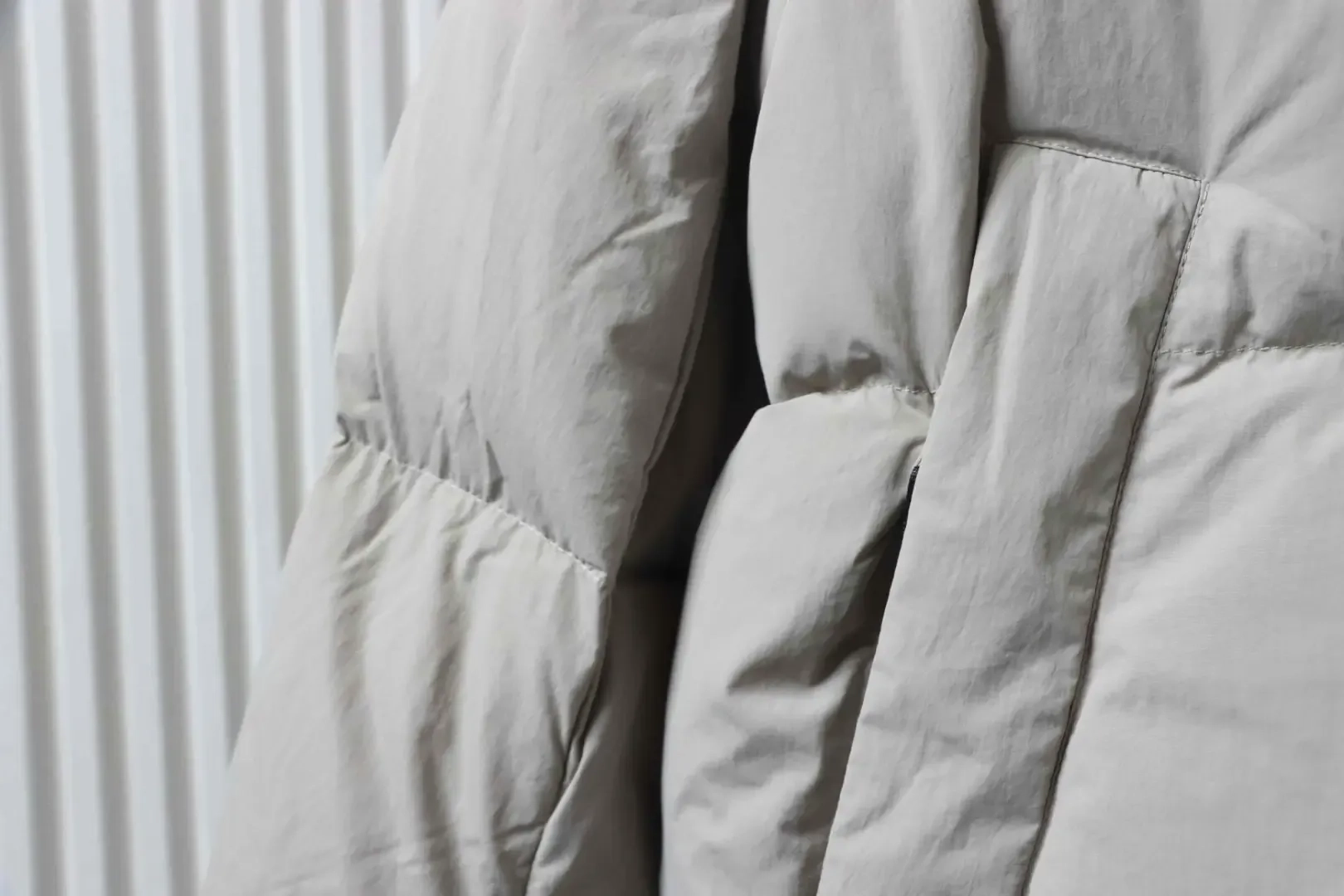 - The light gray, matte texture breaks with the cliché of outdoor clothing and fits perfectly into urban and outdoor environments. Polyester fabric combined with high-precision computer embroidery creates a clear and three-dimensional brand logo; precise seams reinforce the down filling, prevent down from escaping, and ensure its loft and shape retention.
