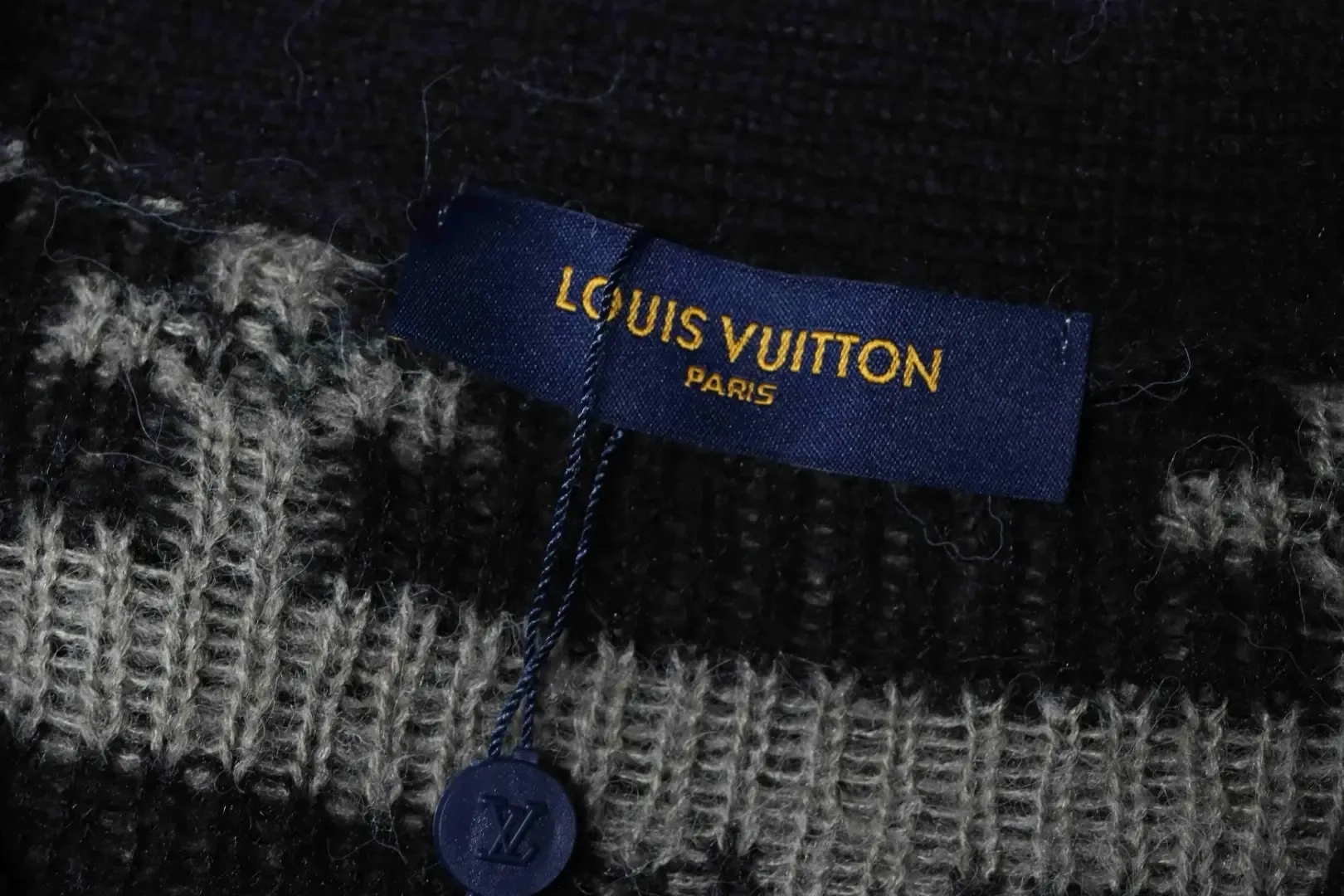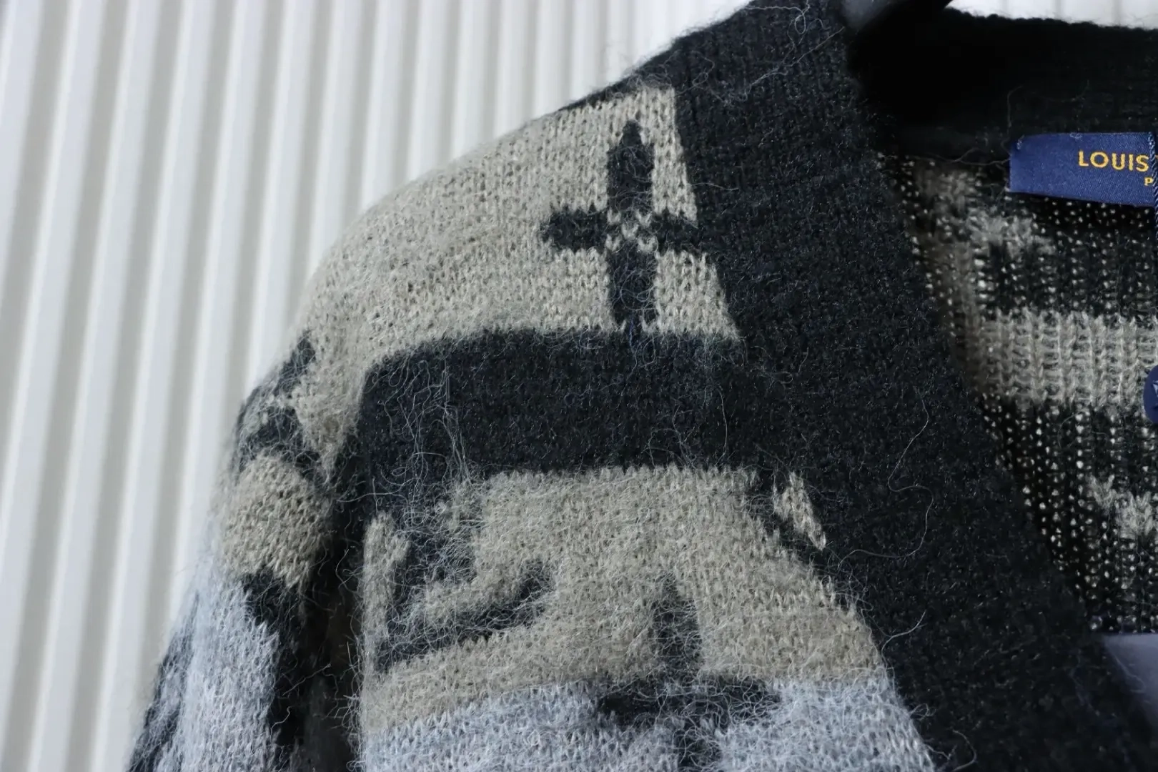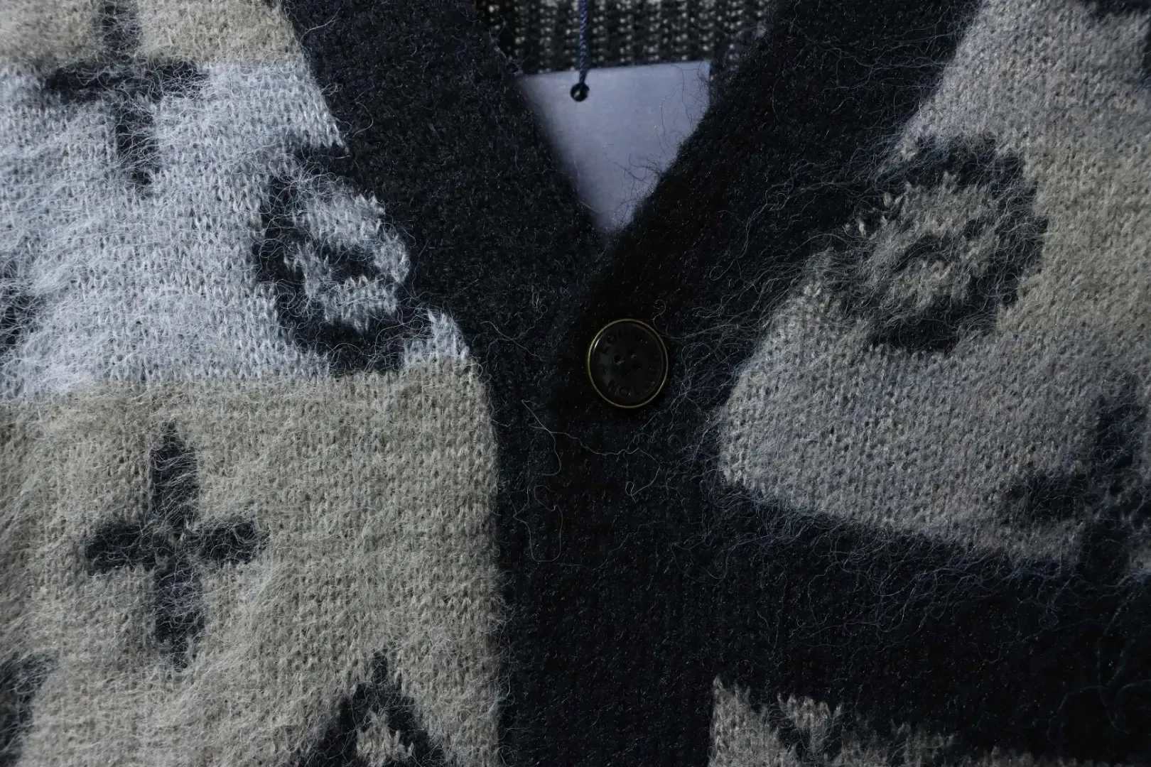 -60%- Made from a specially woven yarn of mohair (67%), nylon (28%), and sheep’s wool (5%), using imported, finely brushed mohair. Crafted from imported Stoll yarn, every seam is perfectly aligned. The black, white, and gray hues accentuate the monogram pattern across the entire width.