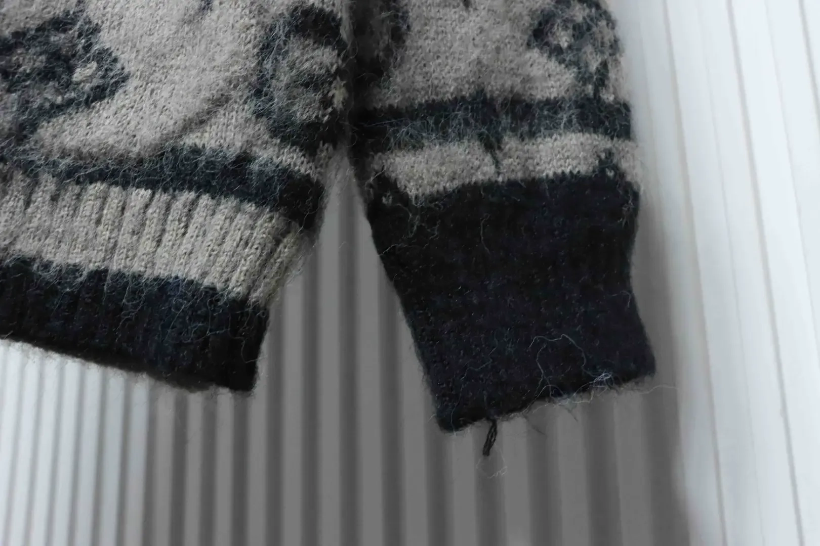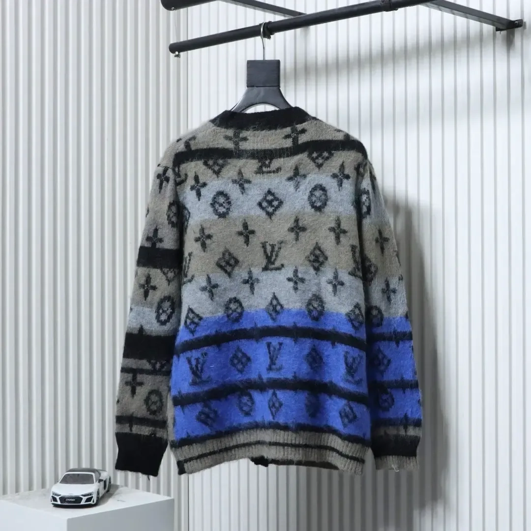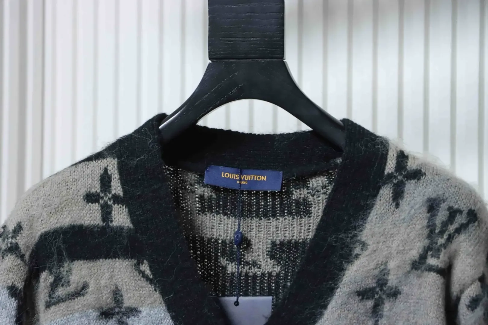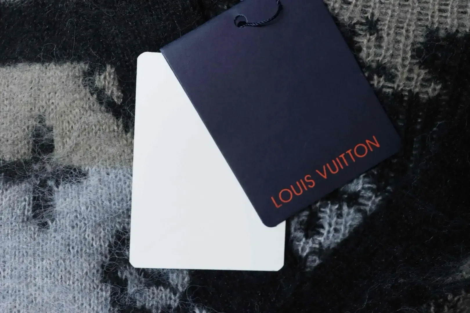 -60%- Made from a specially woven yarn of mohair (67%), nylon (28%), and sheep’s wool (5%), using imported, finely brushed mohair. Crafted from imported Stoll yarn, every seam is perfectly aligned. The black, white, and gray hues accentuate the monogram pattern across the entire width.