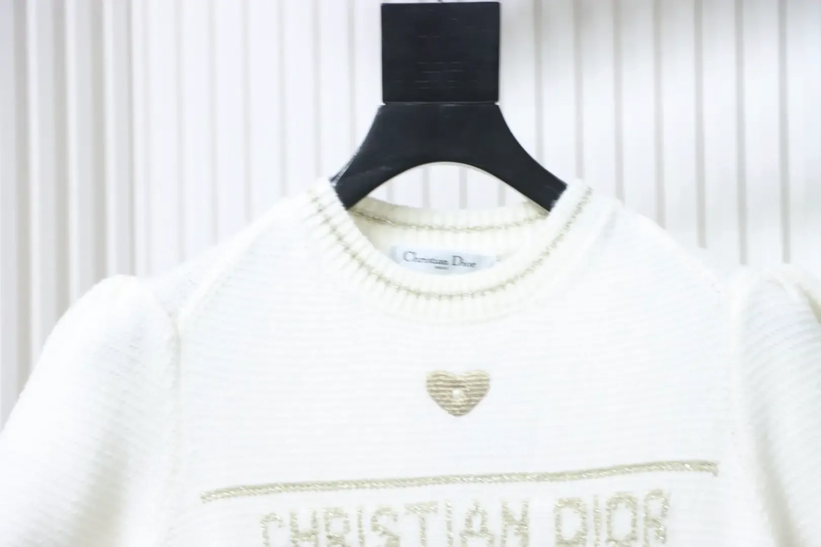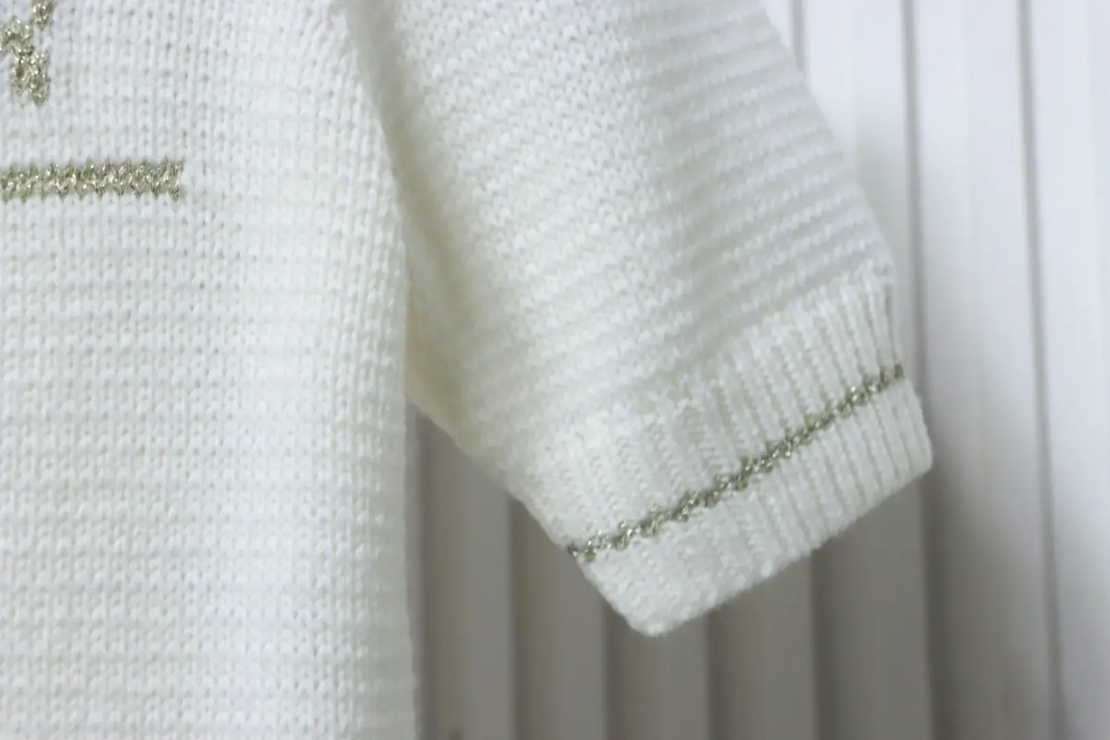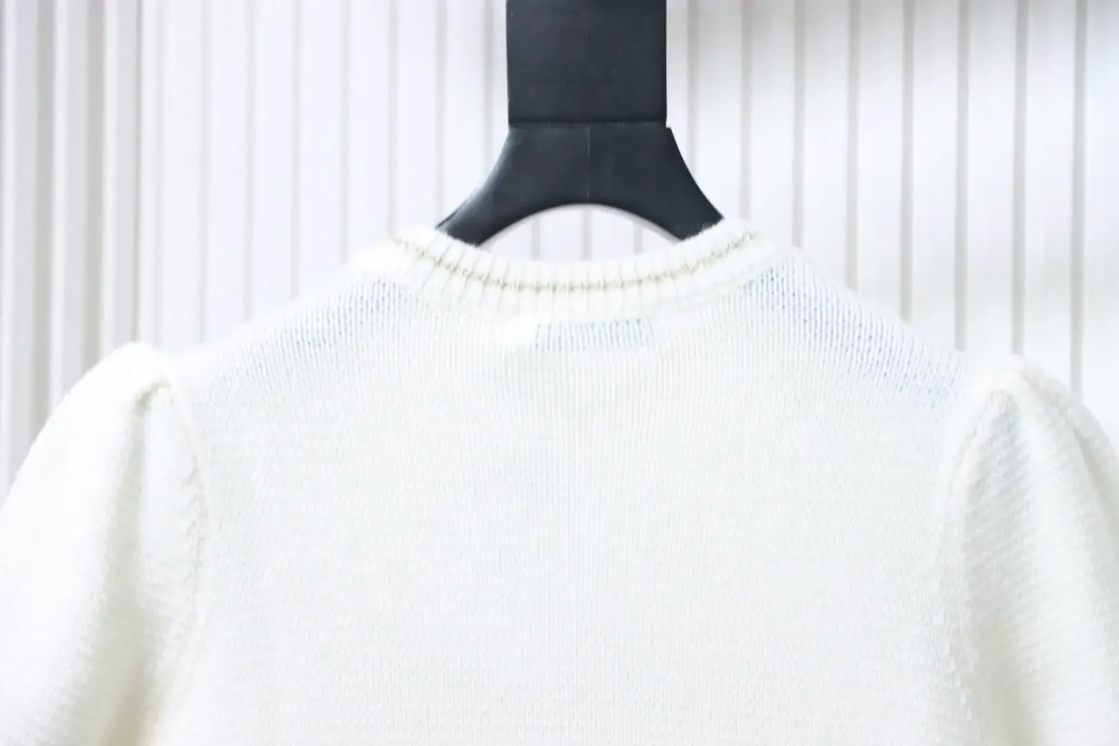 Knit sweater with heart-shaped puff sleeves made of beads, short-sleeved