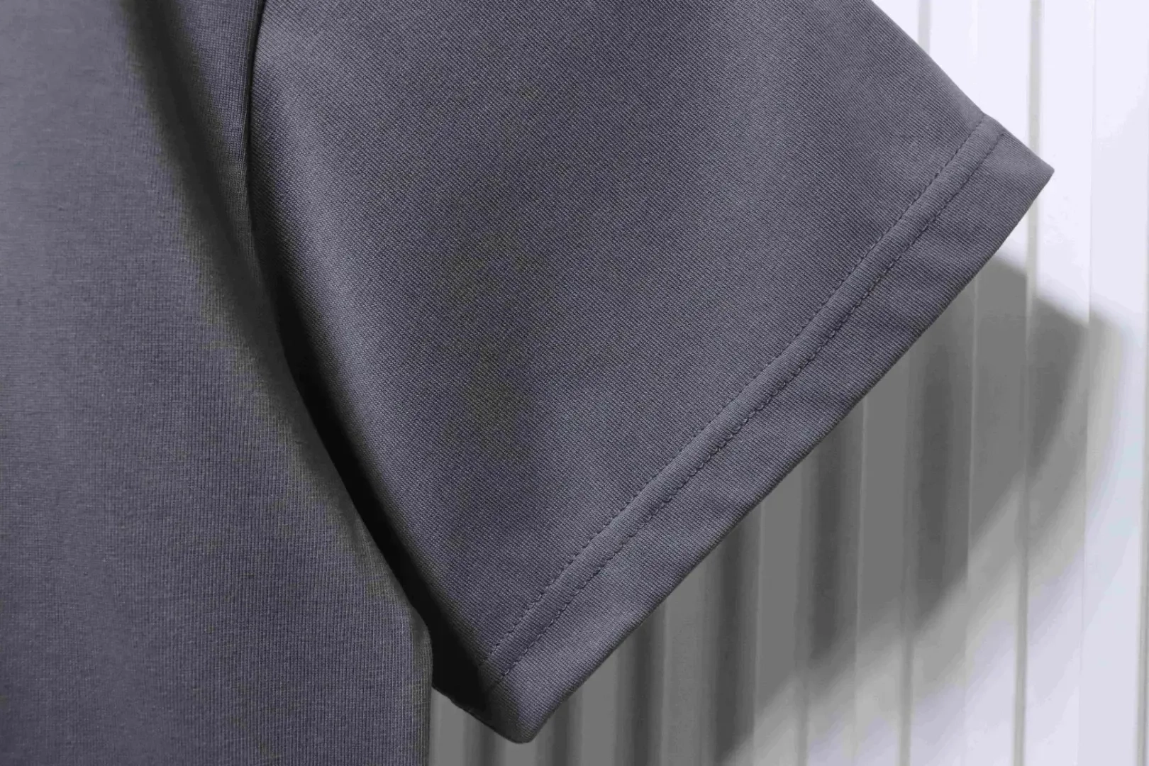 Short-sleeved T-shirt with round neck, dropped shoulders and cuff patch