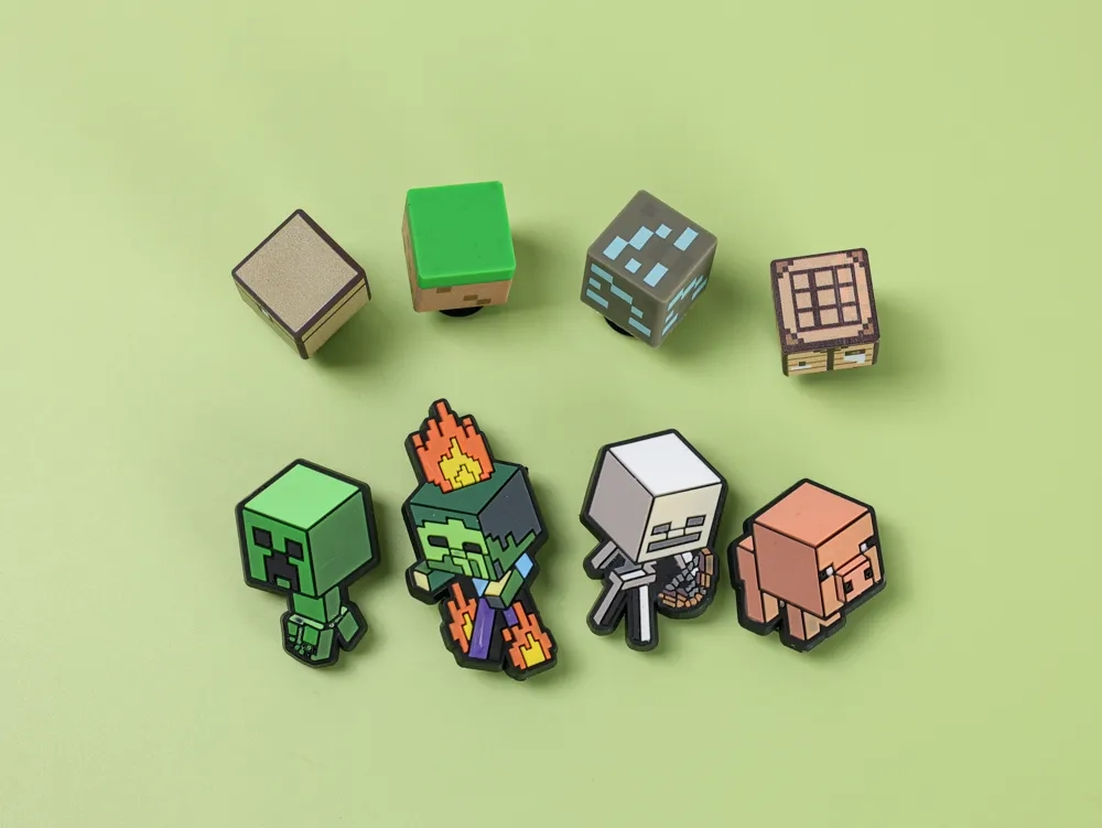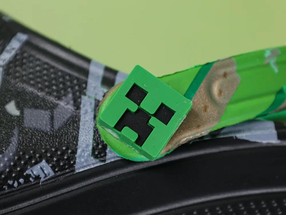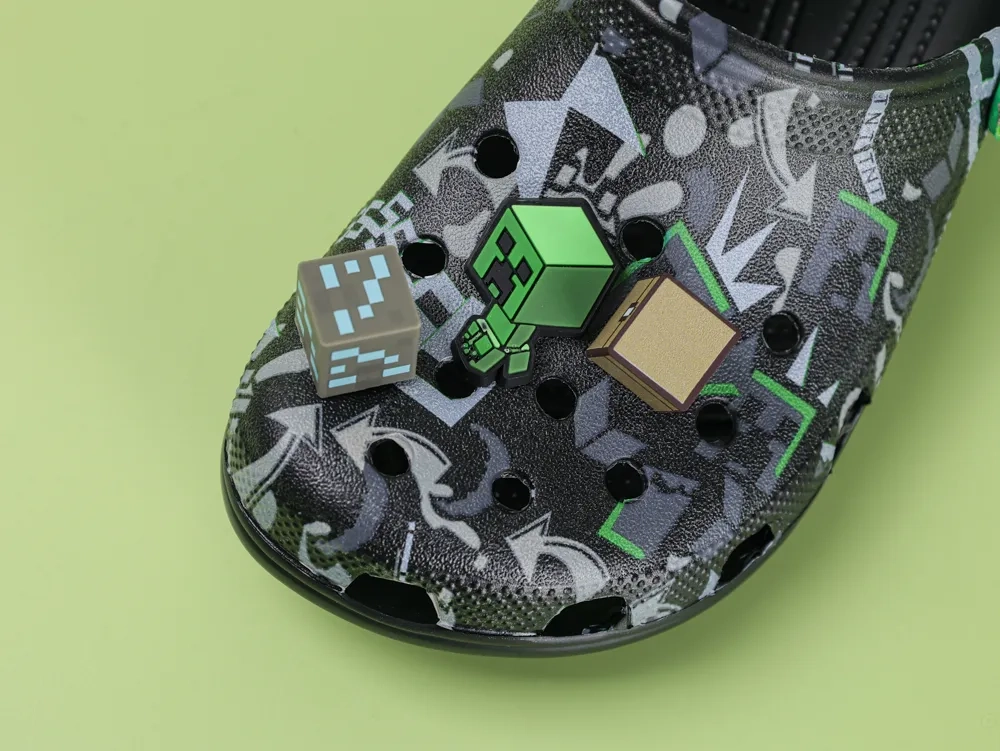 • Includes several Minecraft-inspired Jibbitz™ shoe buckles, including diamond swords, TNT, creepers, and other characters and props, for a custom combination.
