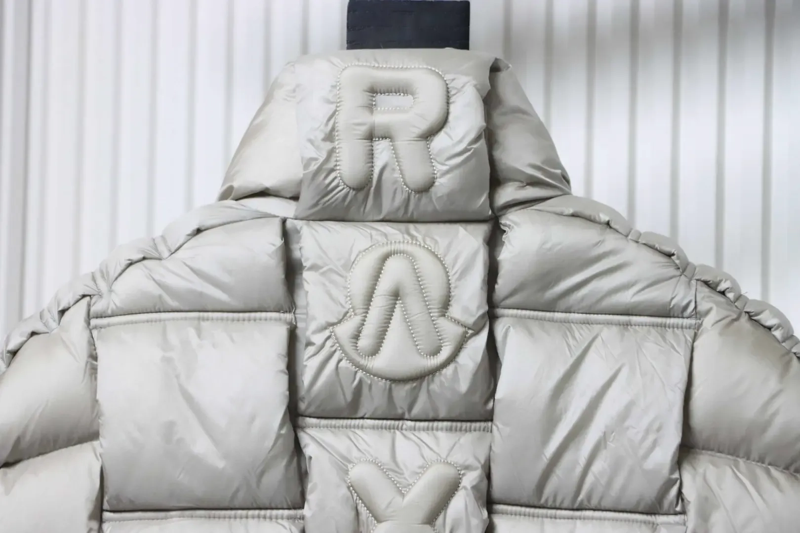 -52%- Moncler’s collaboration with artist Christopher Raxxy on a down jacket shaped like a dinosaur egg features striking 3D quilting.