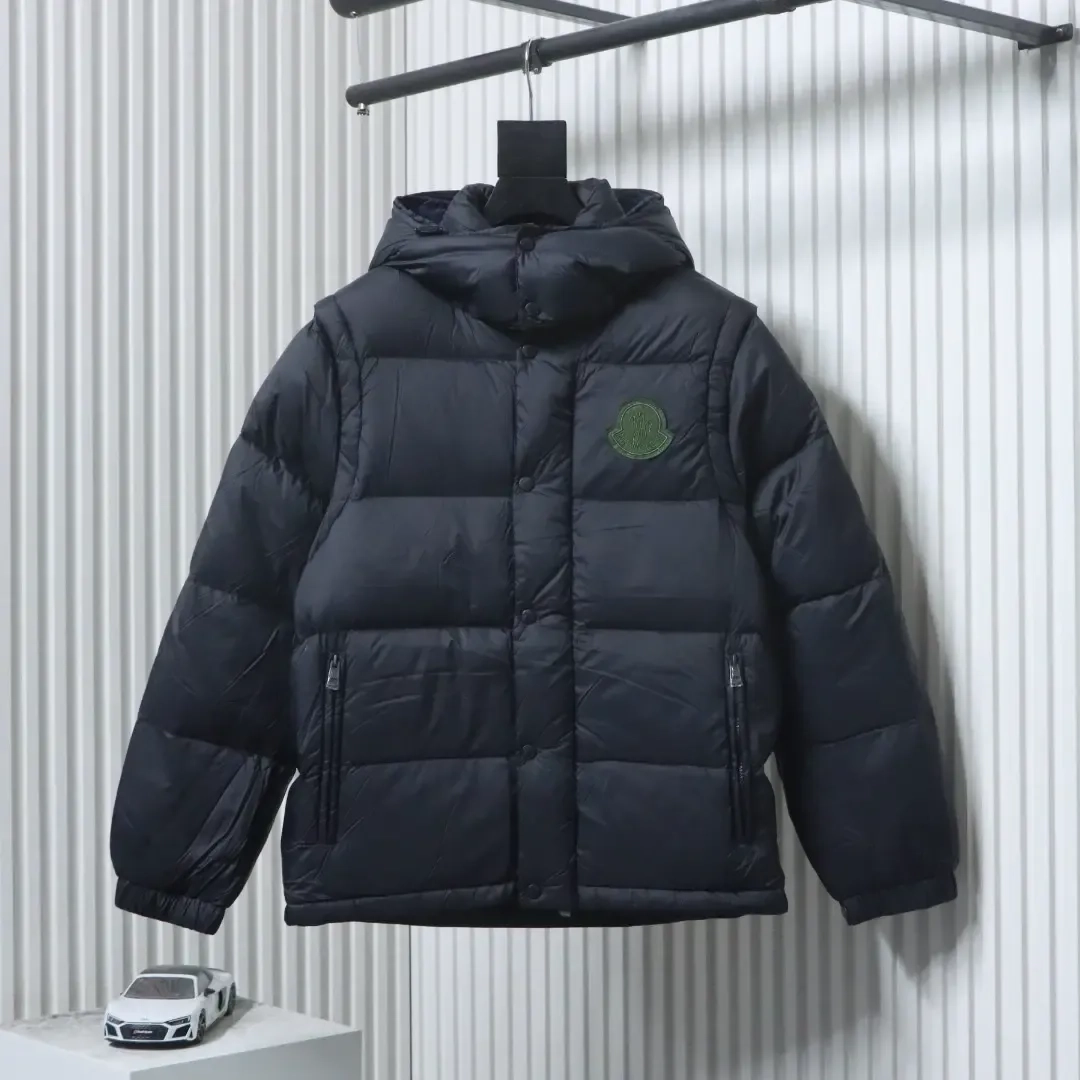 Moncler Cyclone Down Jacket With Large Logo Detachable Sleeves And Hood