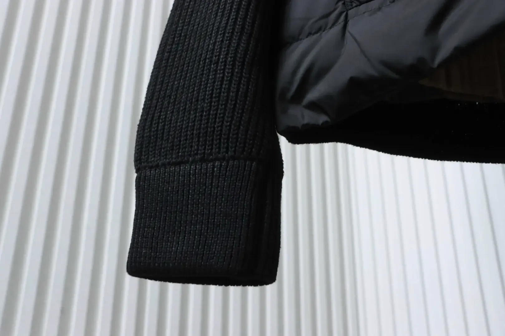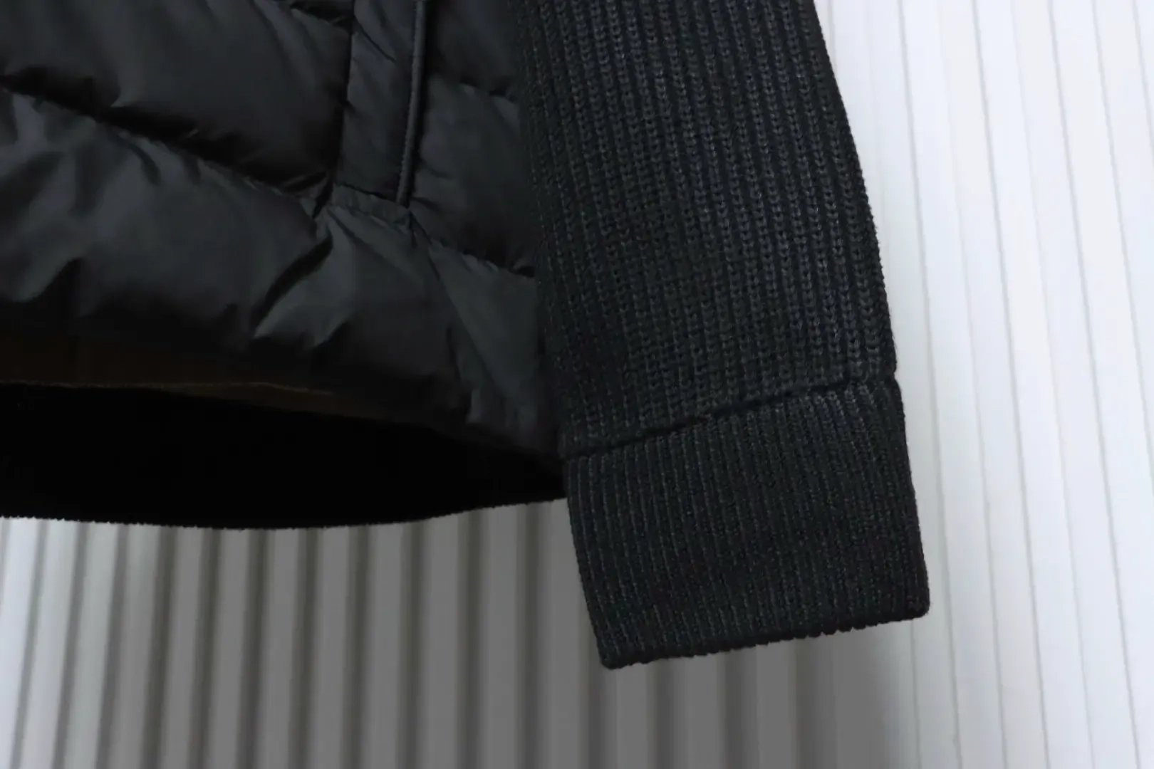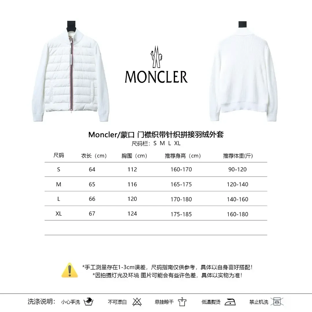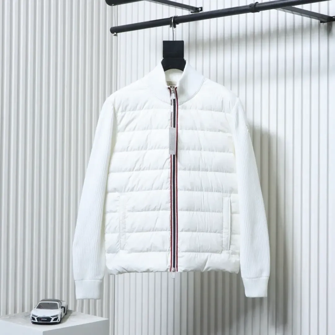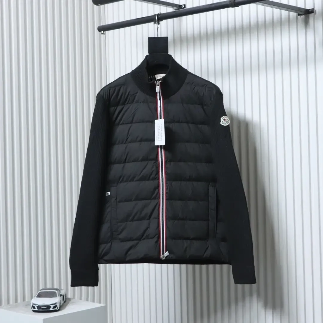 Moncler Down Jacket With Woven Button Placket And Knitted Patchwork Design