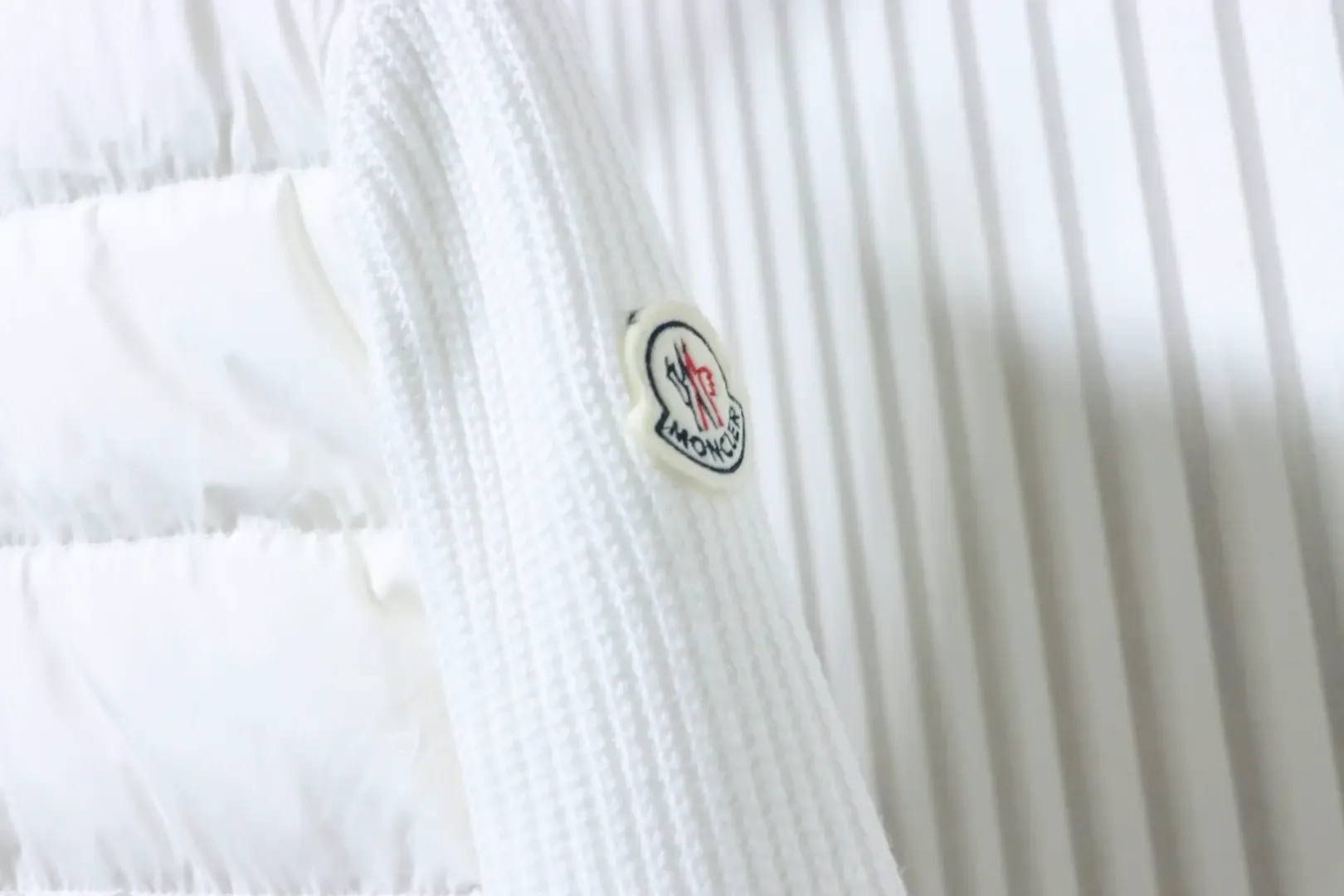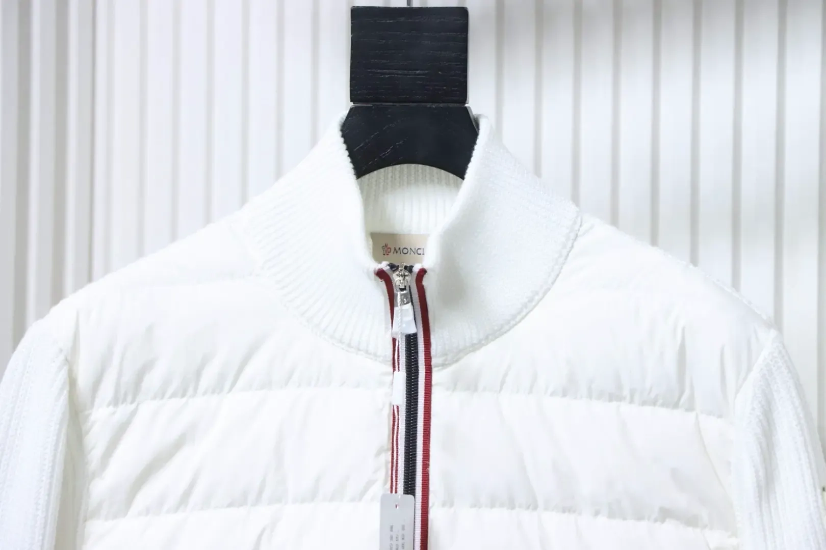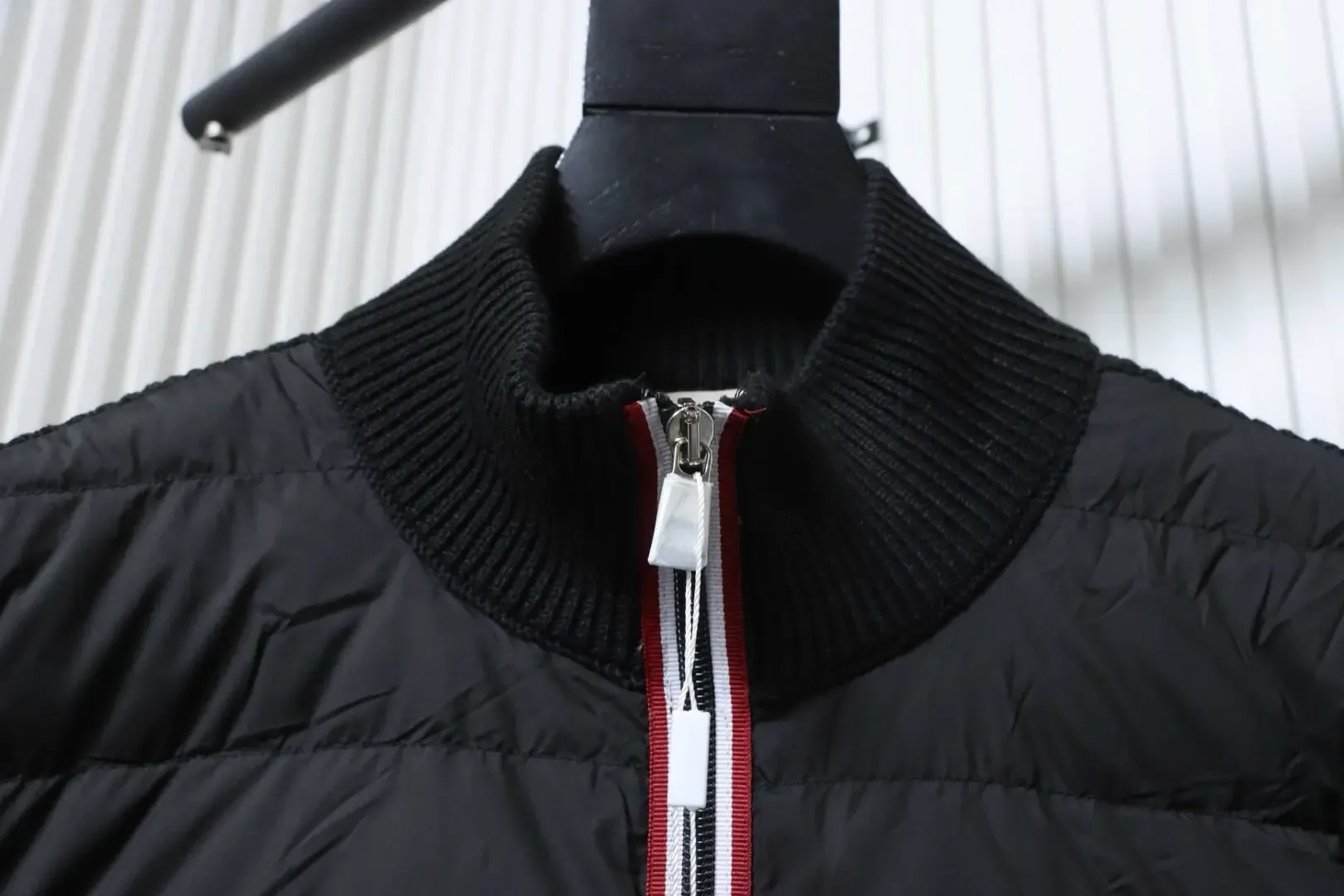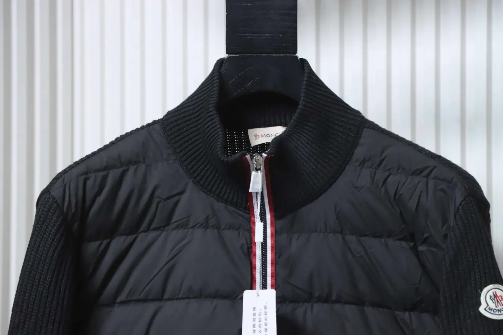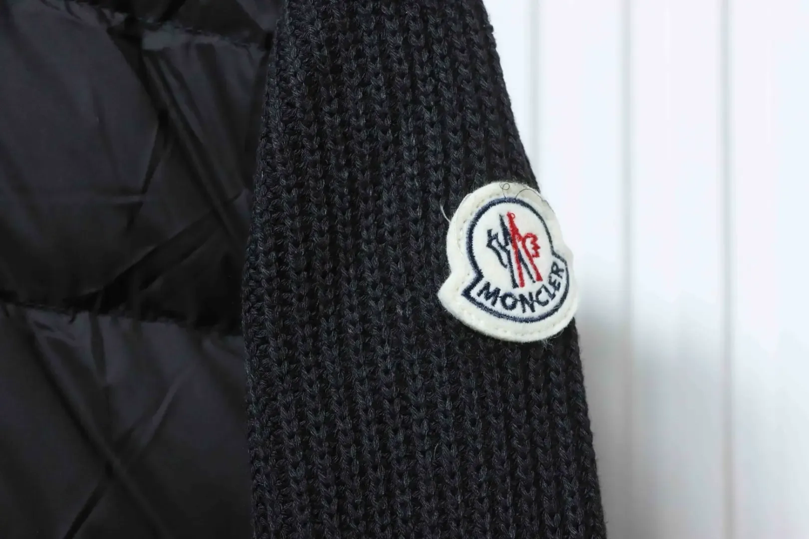 Moncler Down Jacket With Woven Button Placket And Knitted Patchwork Design