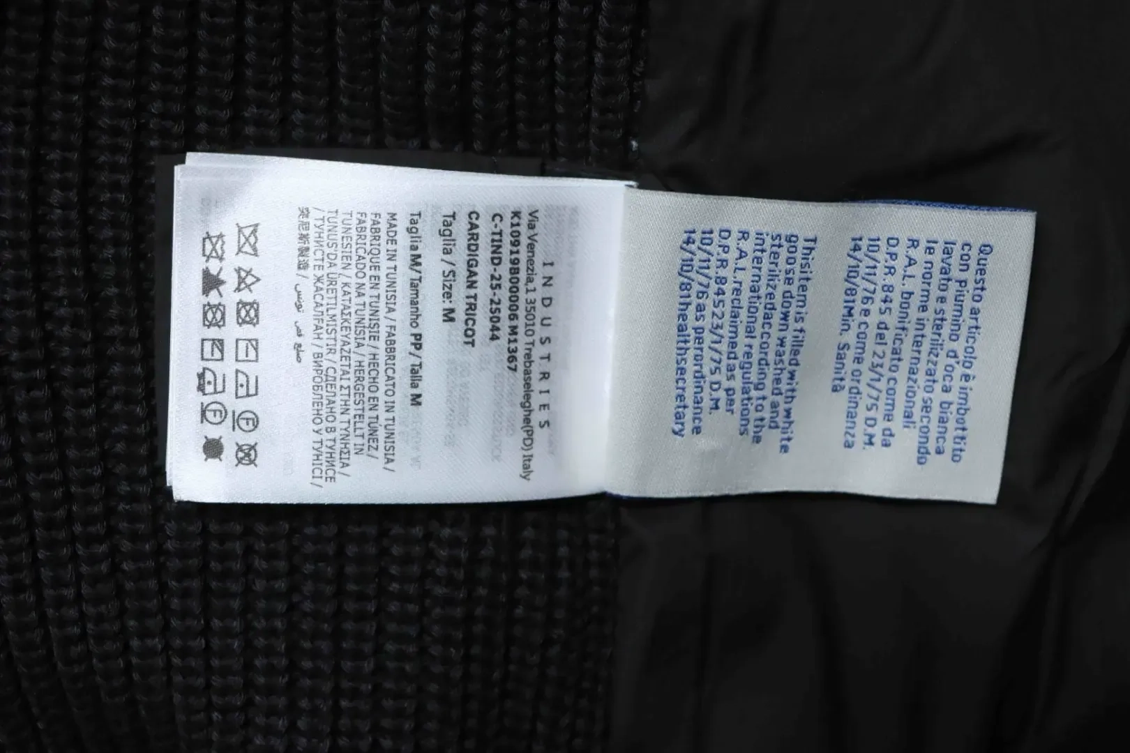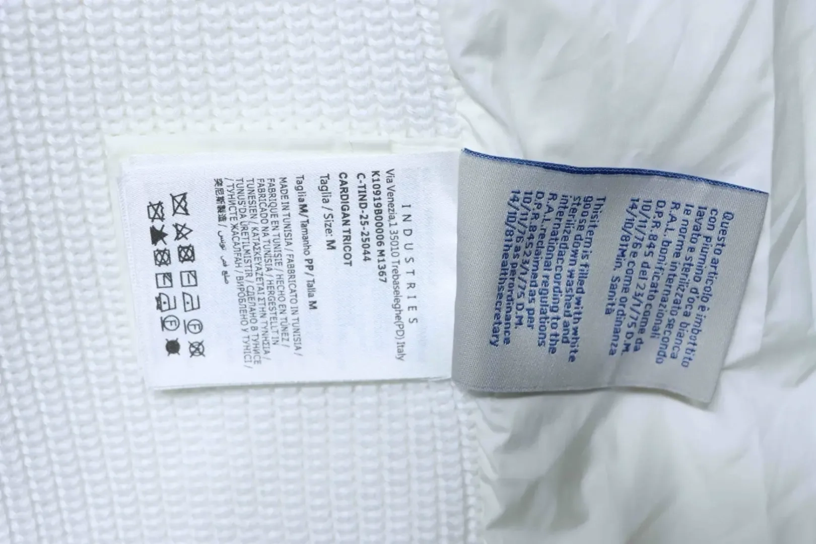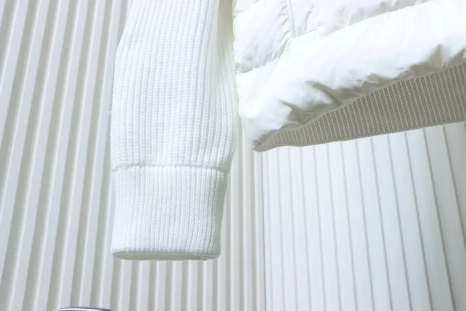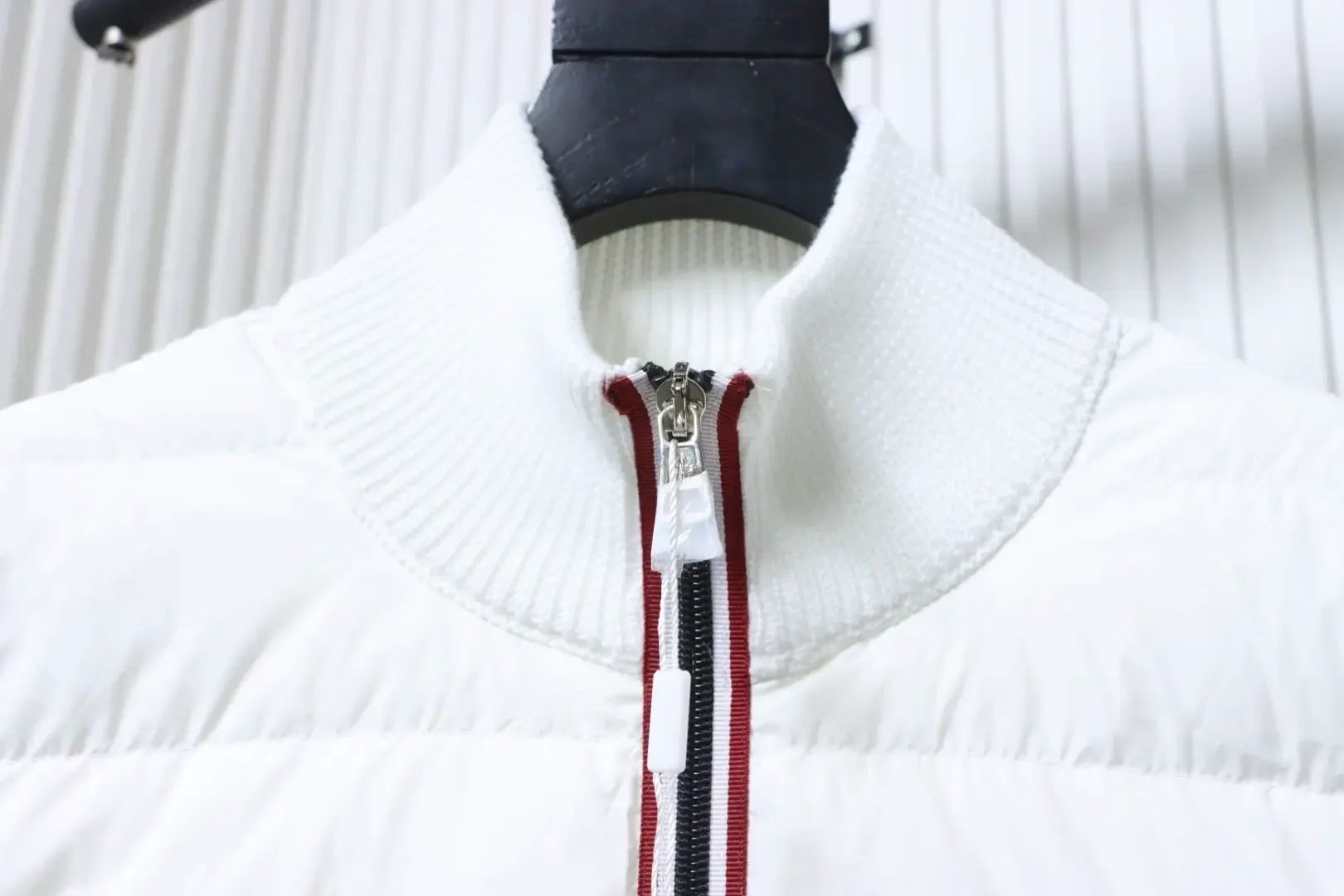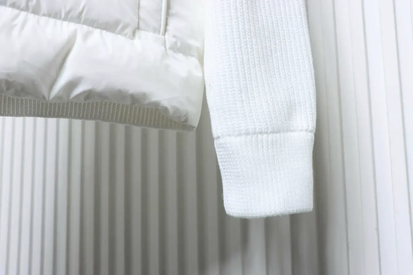 Moncler Down Jacket With Woven Button Placket And Knitted Patchwork Design