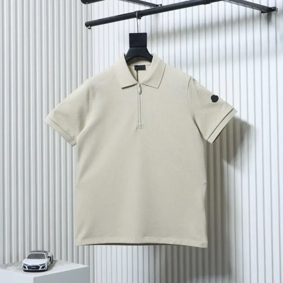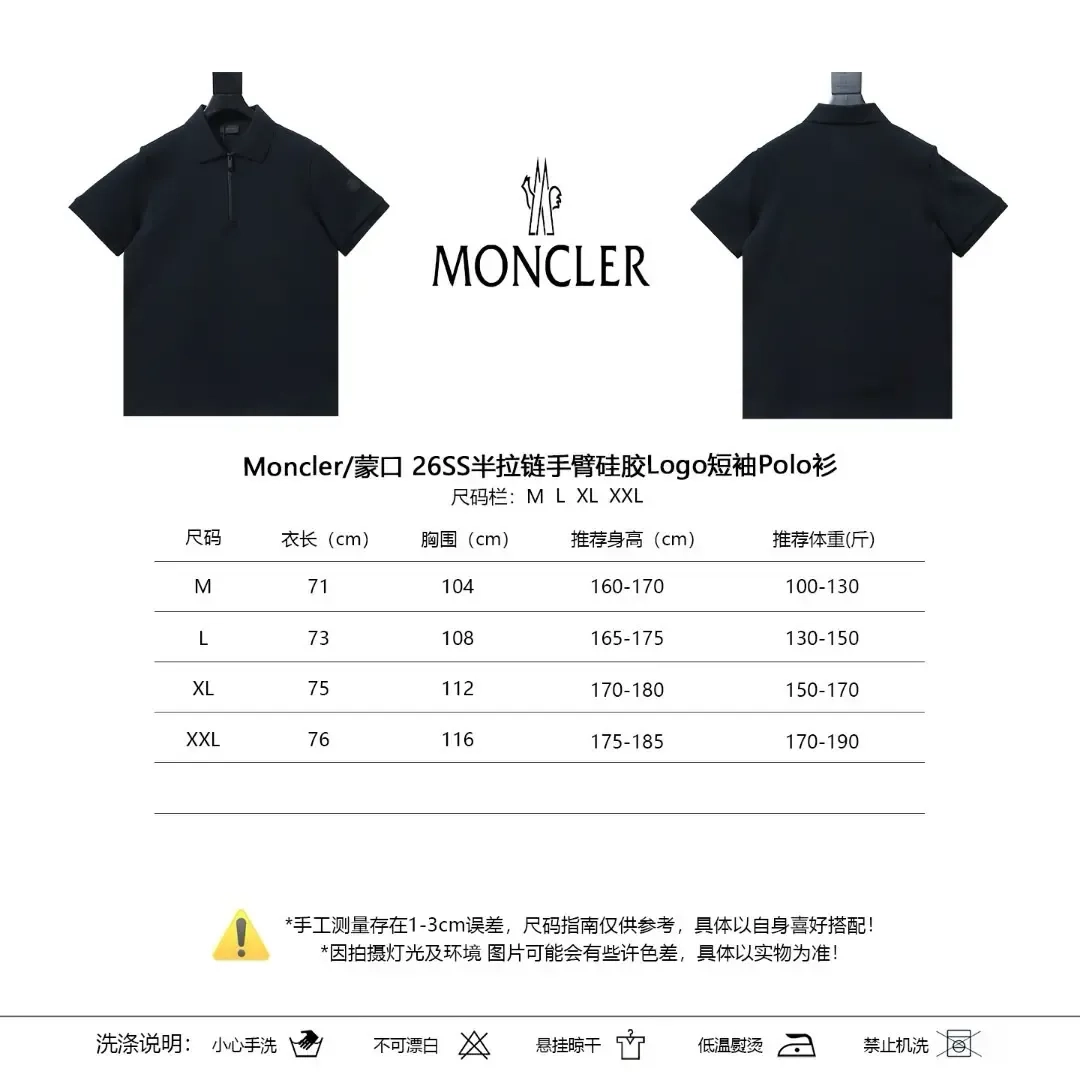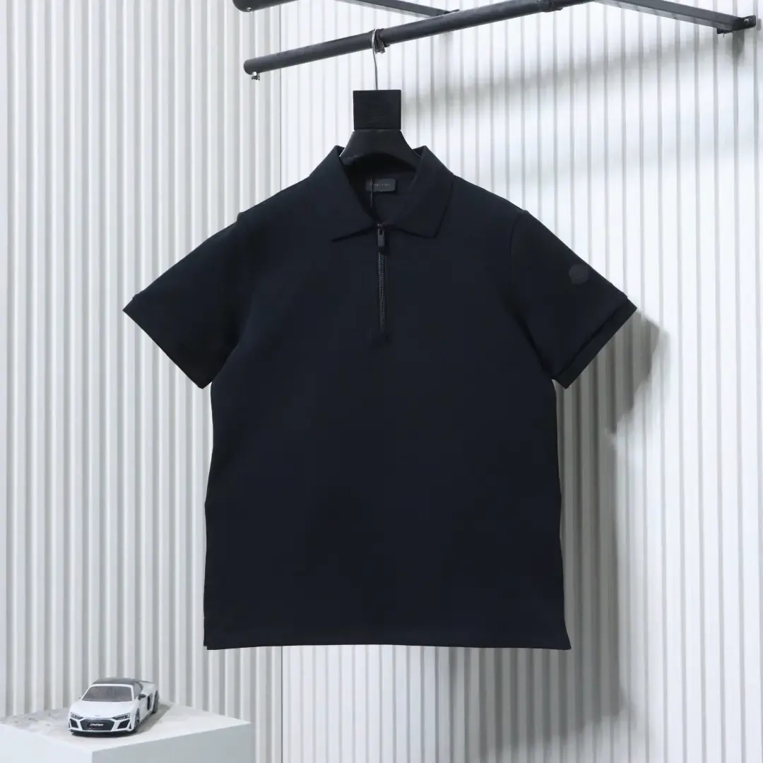 Moncler polo shirt with half zipper and silicone logo, short sleeves, sizes M-XXL