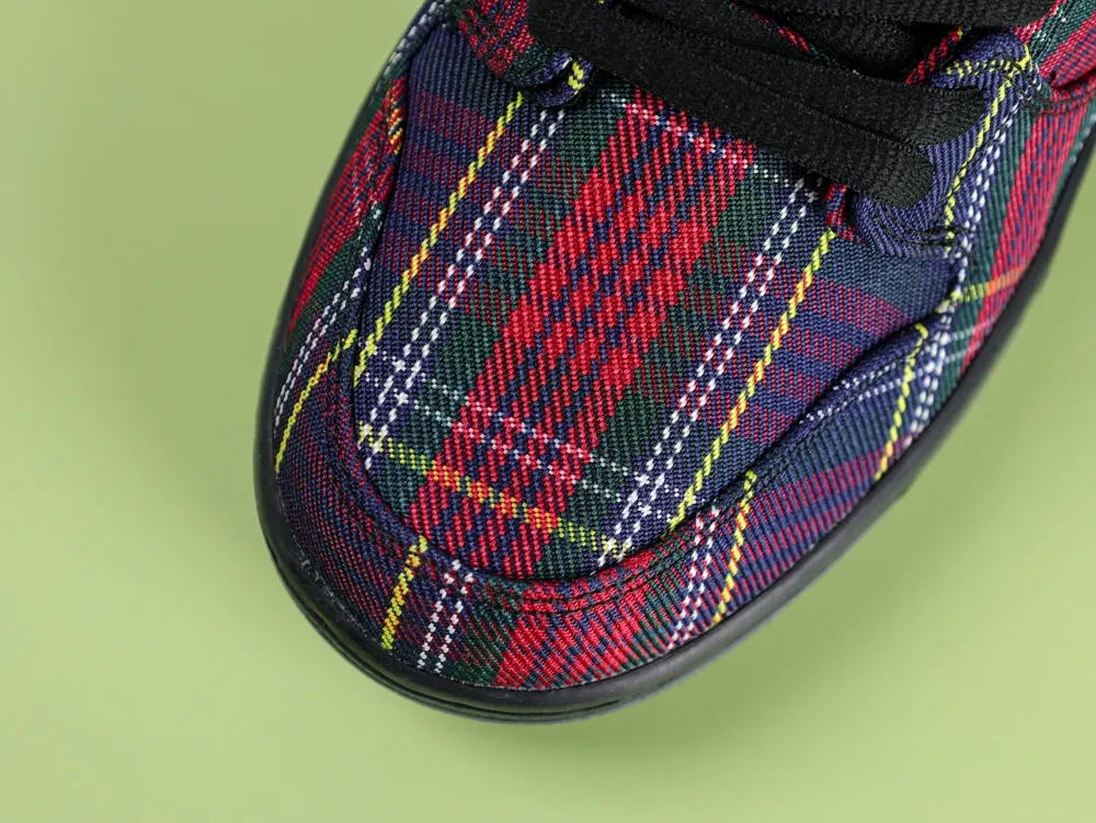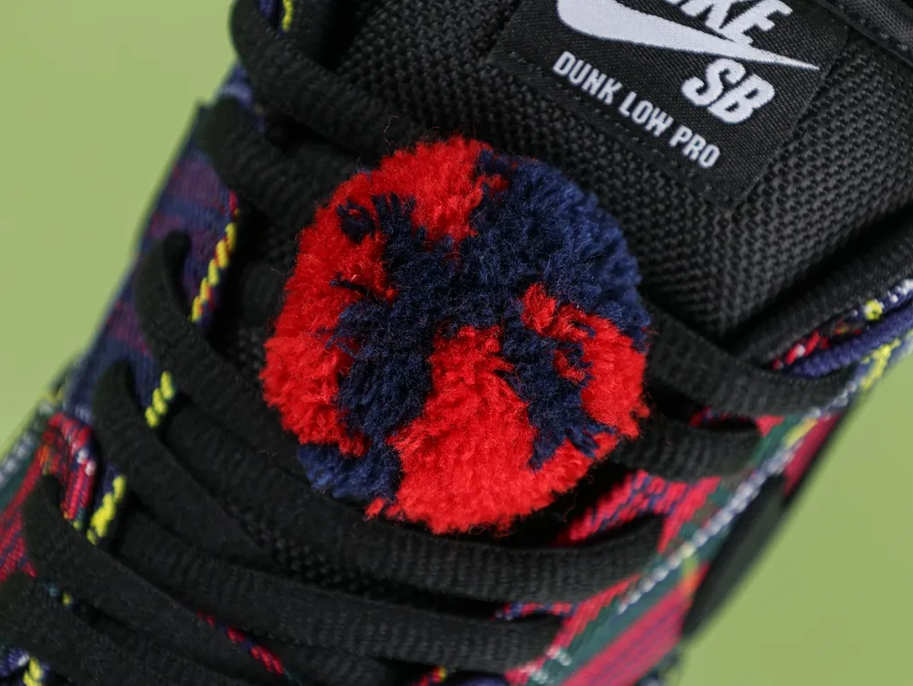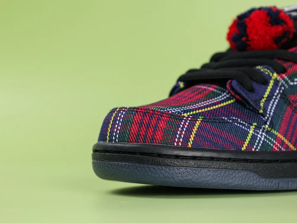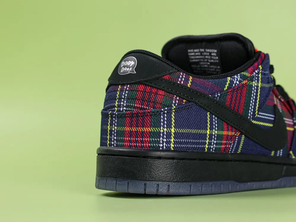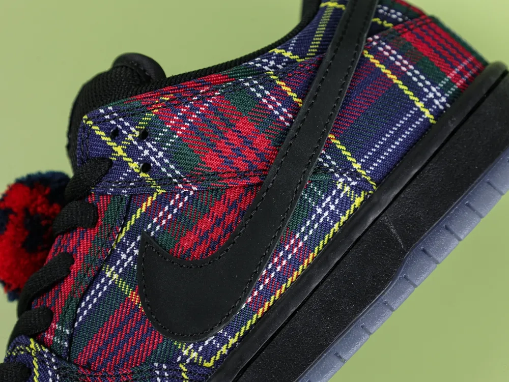 Nike SB has teamed up with legendary Canadian interviewer and geek Nardwuar to create a unique Dunk Low collaboration. The classic red and blue tartan fabric covers the upper and contrasts with cream-colored suede and dark blue leather, creating a blend of streetwear and retro.