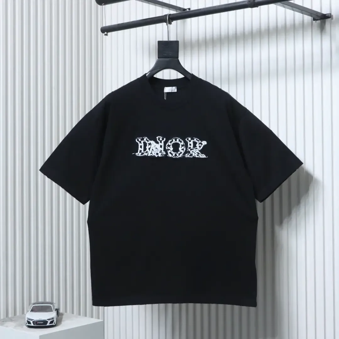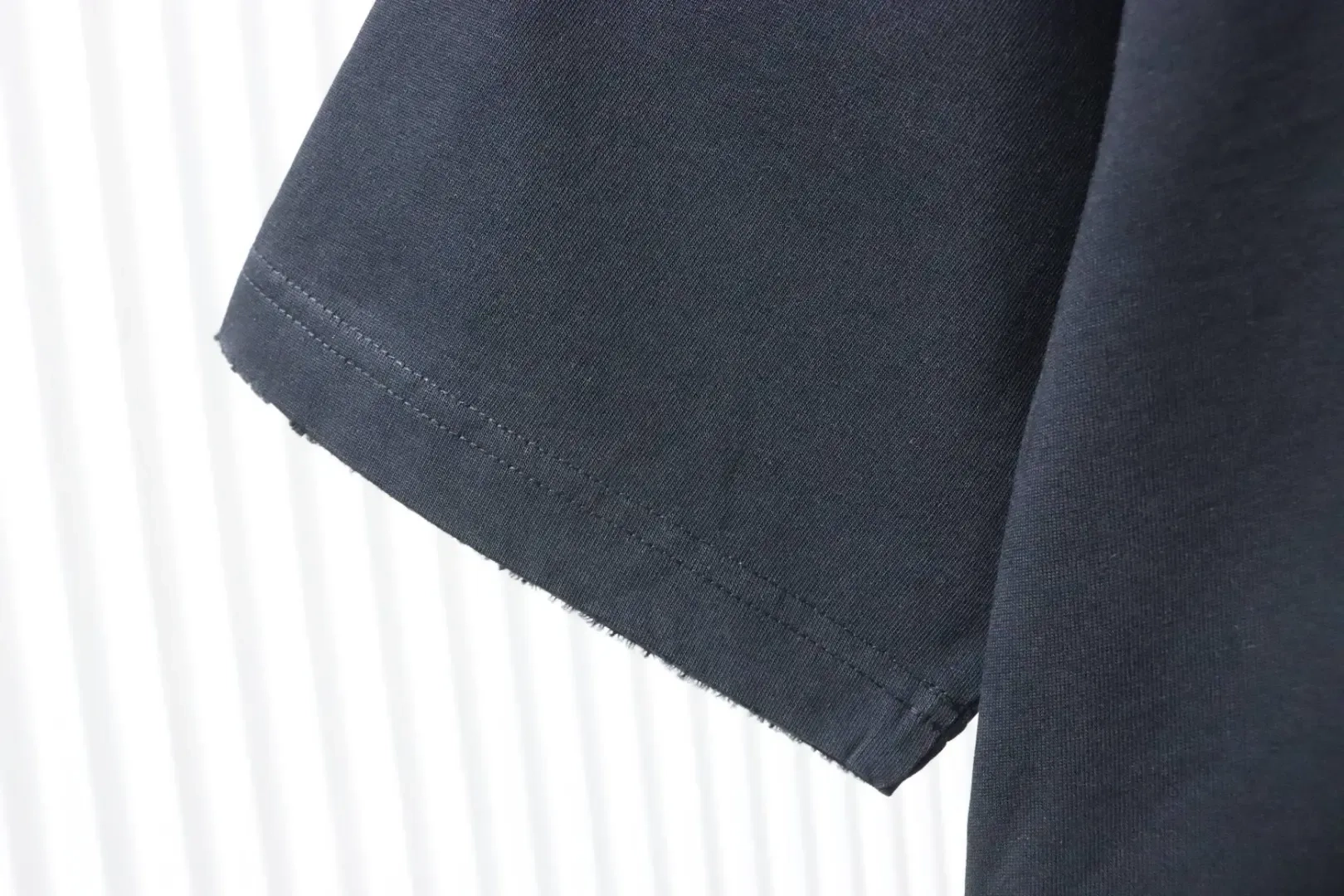 New short-sleeved shirt with a used look and patchwork letter embroidery
