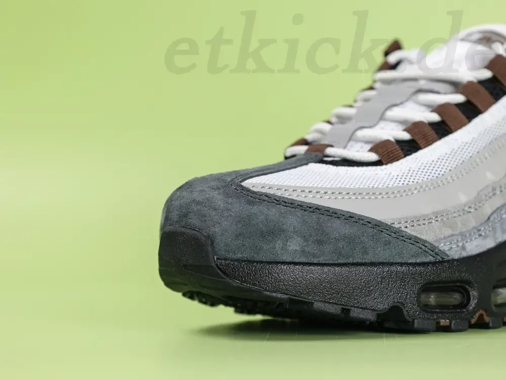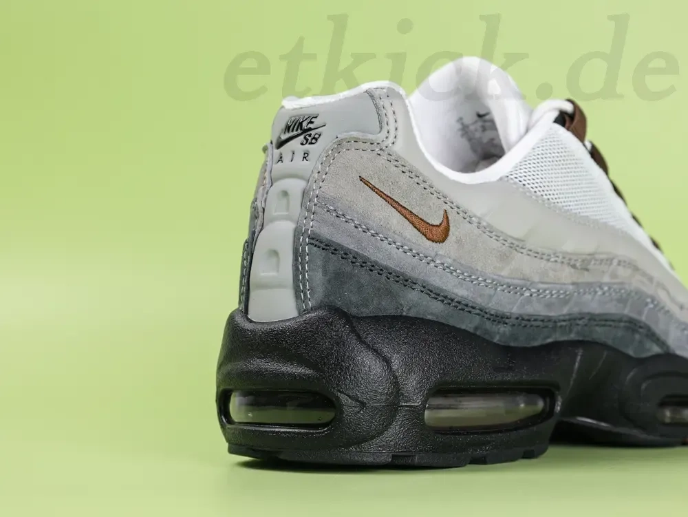The shoe retains the iconic layered structure of the Air Max 95, creating a strong 3D effect through multiple layers of mesh and leather. The soft gray nuances of the 110 Grey give the shoe depth and dimension.
