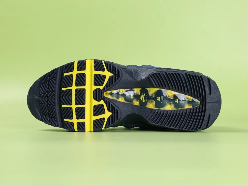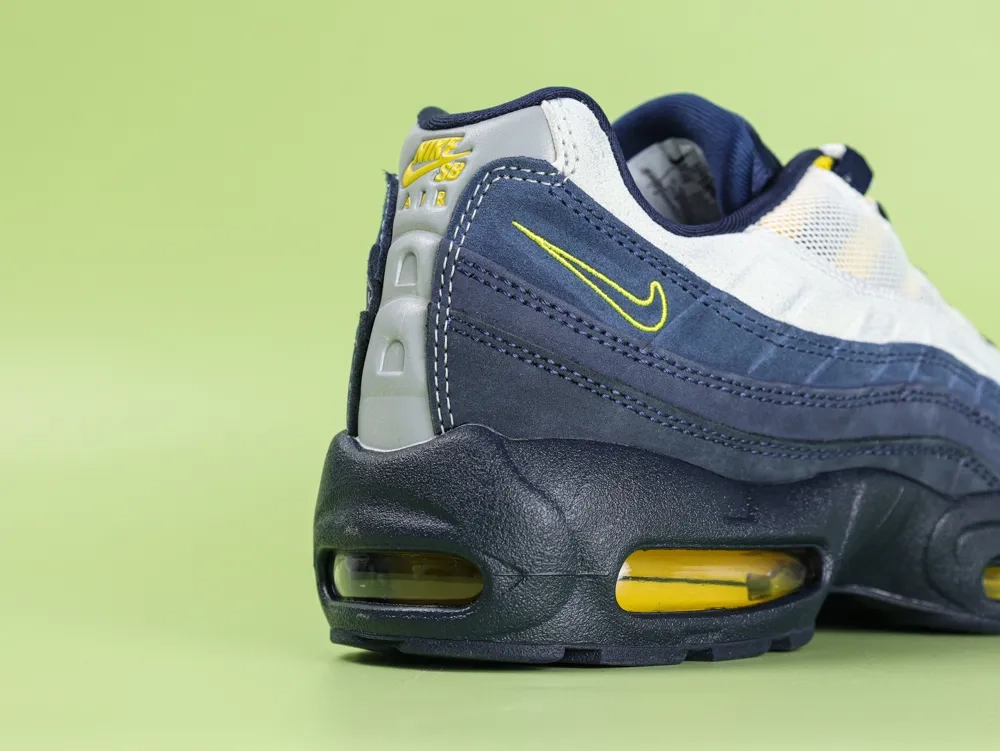 The Nike SB Air Max 95 x Eric Koston combines skateboarding culture with classic running shoe design and emphasizes its strong personality through the striking color combination of deep obsidian blue and vibrant speed yellow. Koston’s professional perspective gives this shoe a bolder and more expressive skateboarding aesthetic.