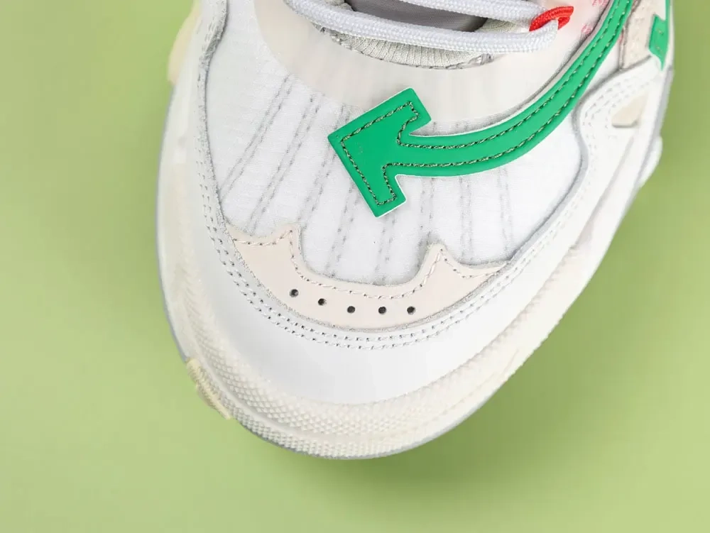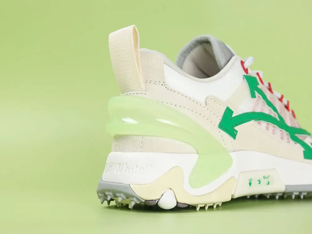 The Off-White ODSY-2000 “White Green” embodies the brand’s signature deconstructed aesthetic, perfectly blending industrial style with modern trends. The shoe features striking, avant-garde lines and a multi-layered patchwork structure that creates a dynamic visual effect and lends an urban-futuristic look.