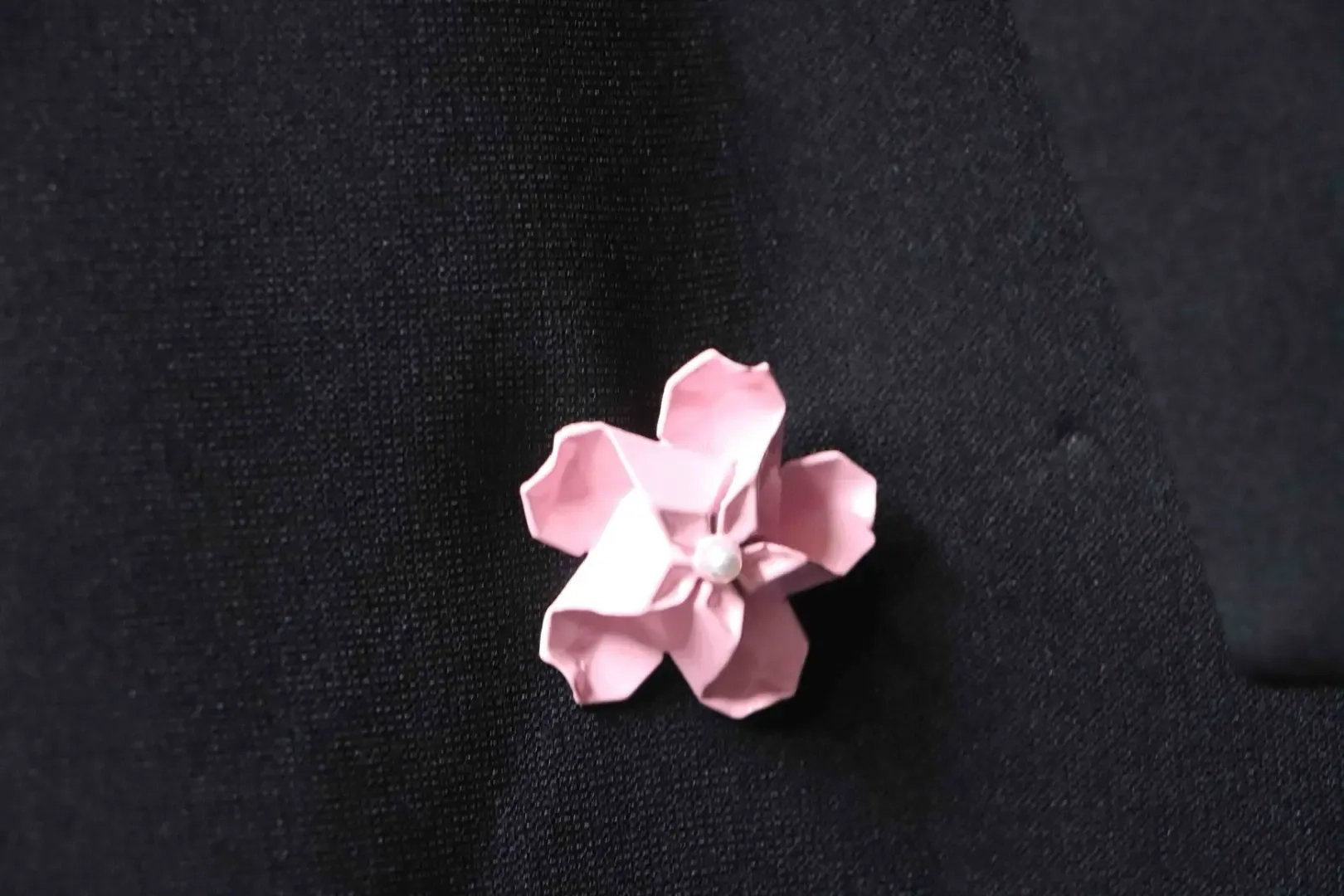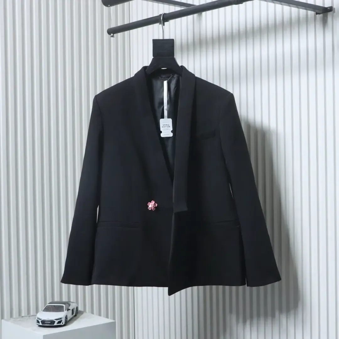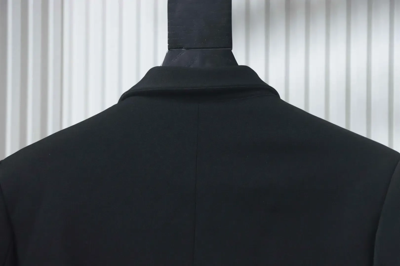 - The neckline is uniquely cut, and the shoulder pads are meticulously detailed.