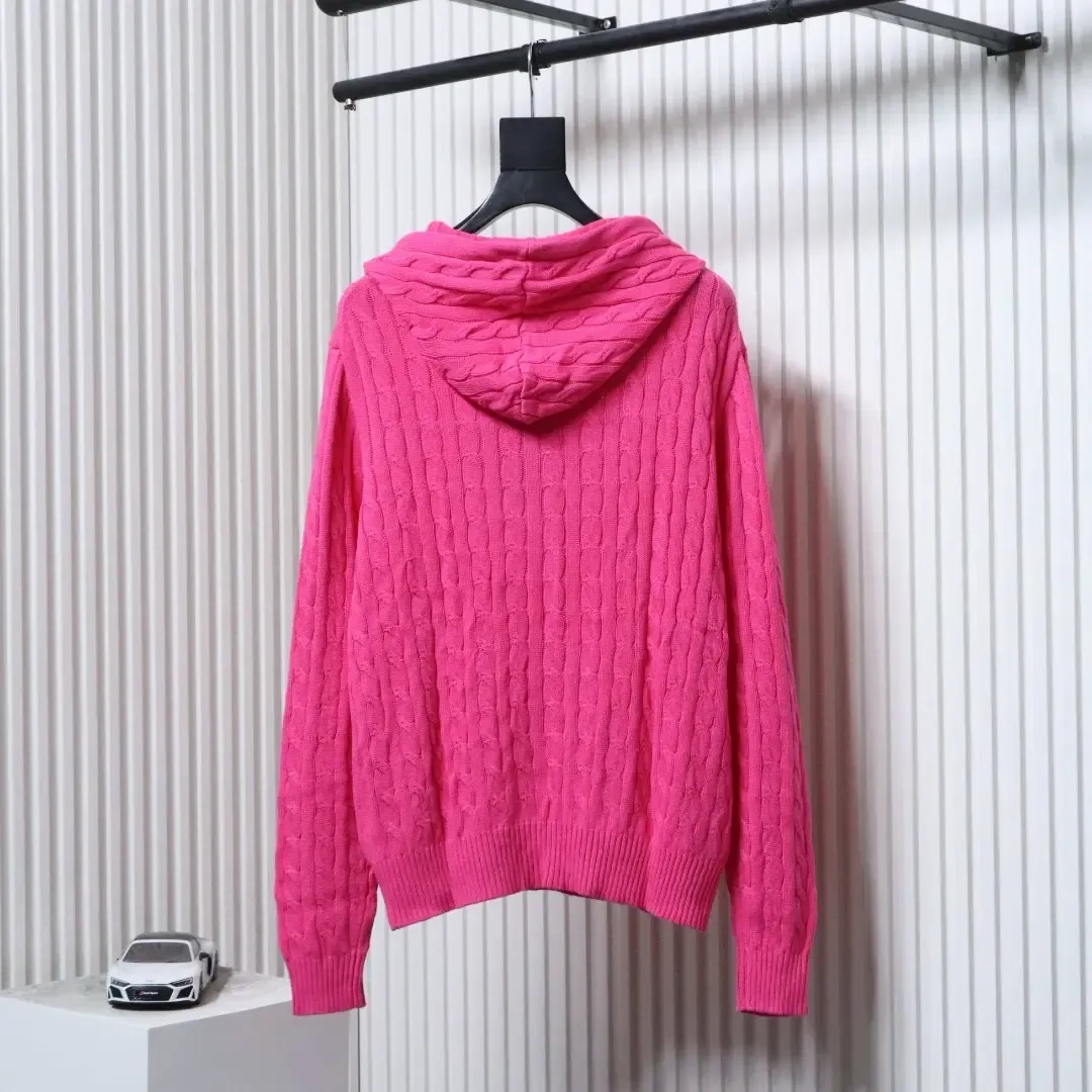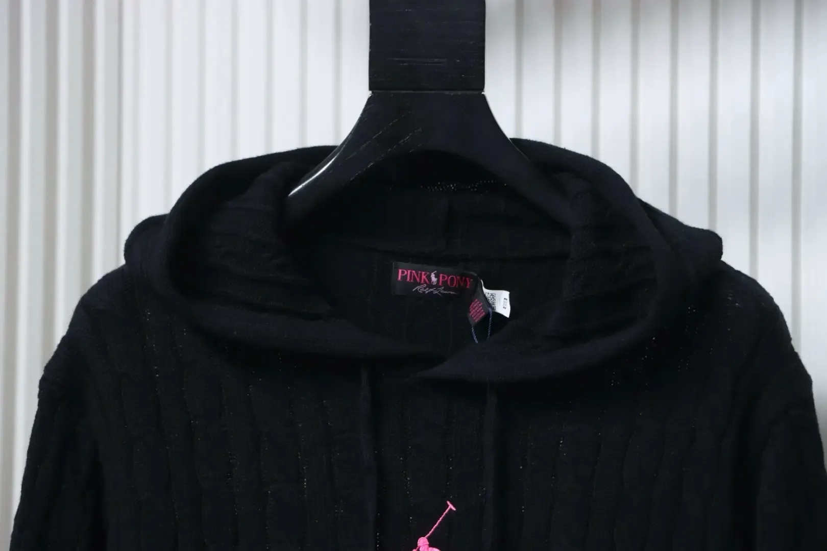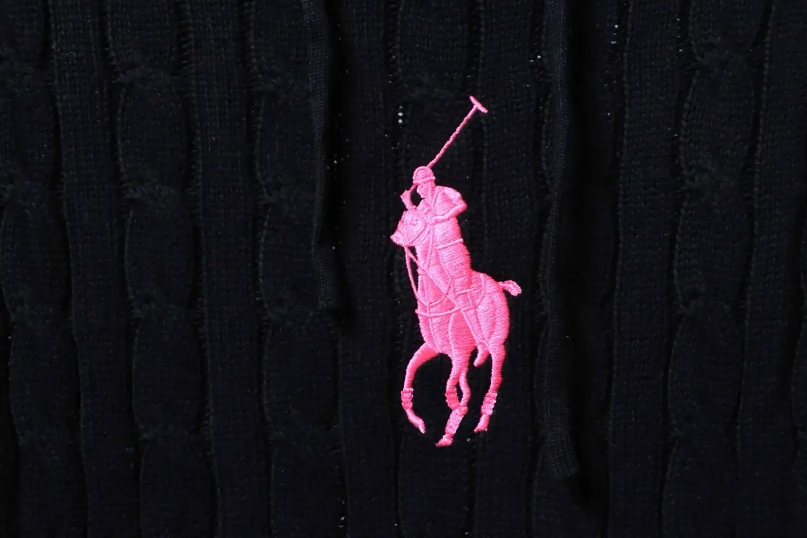 - The anthracite base color is adorned with pink embroidery that combines the iconic horse logo with classic cable knit artistry. The hooded design offers the perfect balance between durability and softness. The precise embroidery, crafted on imported machines, ensures fine and even lines.