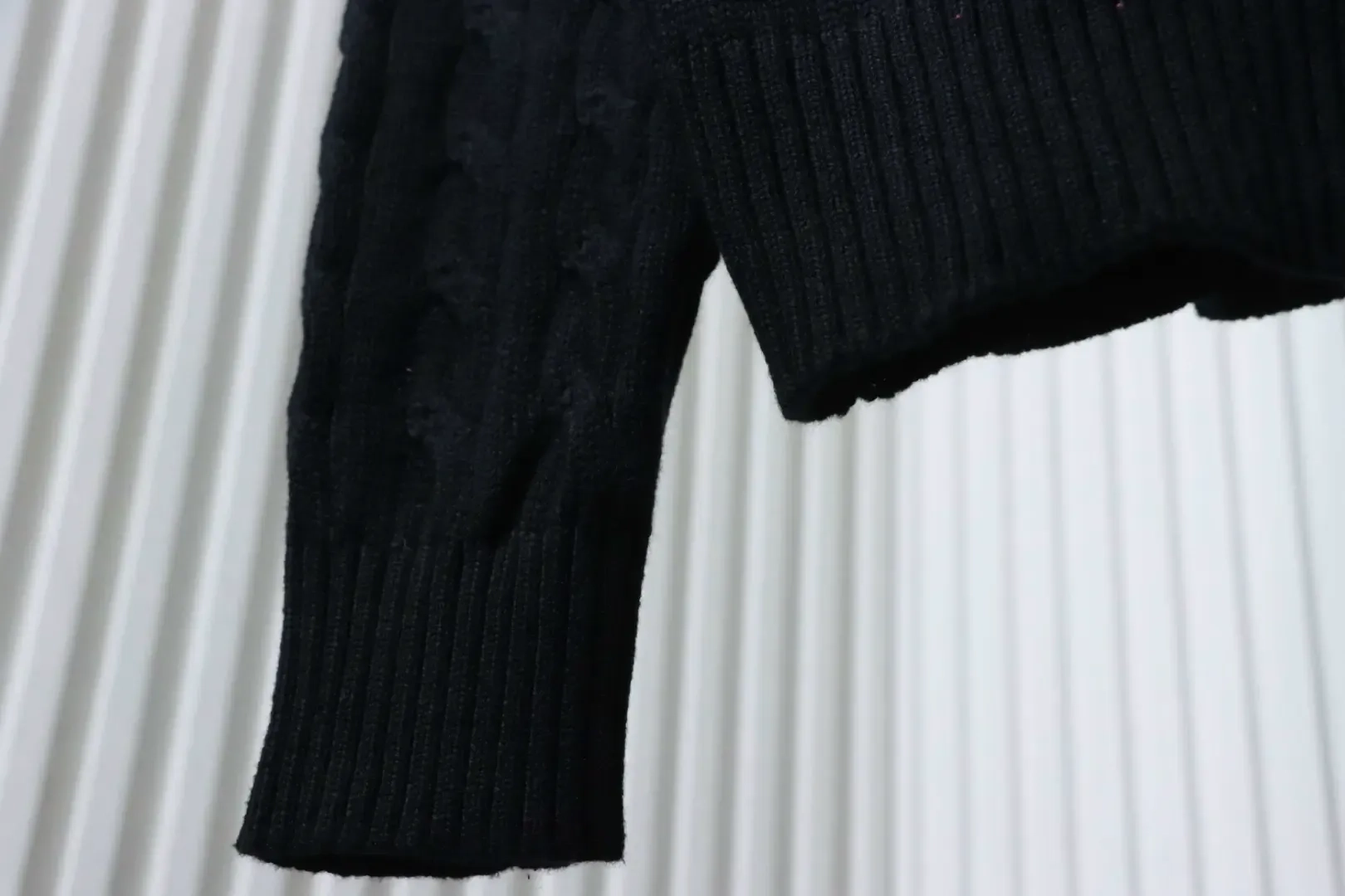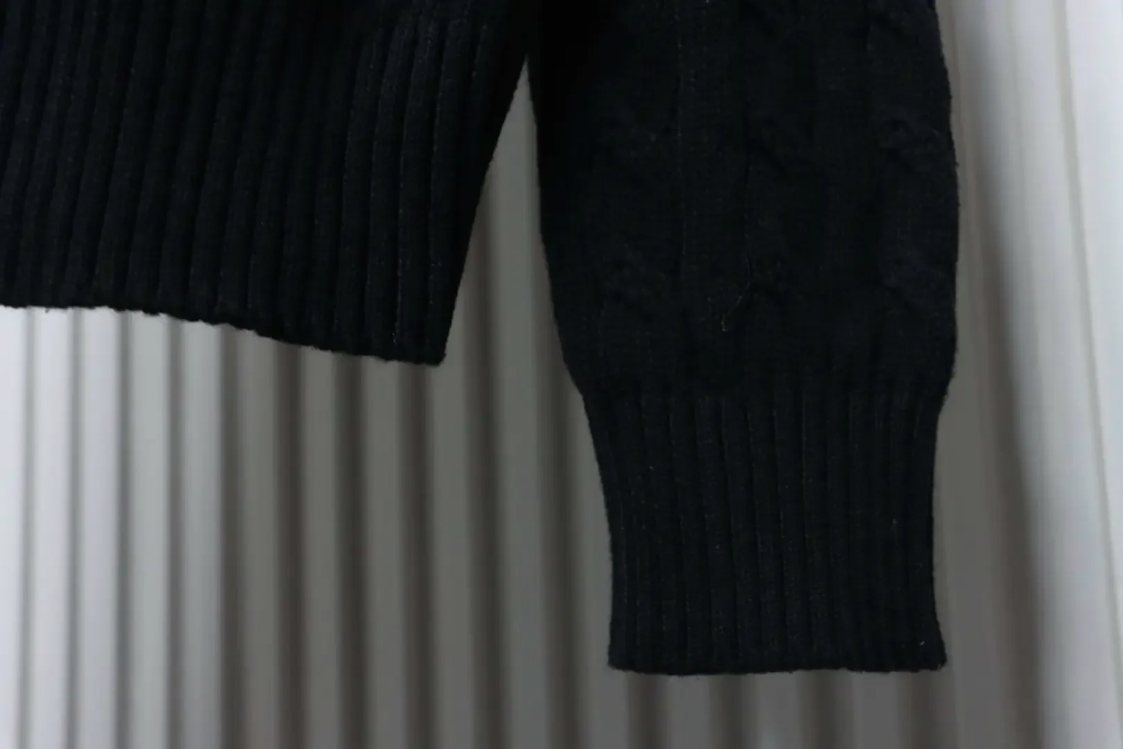 - The three-dimensional cable knit pattern with its hand-like cross-stitching creates a clean and intricate texture.