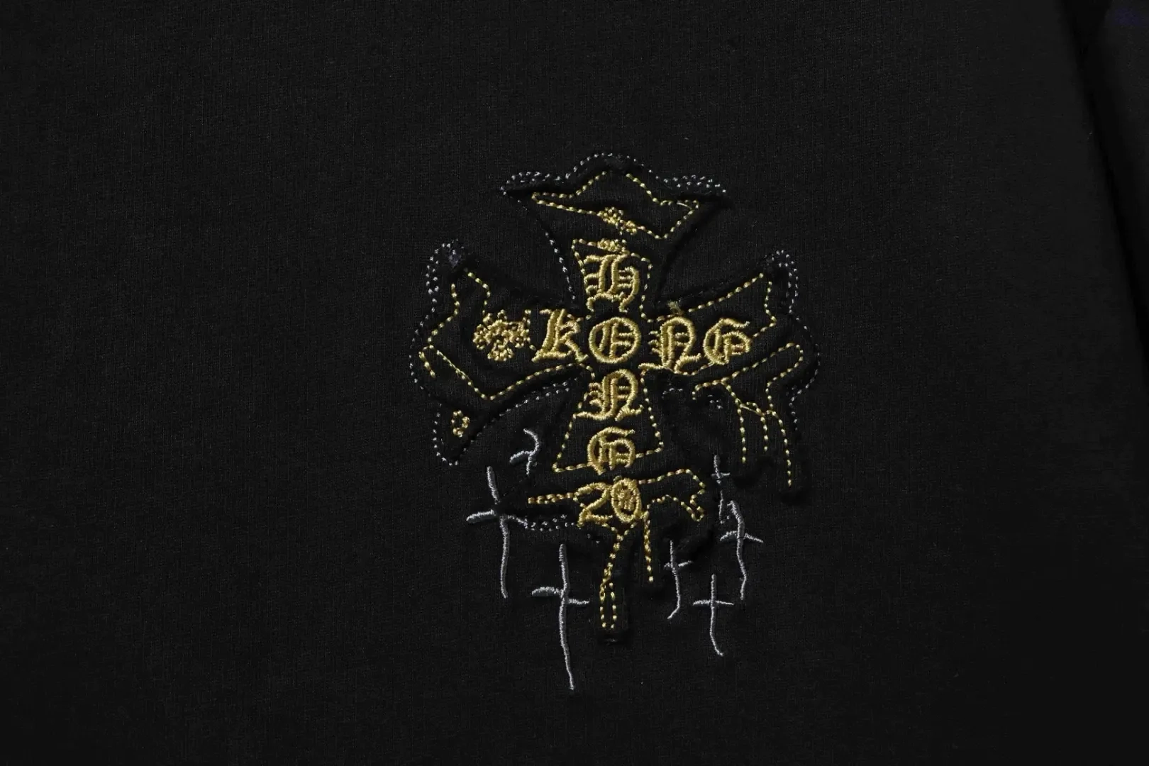 Robust, short-sleeved shirt with Sanskrit cross embroidery