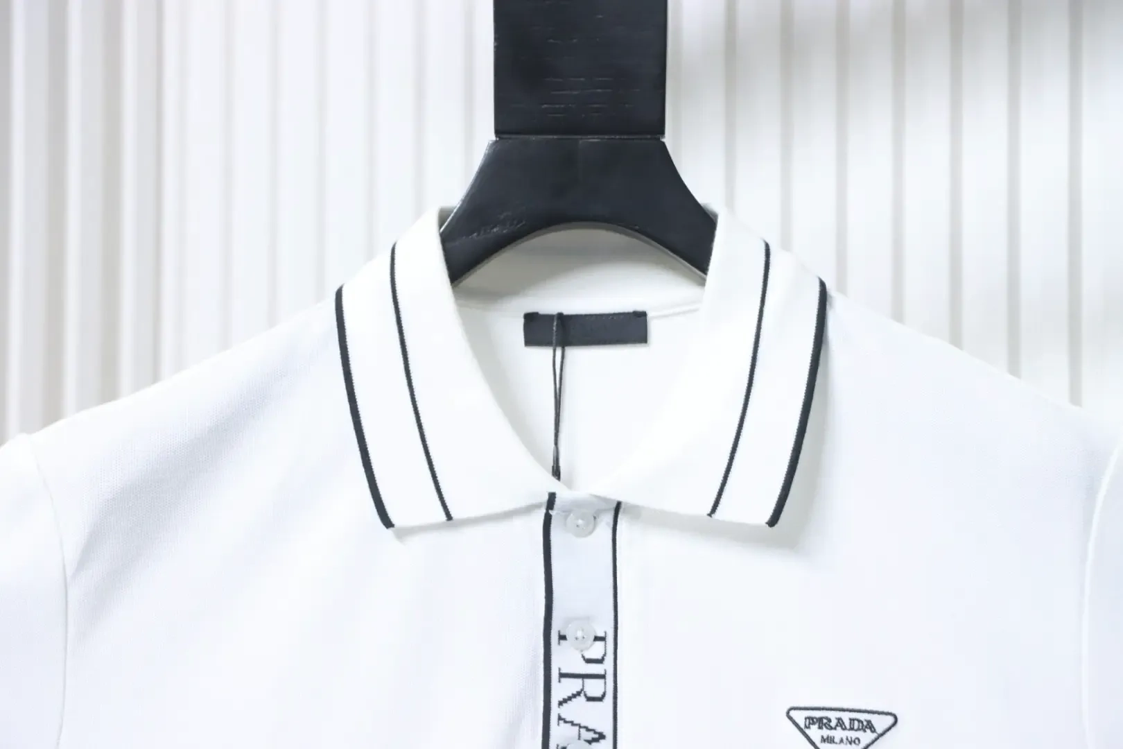 • The button placket features a ribbed logo design, and the classic triangular Milanese logo embroidery makes this garment an excellent choice.