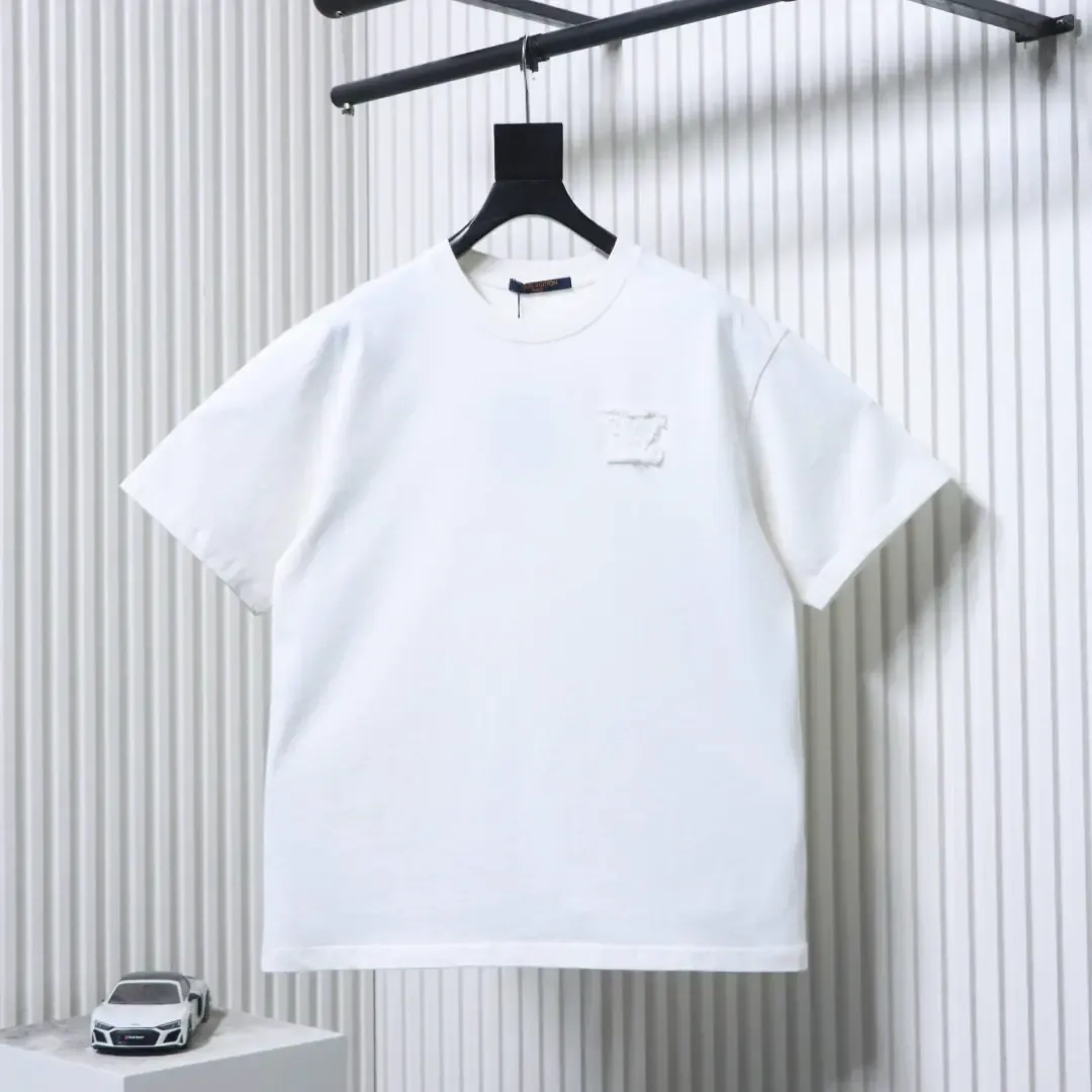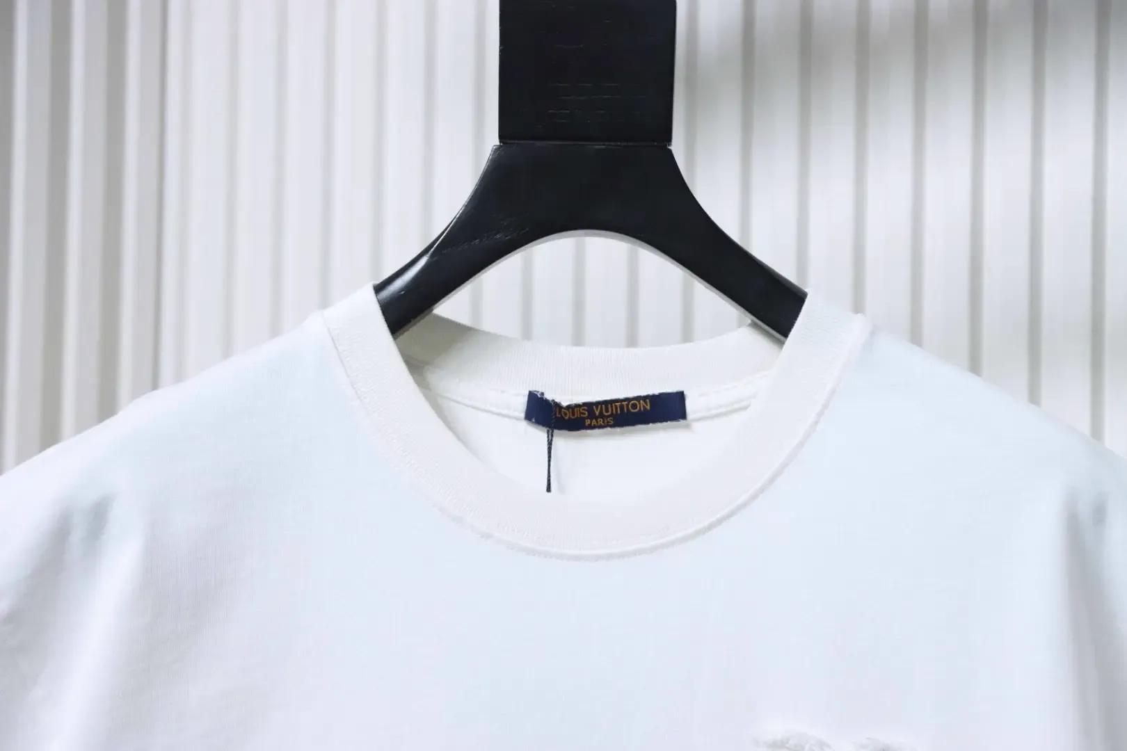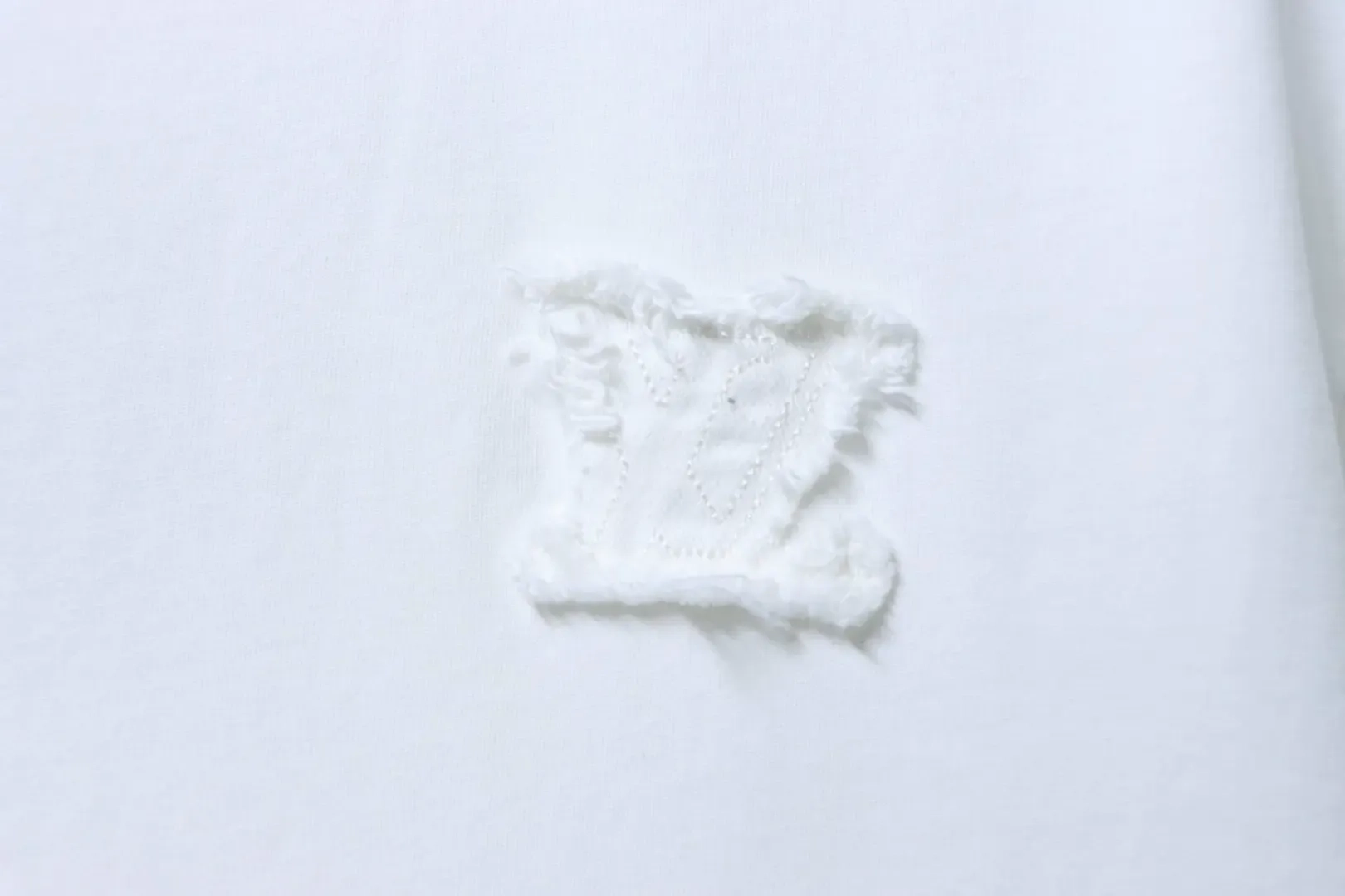 Short-sleeved T-shirt with a triangular metal logo on the collar