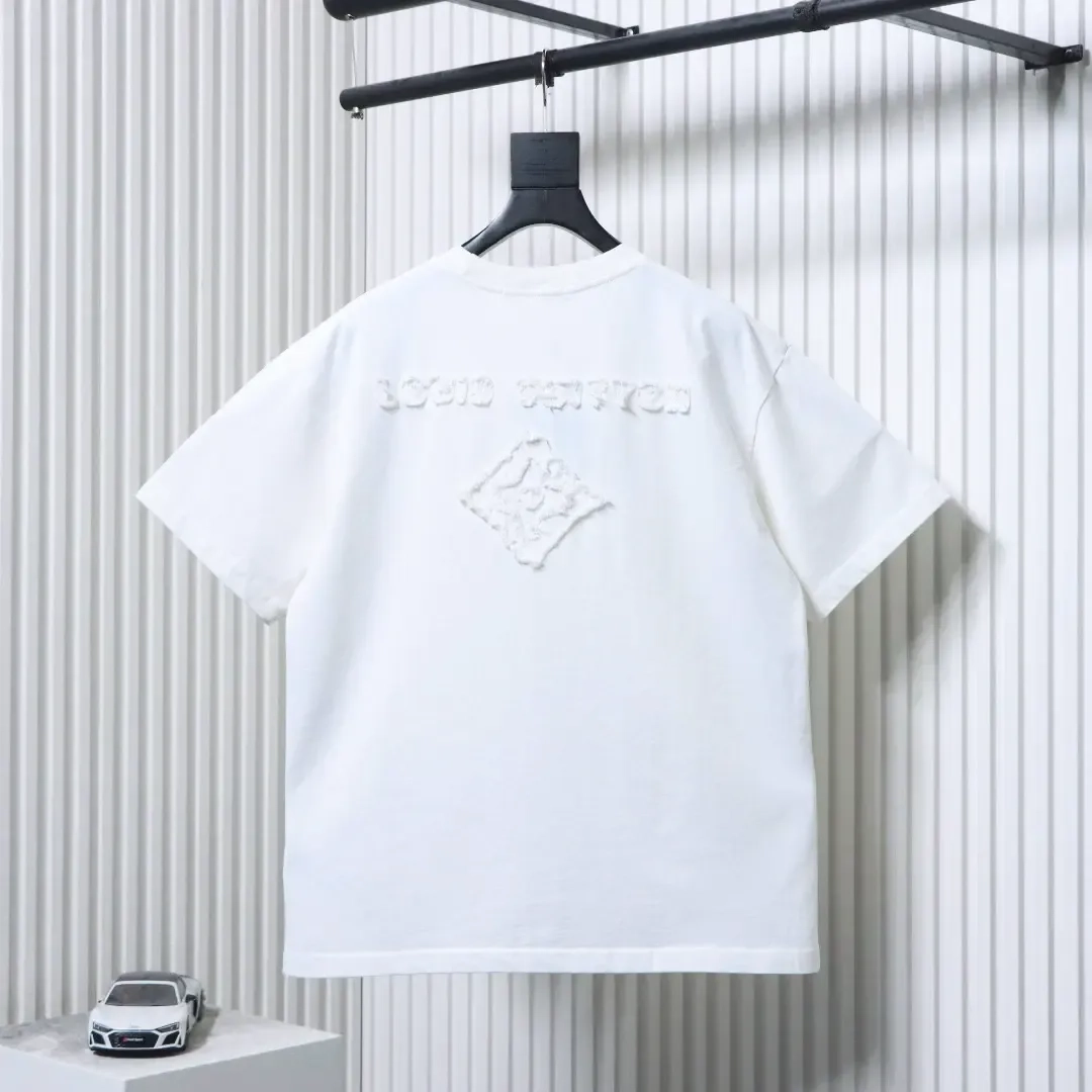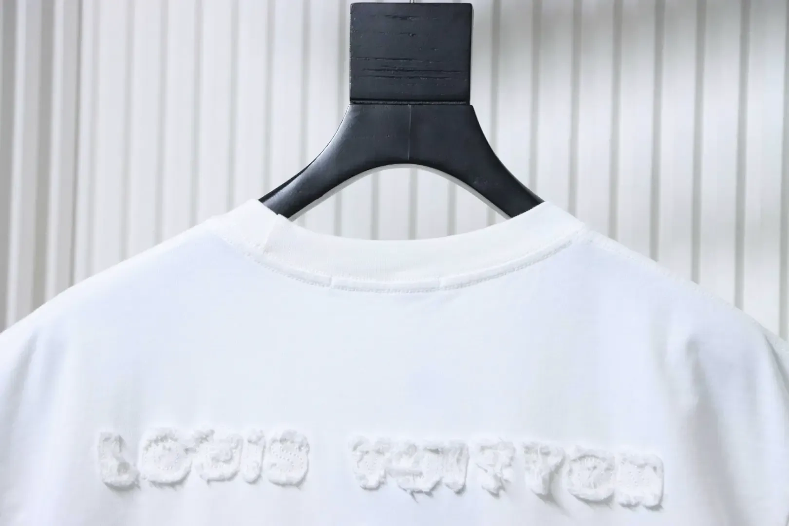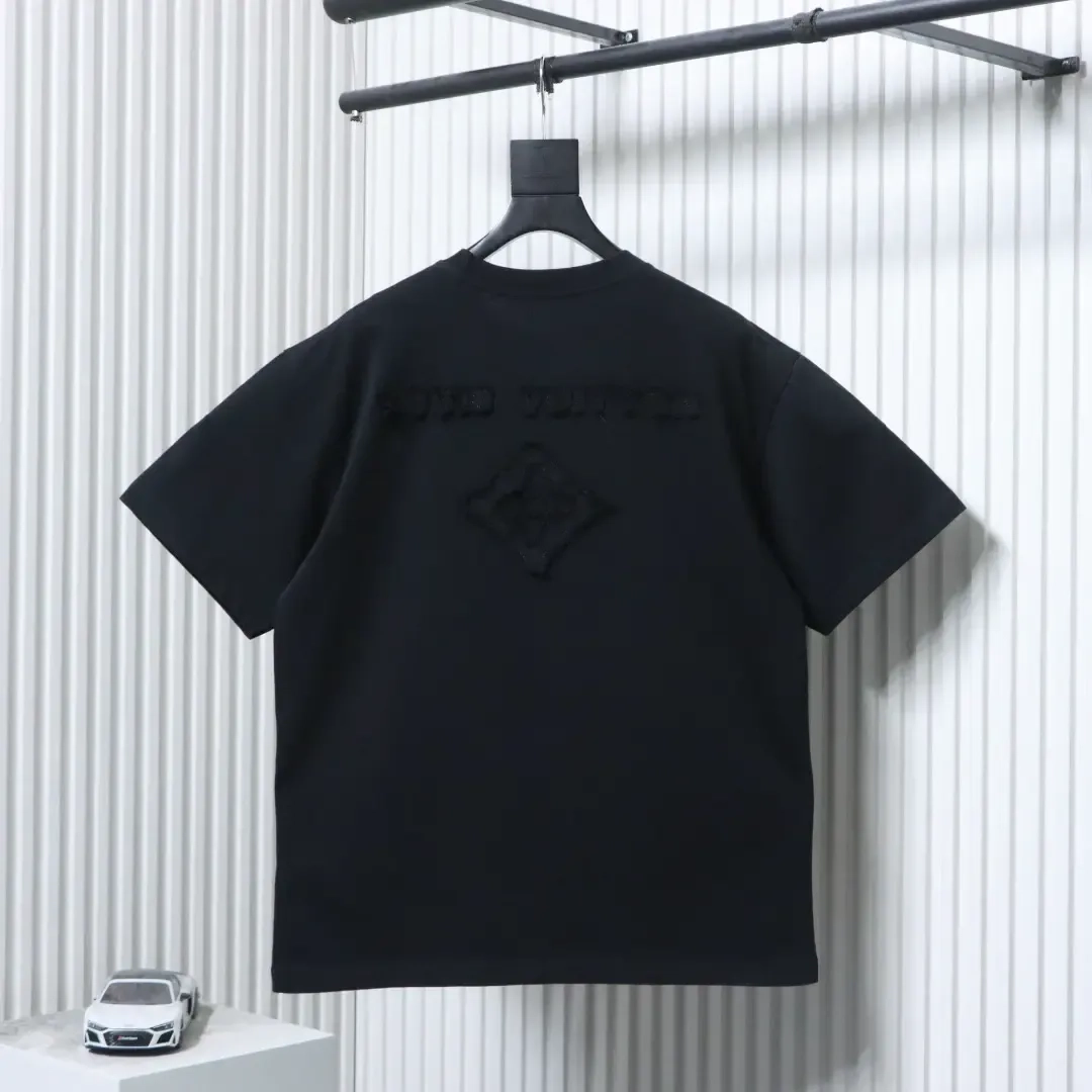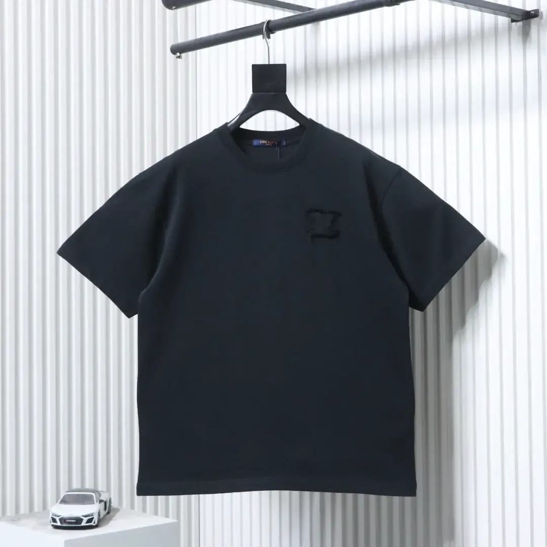 Short-sleeved T-shirt with a triangular metal logo on the collar