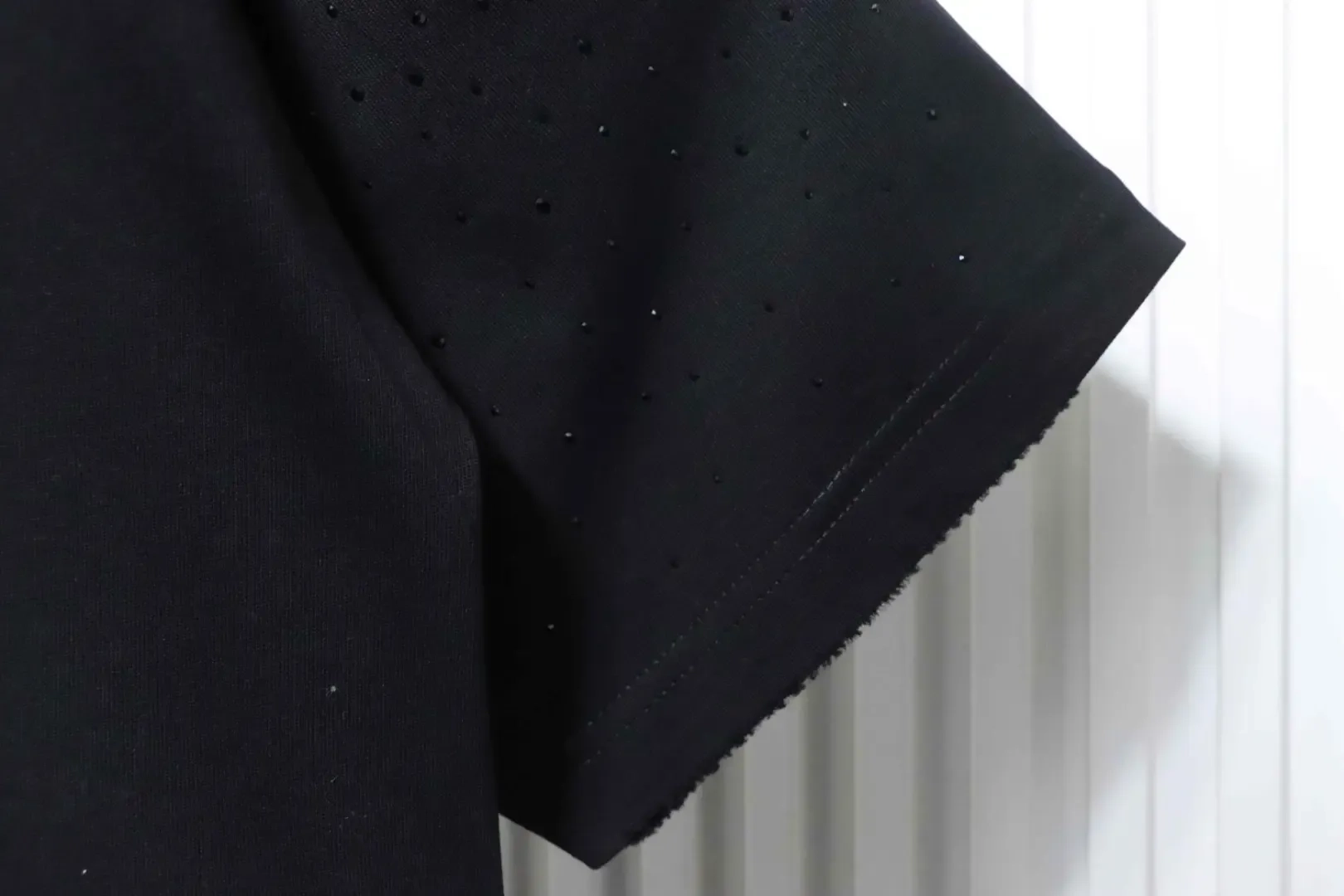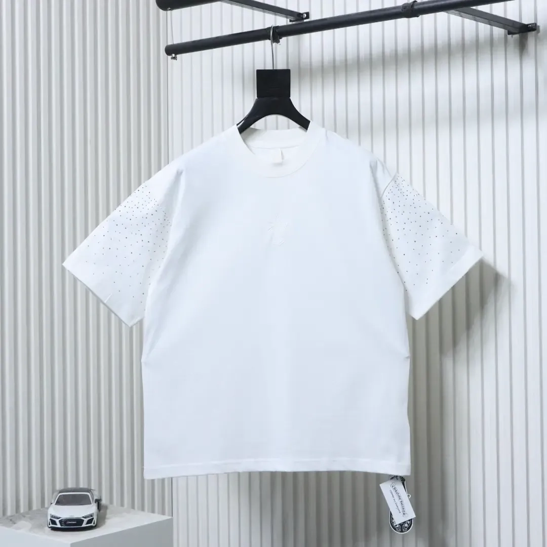 Short-sleeved shirt with Sanskrit rhinestones