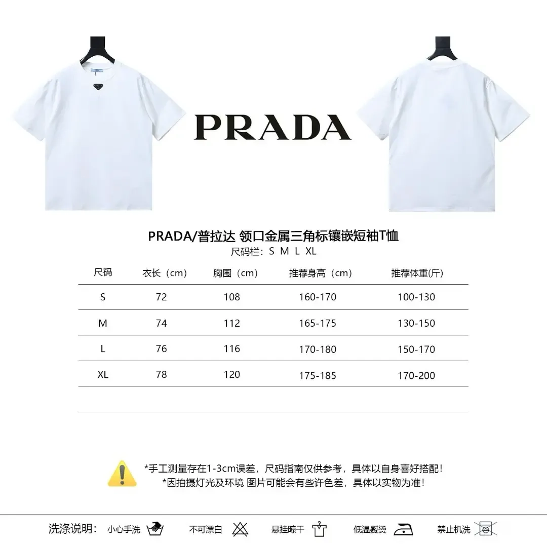 -50%- P140 PRADA Kurzarm-T-Shirt mit Metall-Dreieck-Logo am Halsausschnitt