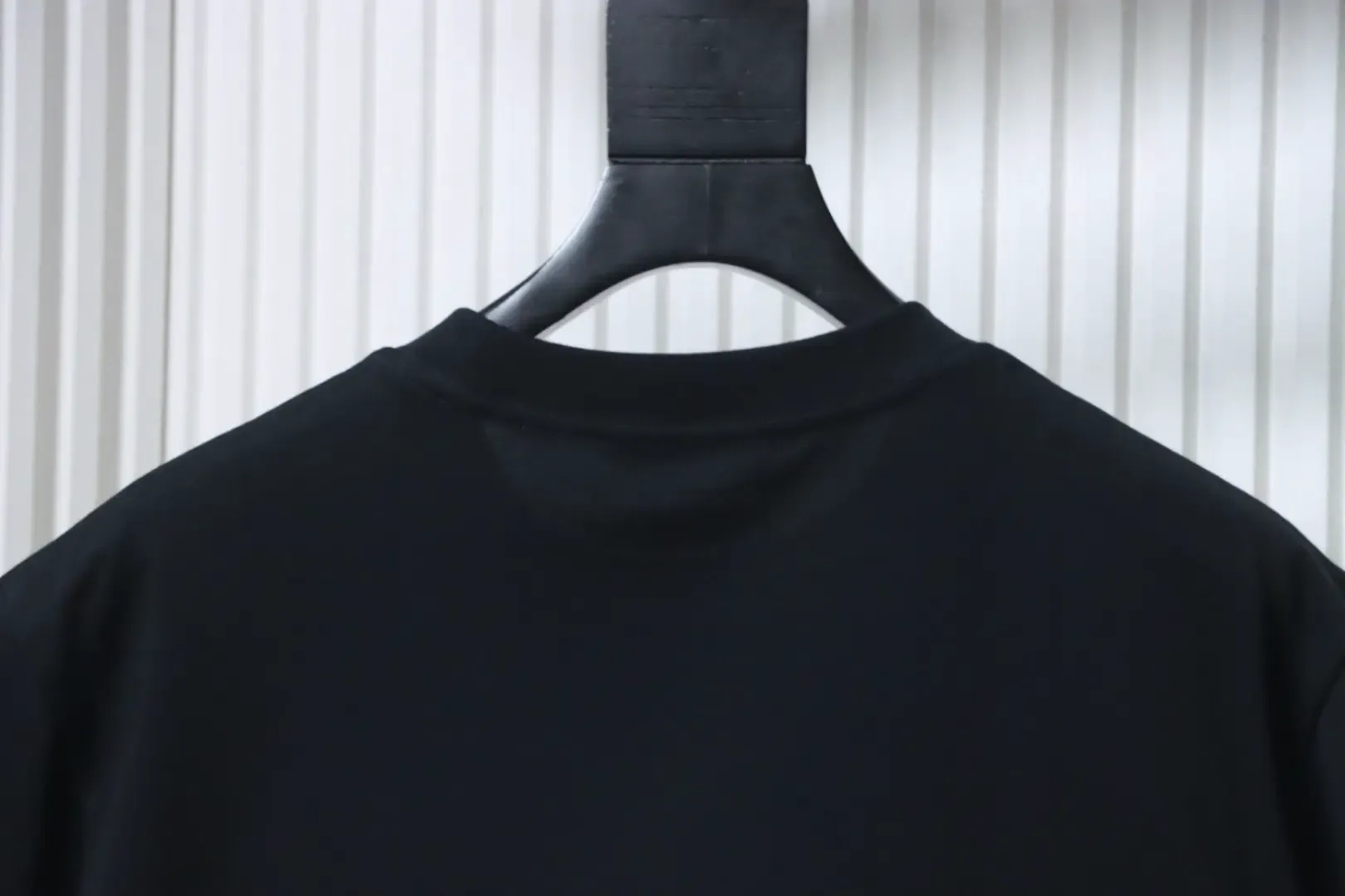 Short-sleeved T-shirt with a triangular metal logo on the collar