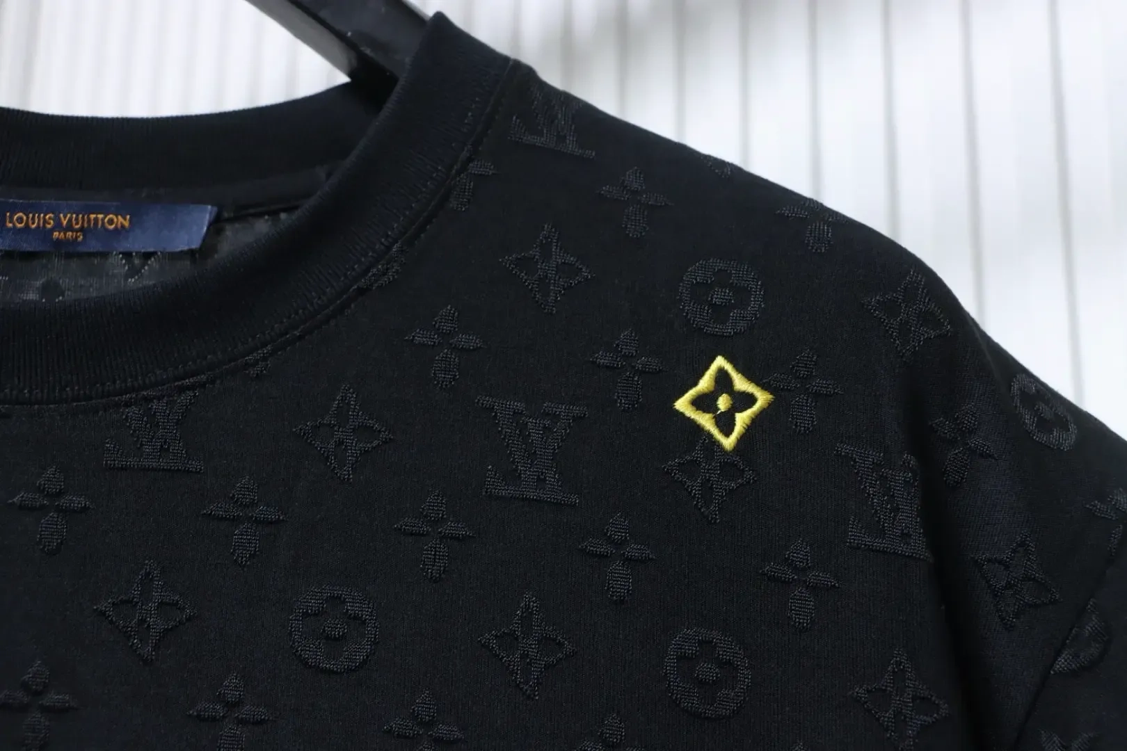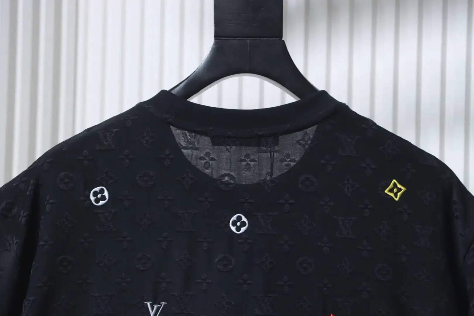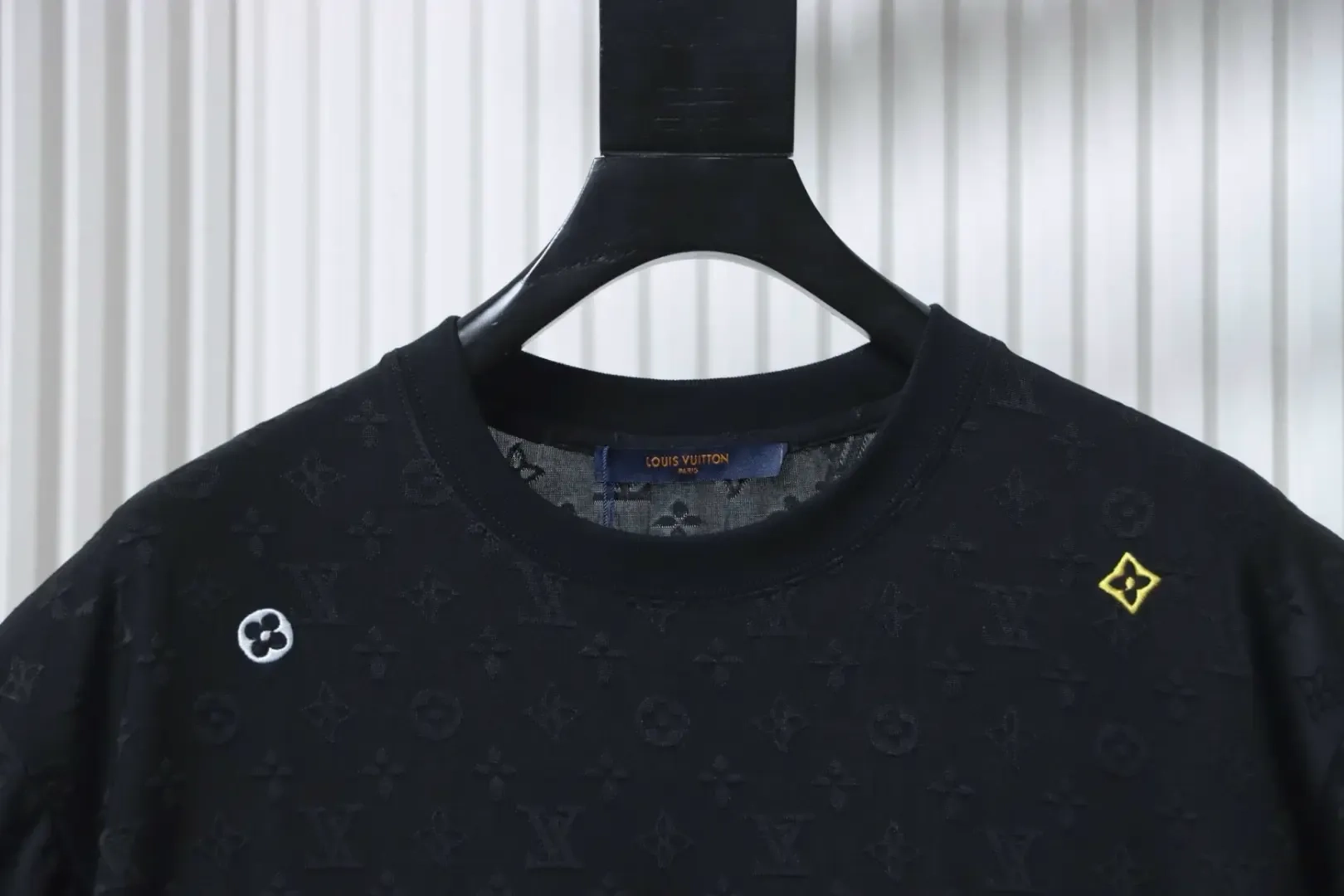 Short-sleeved T-shirt with all-over monogram clover pattern and embroidered logo