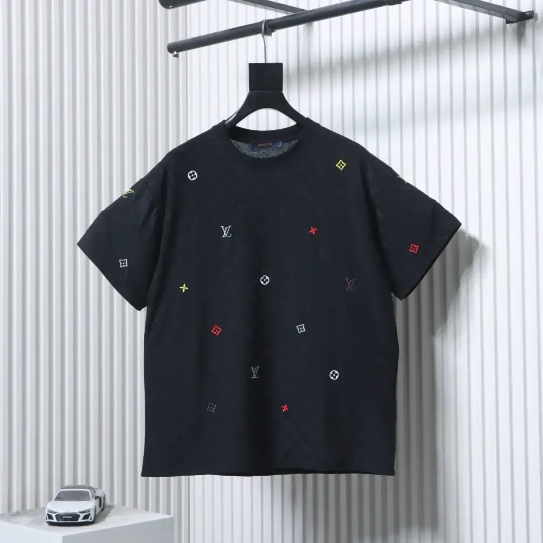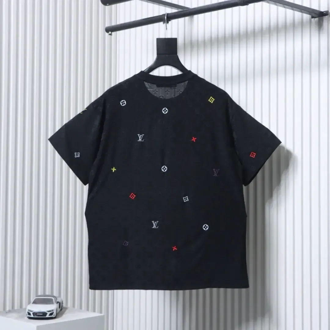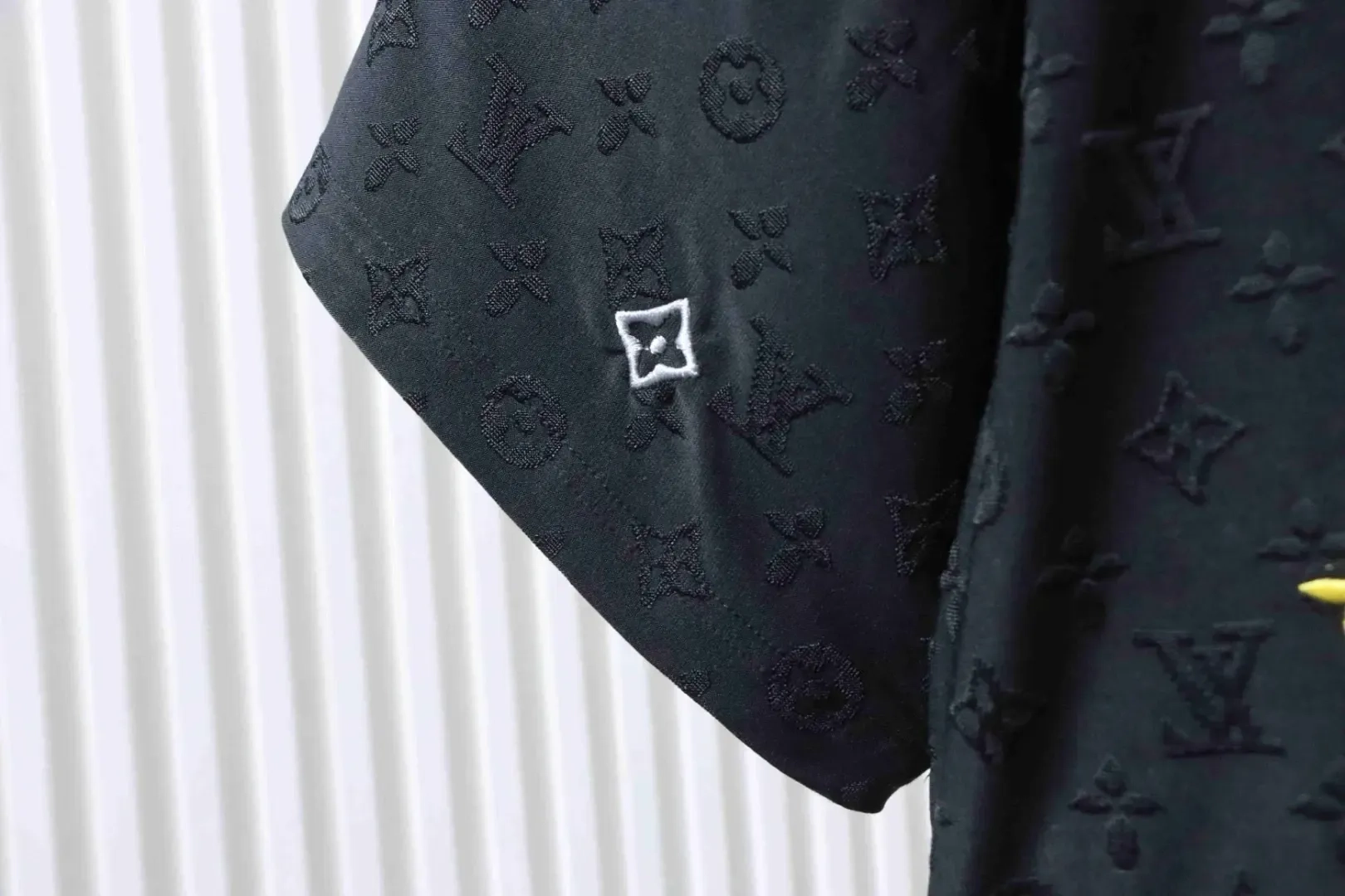 Short-sleeved T-shirt with all-over monogram clover pattern and embroidered logo